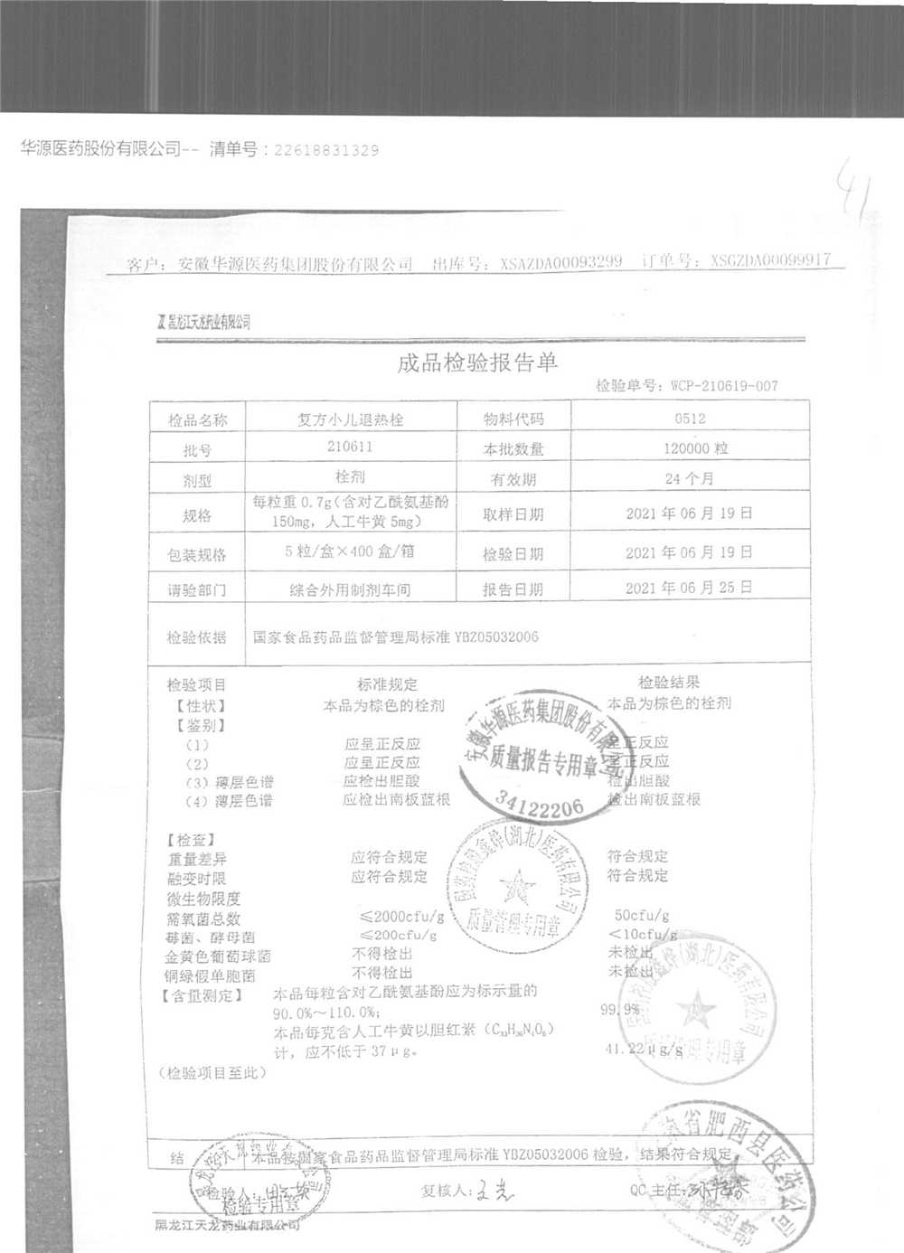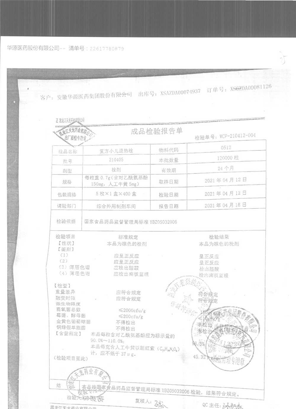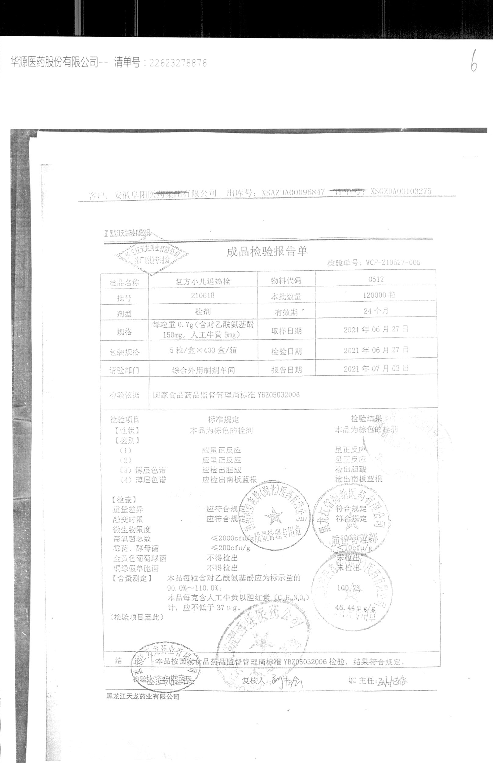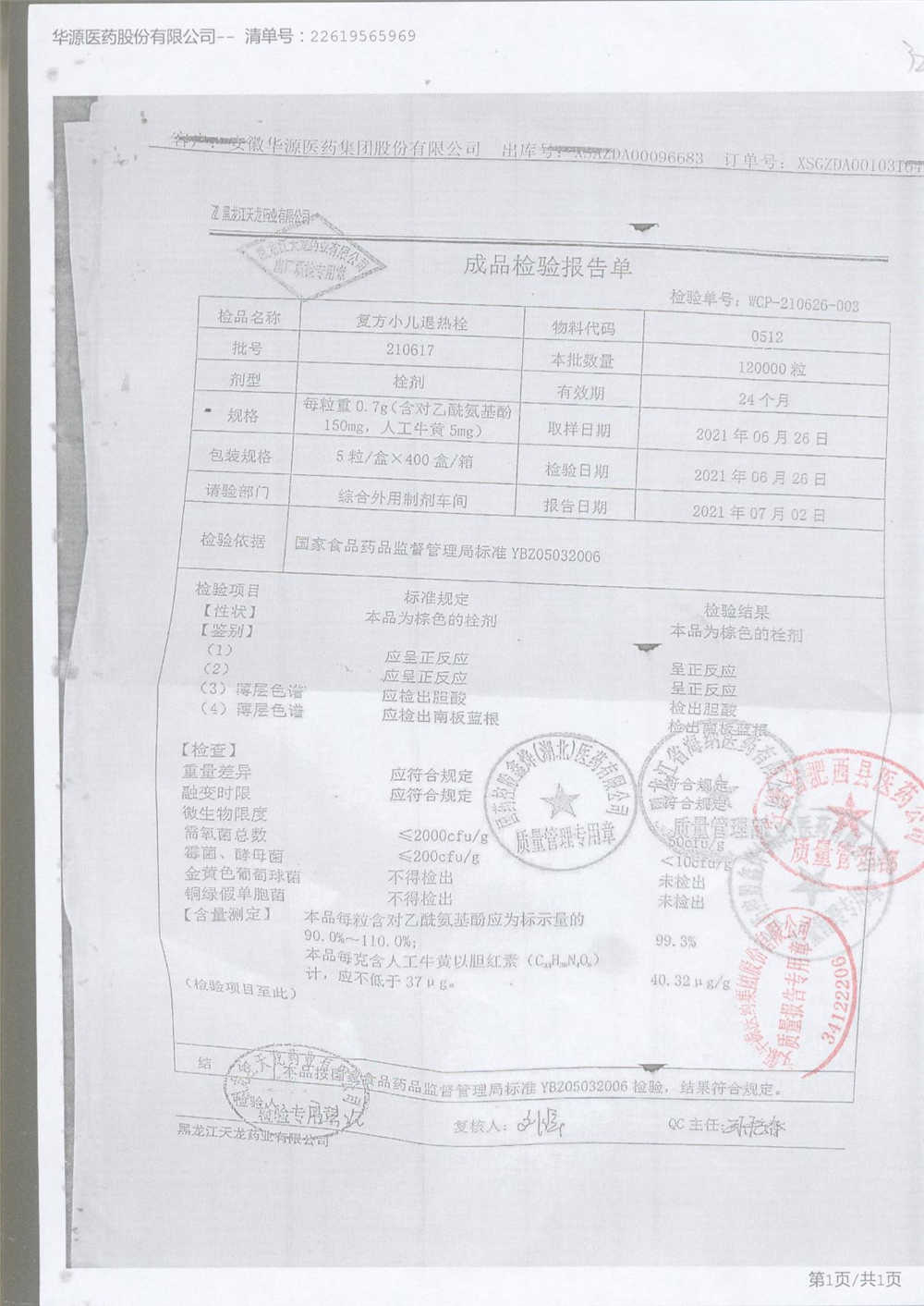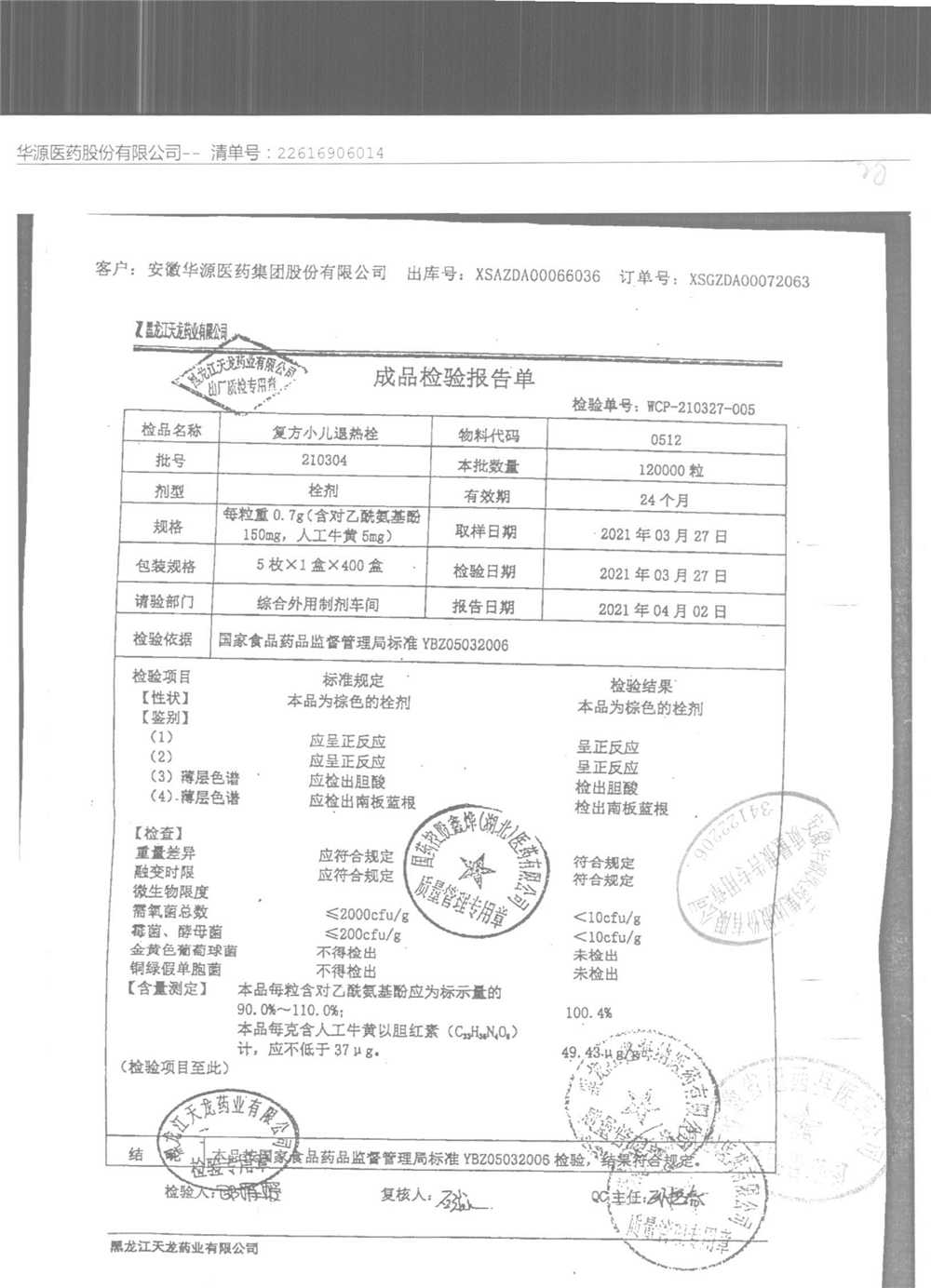| 复方小儿退热栓 | 0.7g*5s | 210618 | 查看详情 |