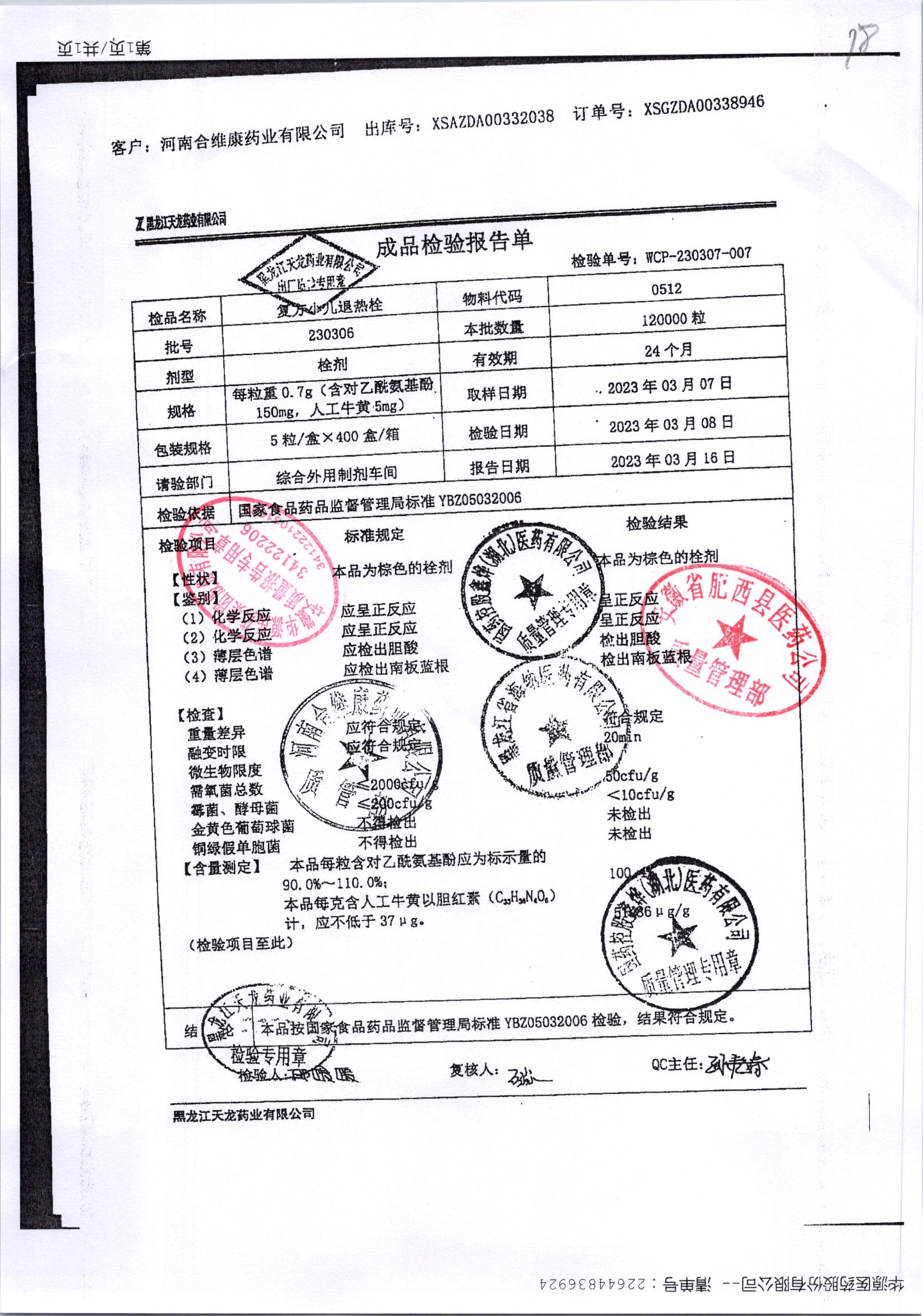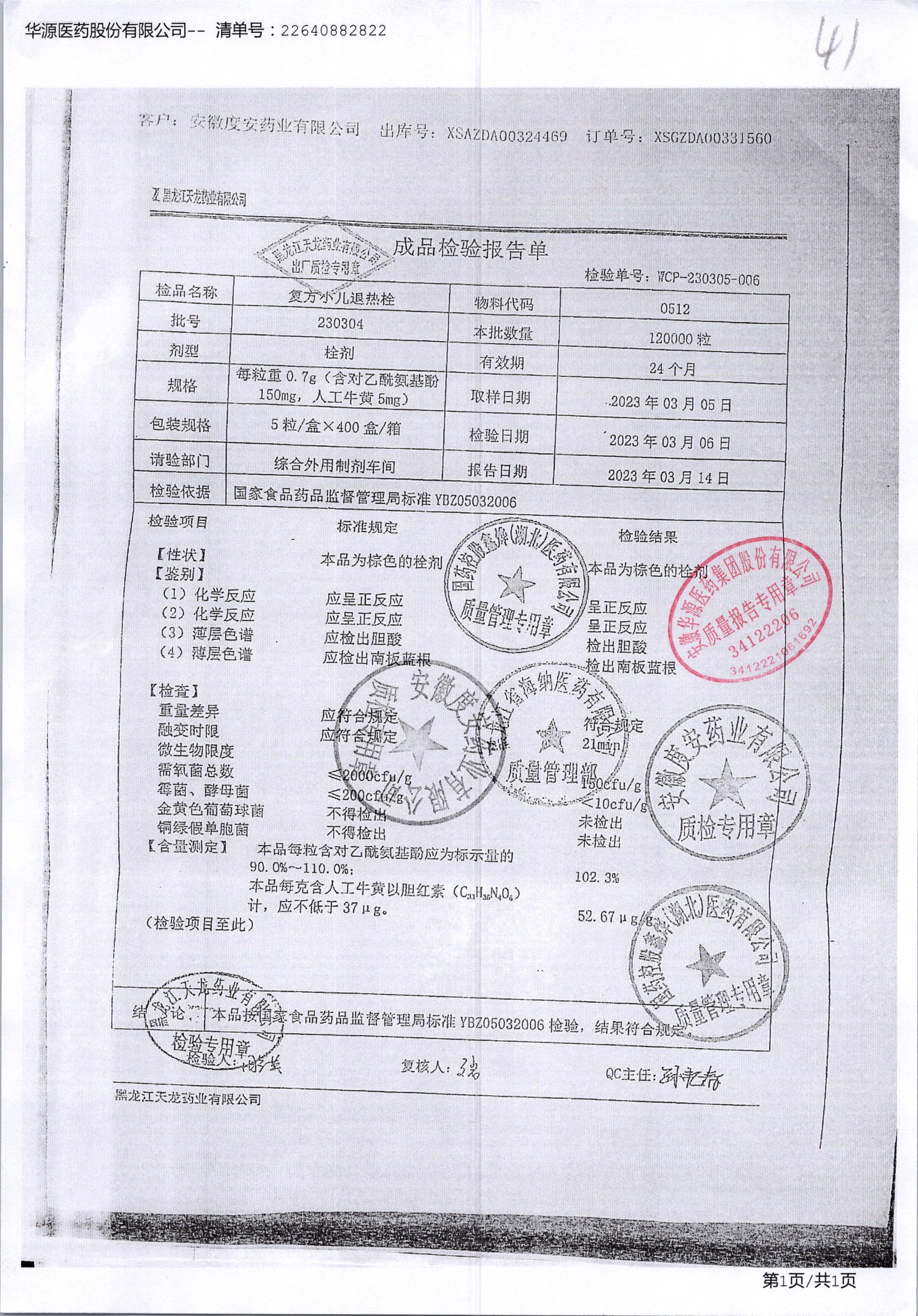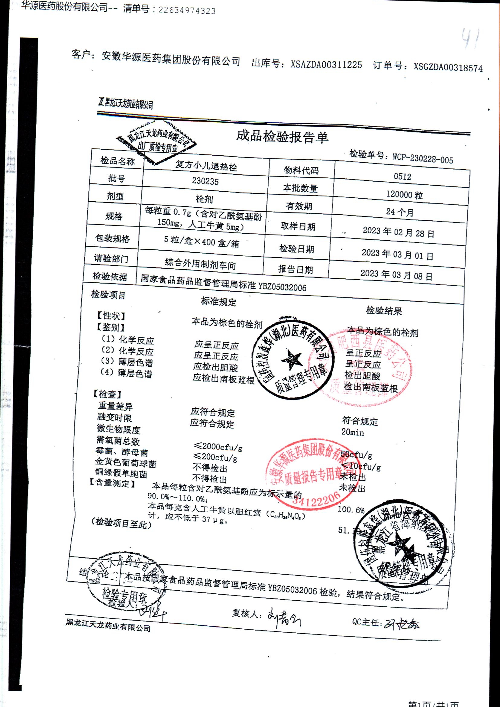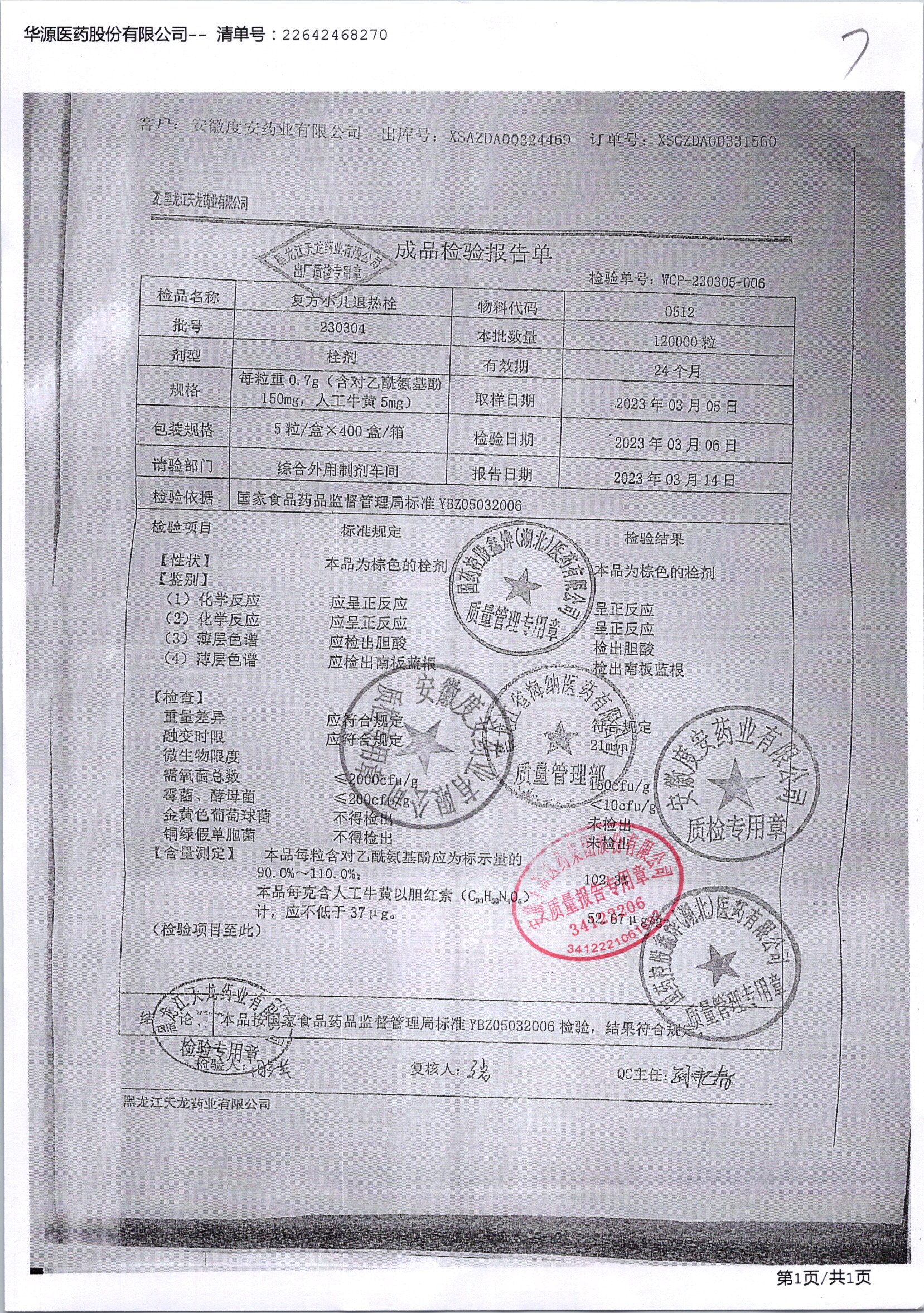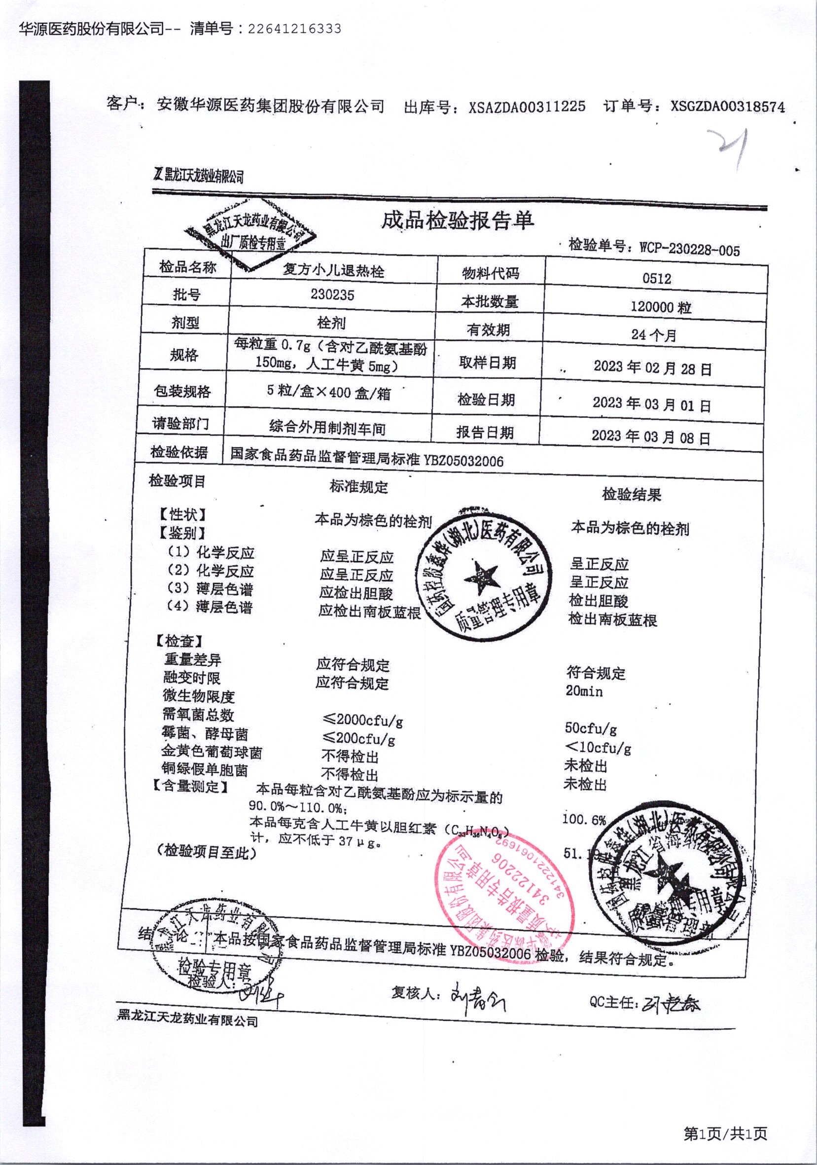 | 复方小儿退热栓 | 0.7g*5s | 230306 | 查看详情 |