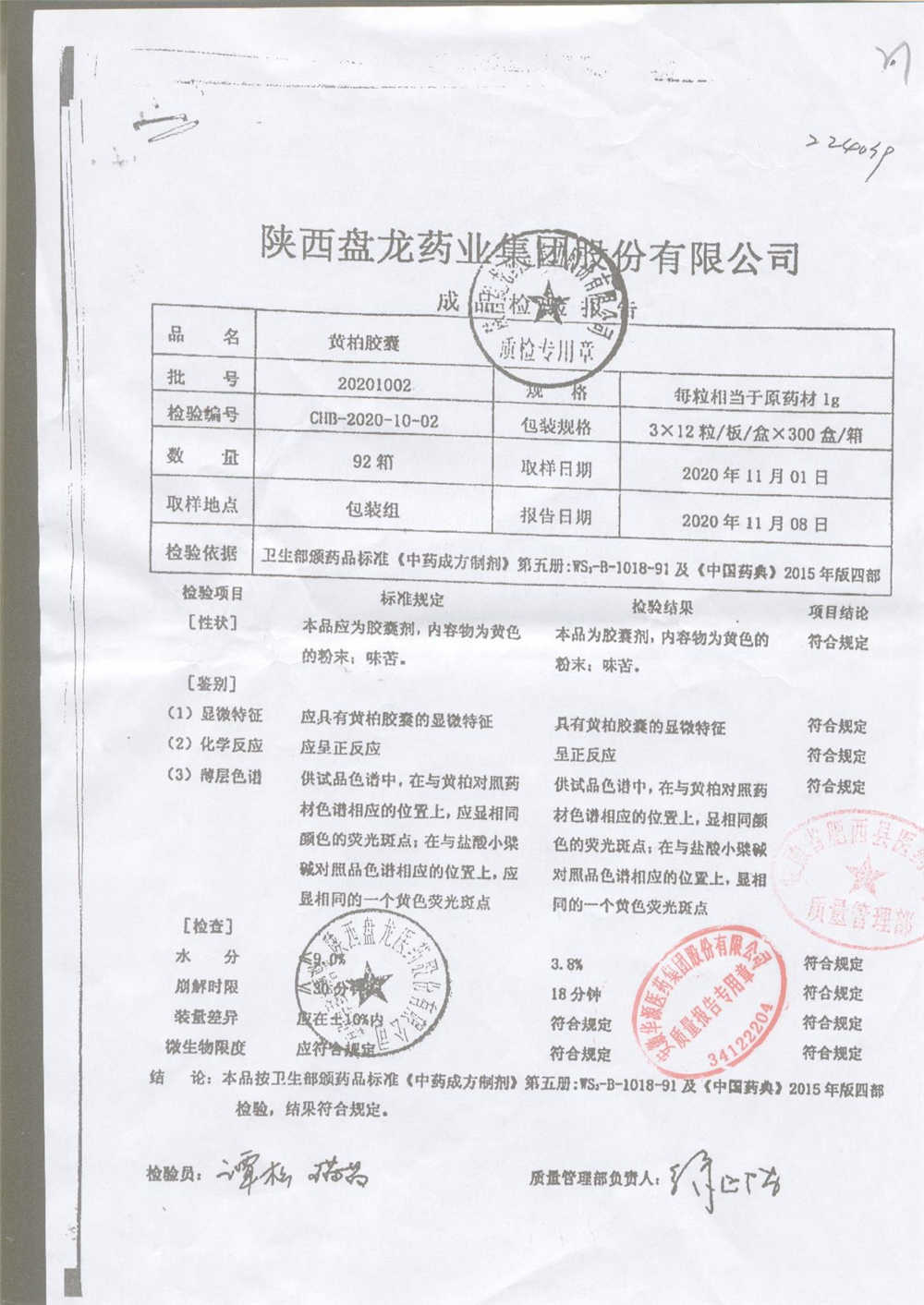 药检报告