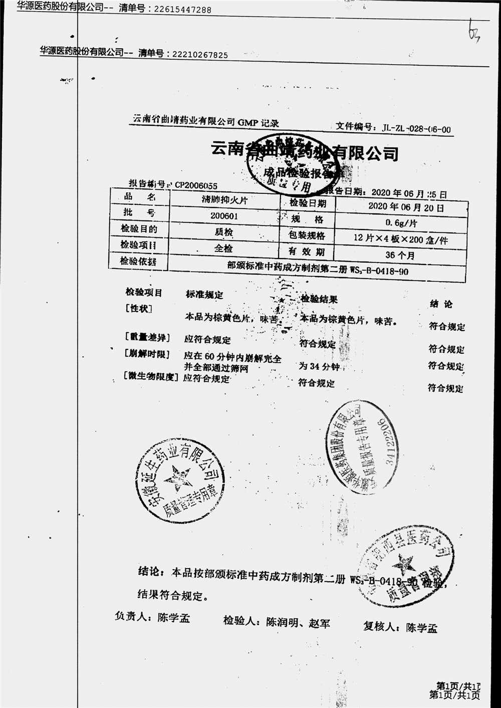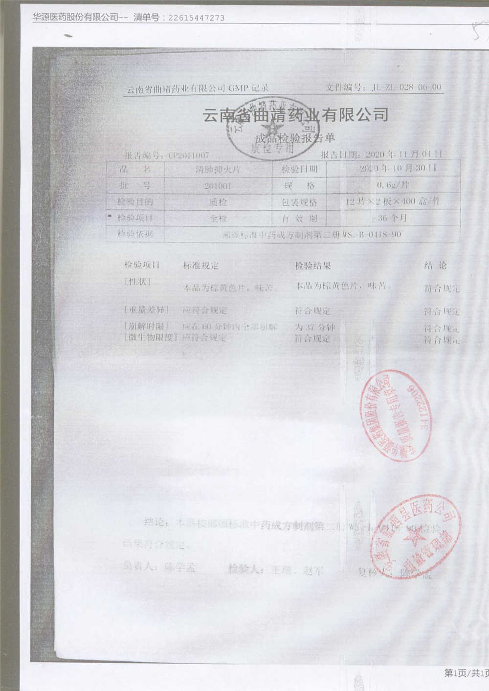 药检报告