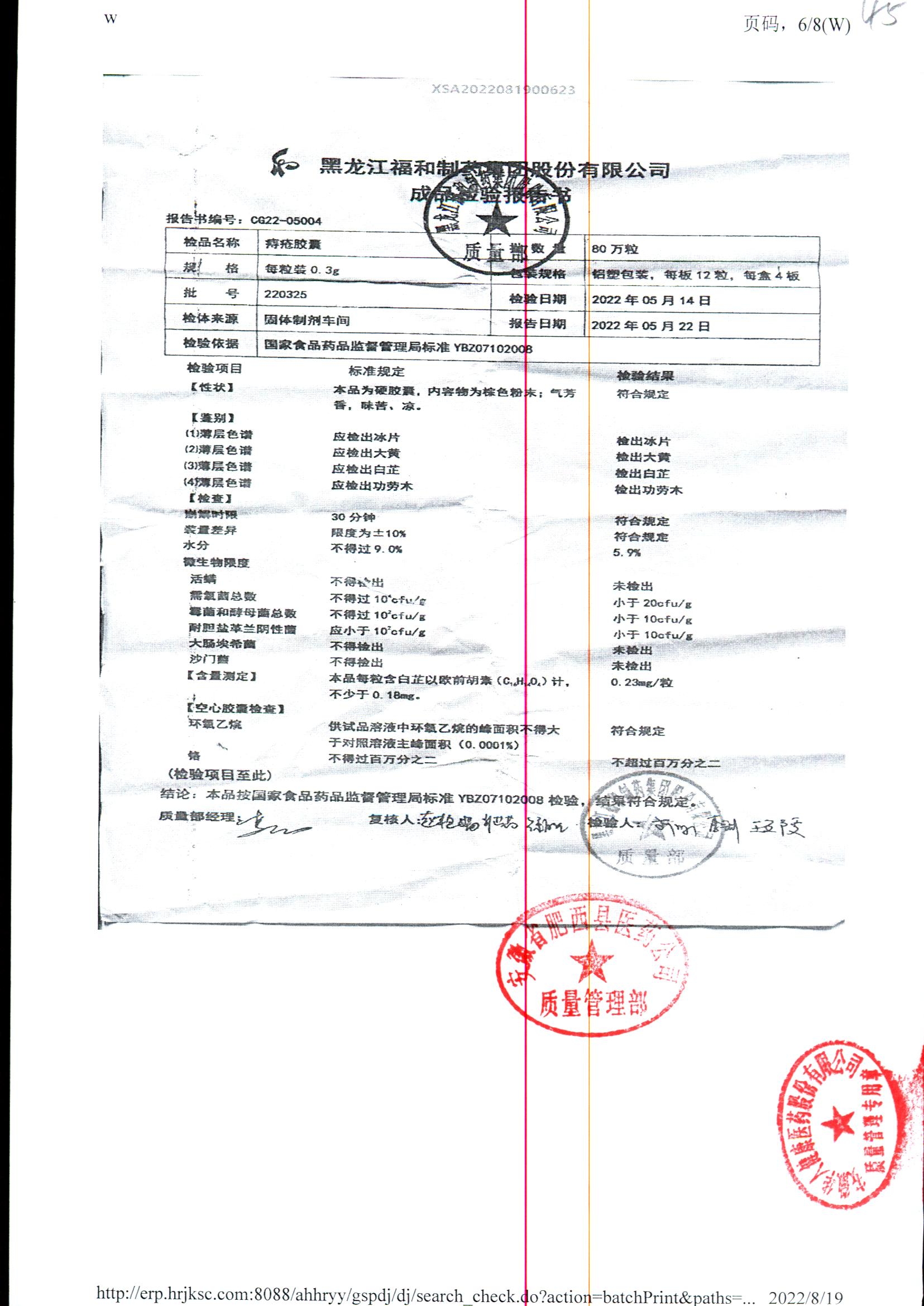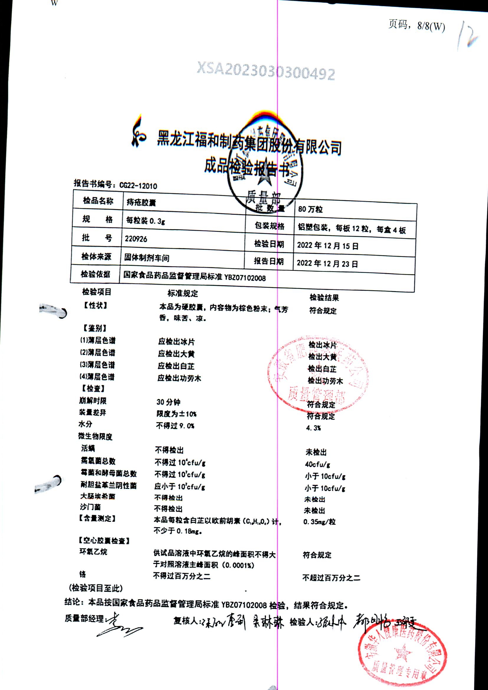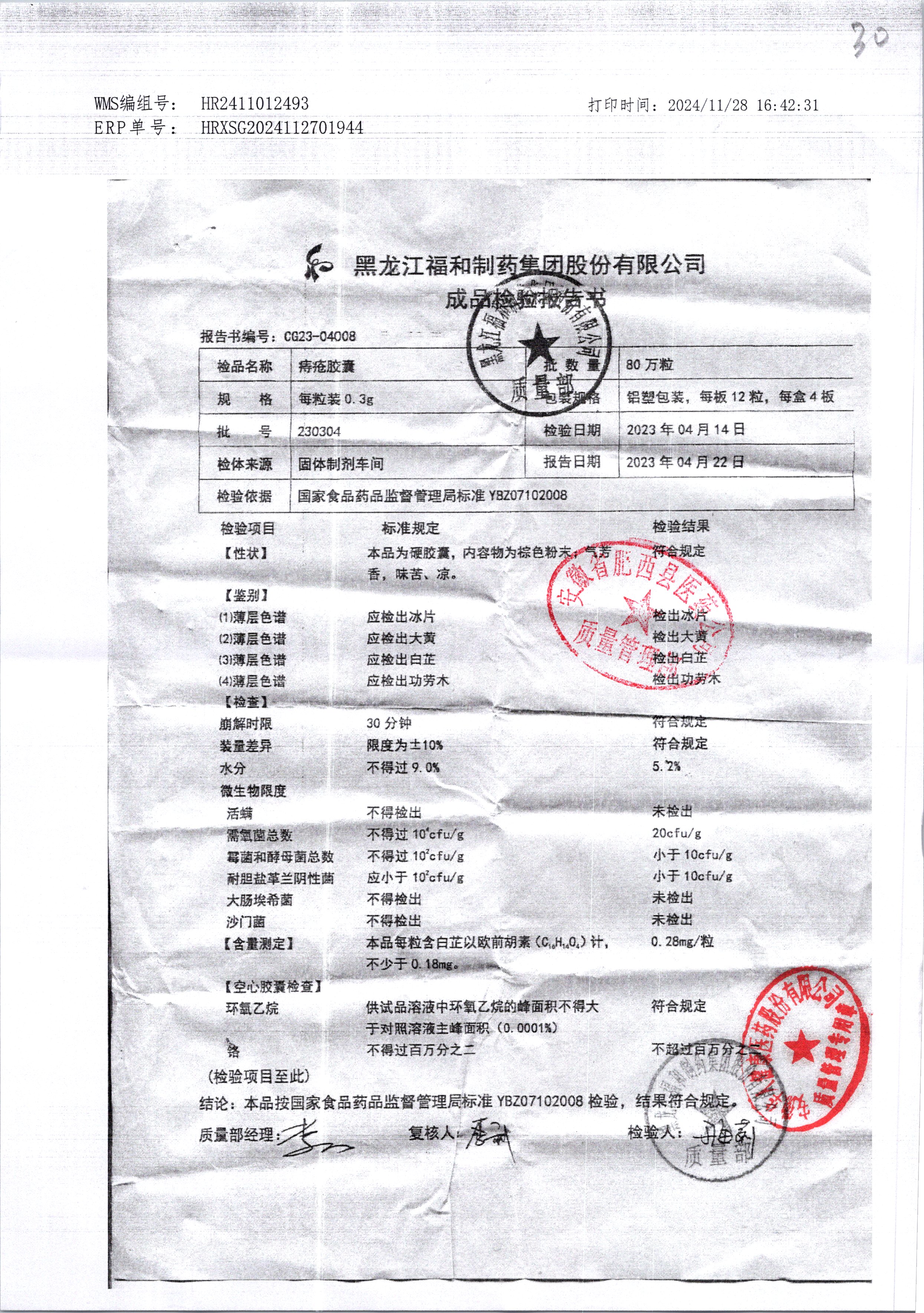 | 痔疮胶囊 | 0.3g*12s*4板 | 220513 | 查看详情 |