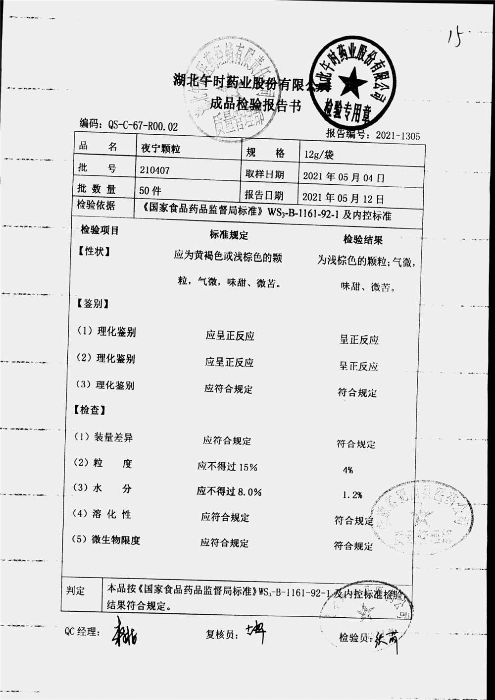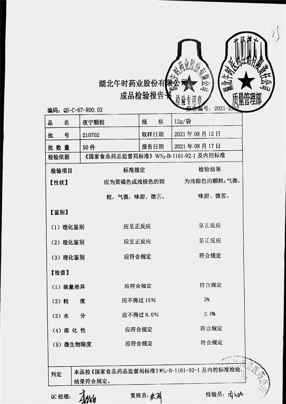 | 夜宁颗粒 | 12g*10袋(无糖型) | 210407 | 查看详情 |