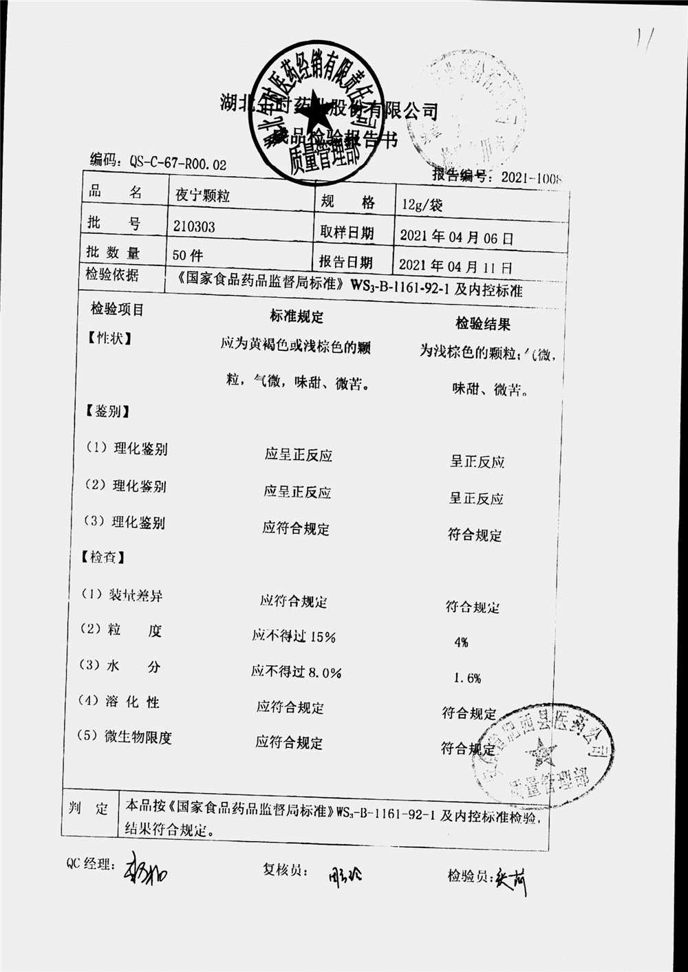 | 夜宁颗粒 | 12g*10袋(无糖型) | 210402 | 查看详情 |
