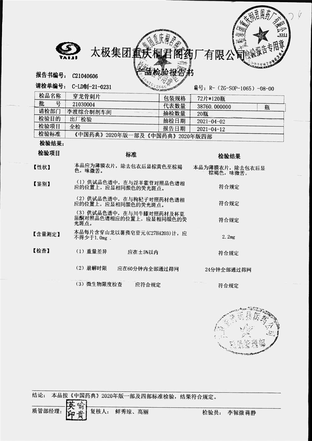 | 穿龙骨刺片 | 0.5g*72片 | 21030004 | 查看详情 |
