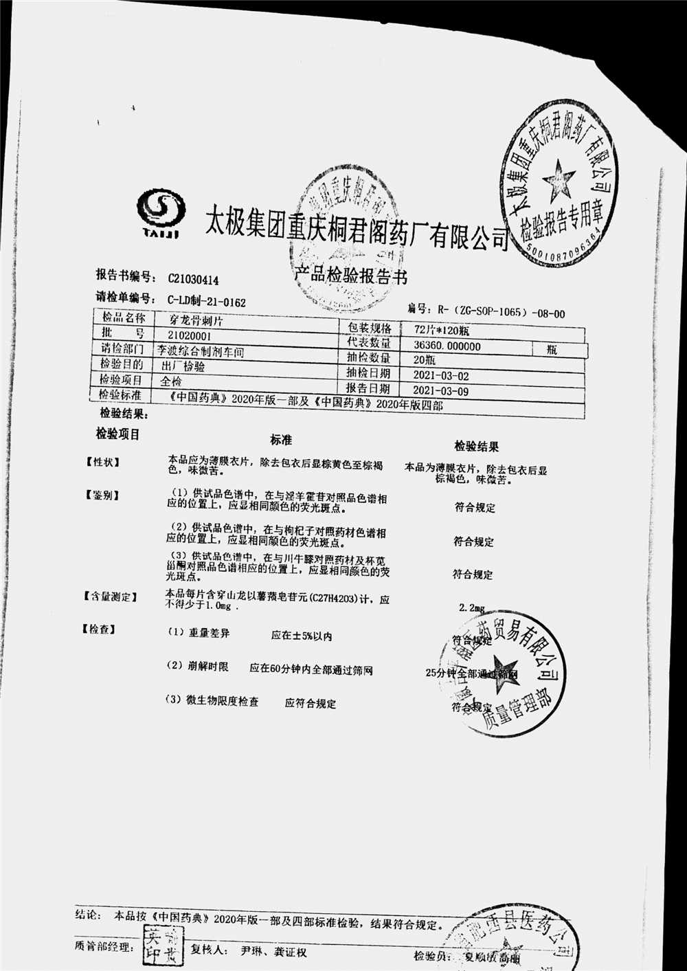 | 穿龙骨刺片 | 0.5g*72片 | 21020001 | 查看详情 |