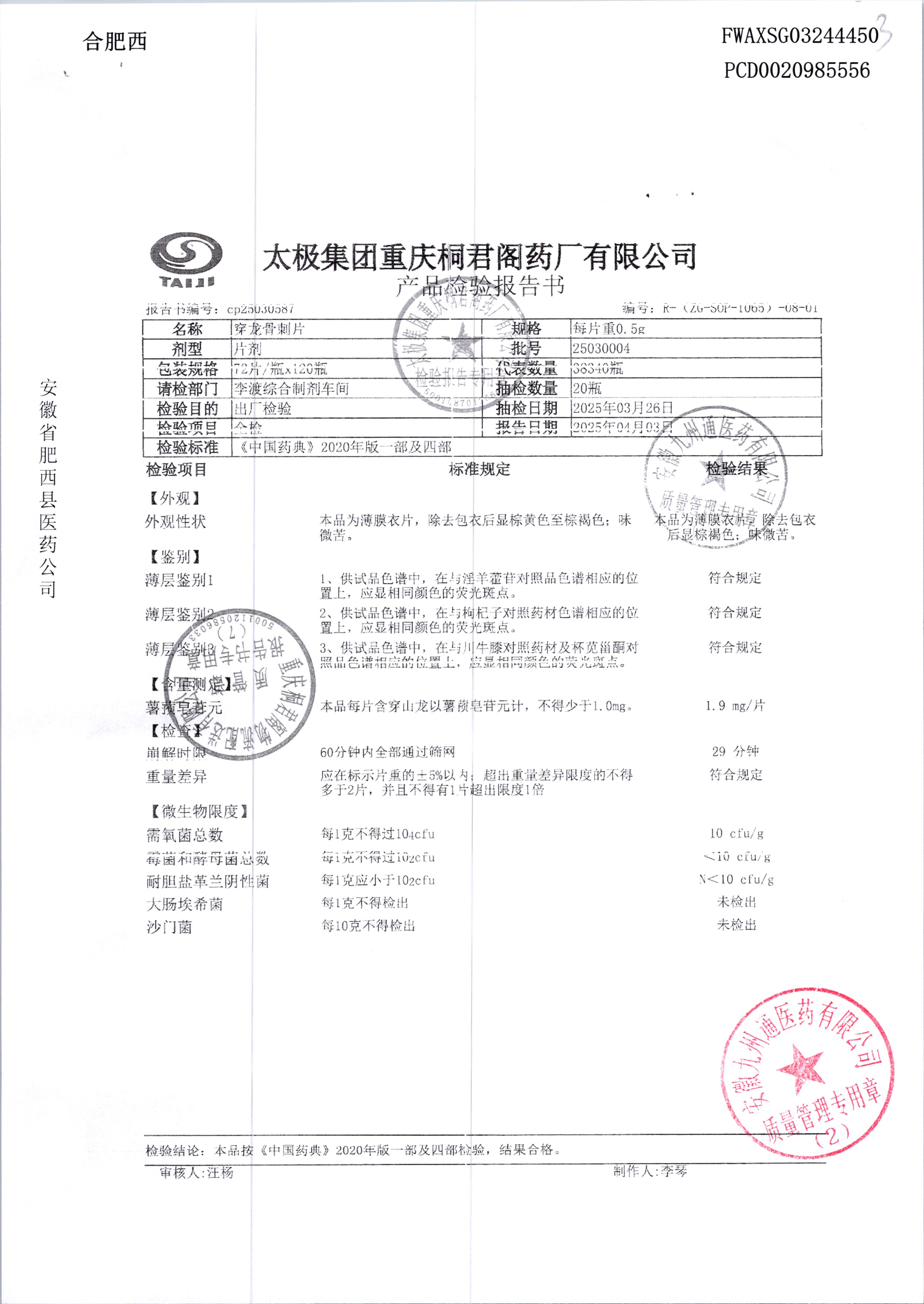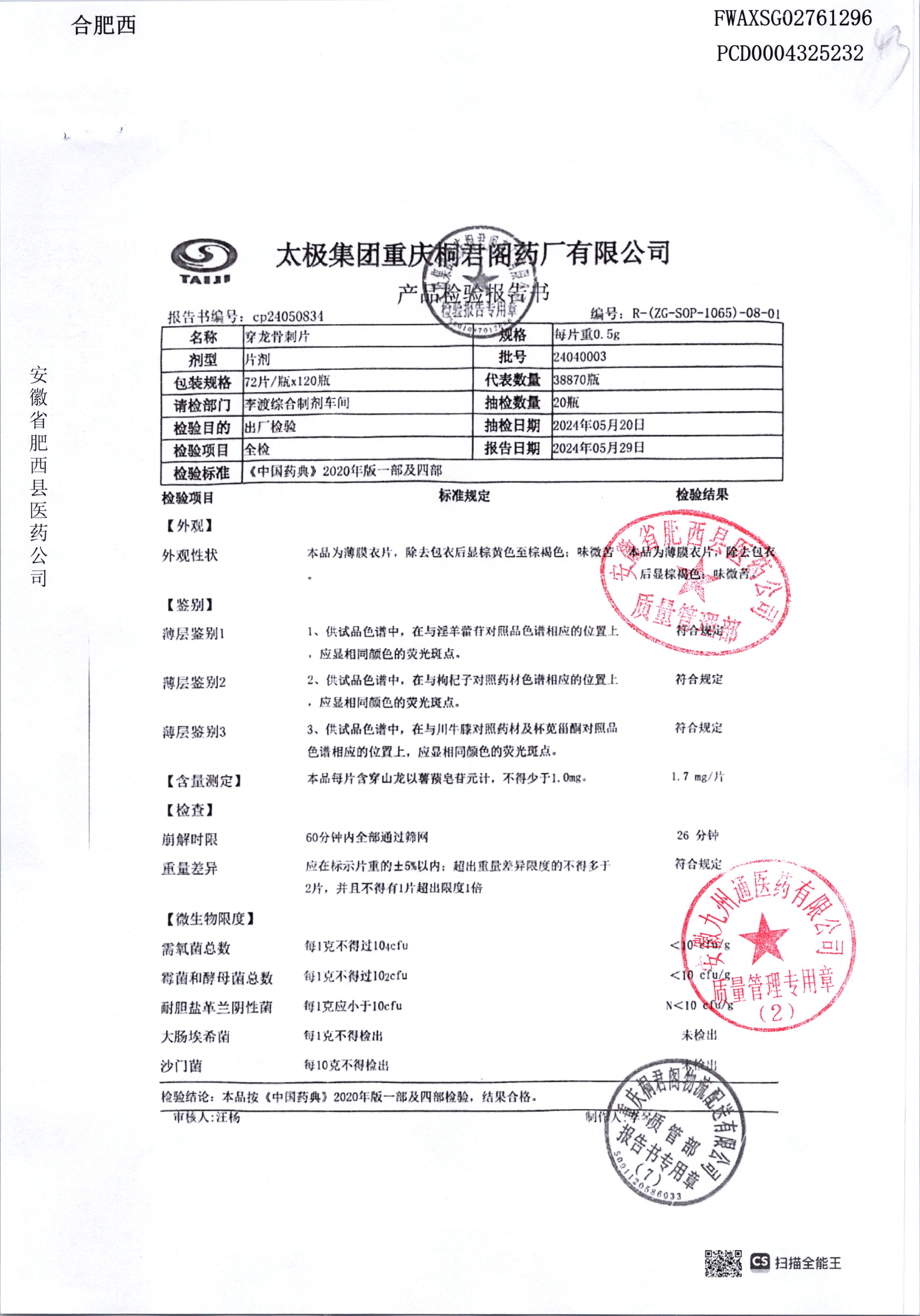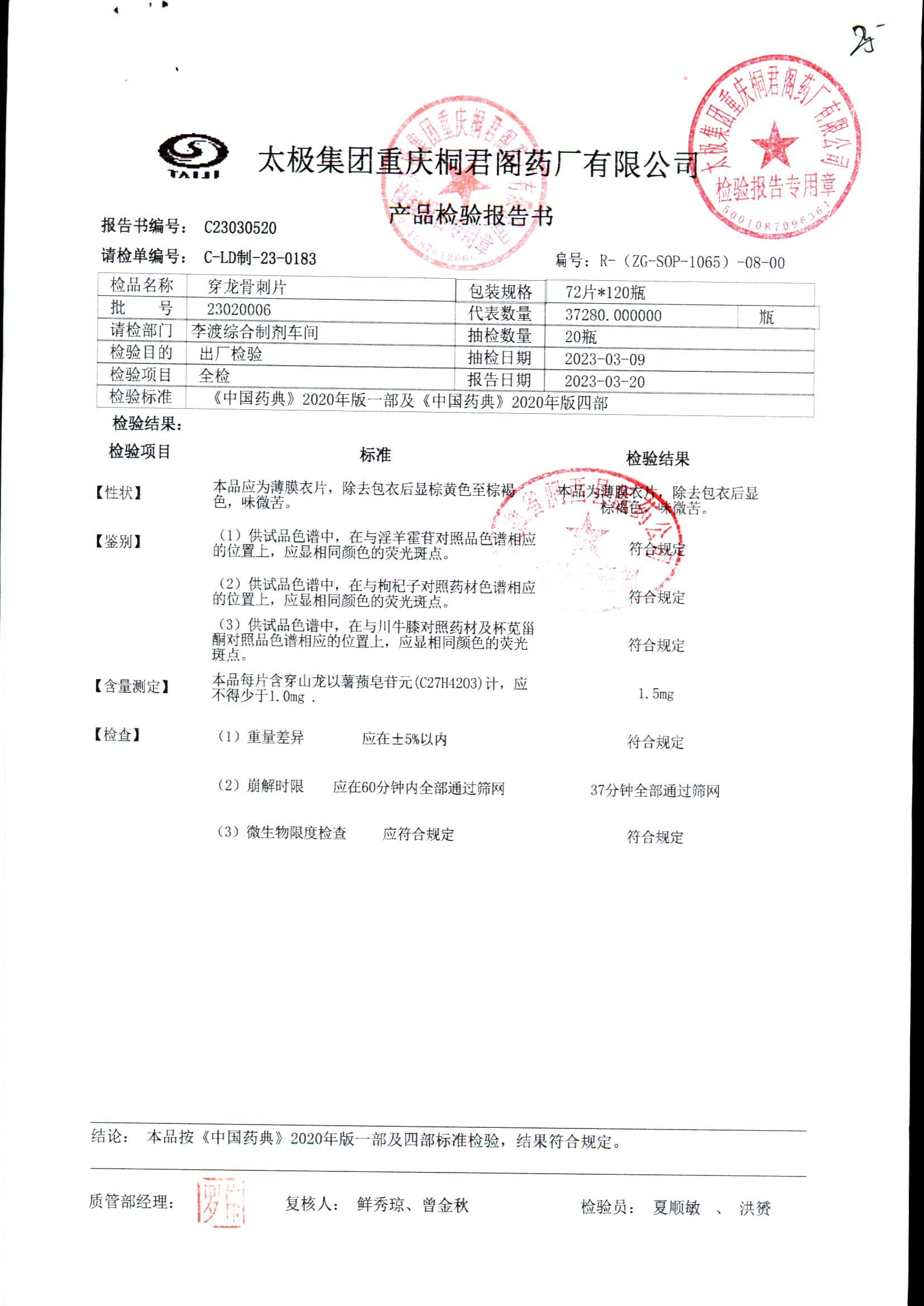| 穿龙骨刺片 | 0.5g*72片 | 24040003 | 查看详情 |