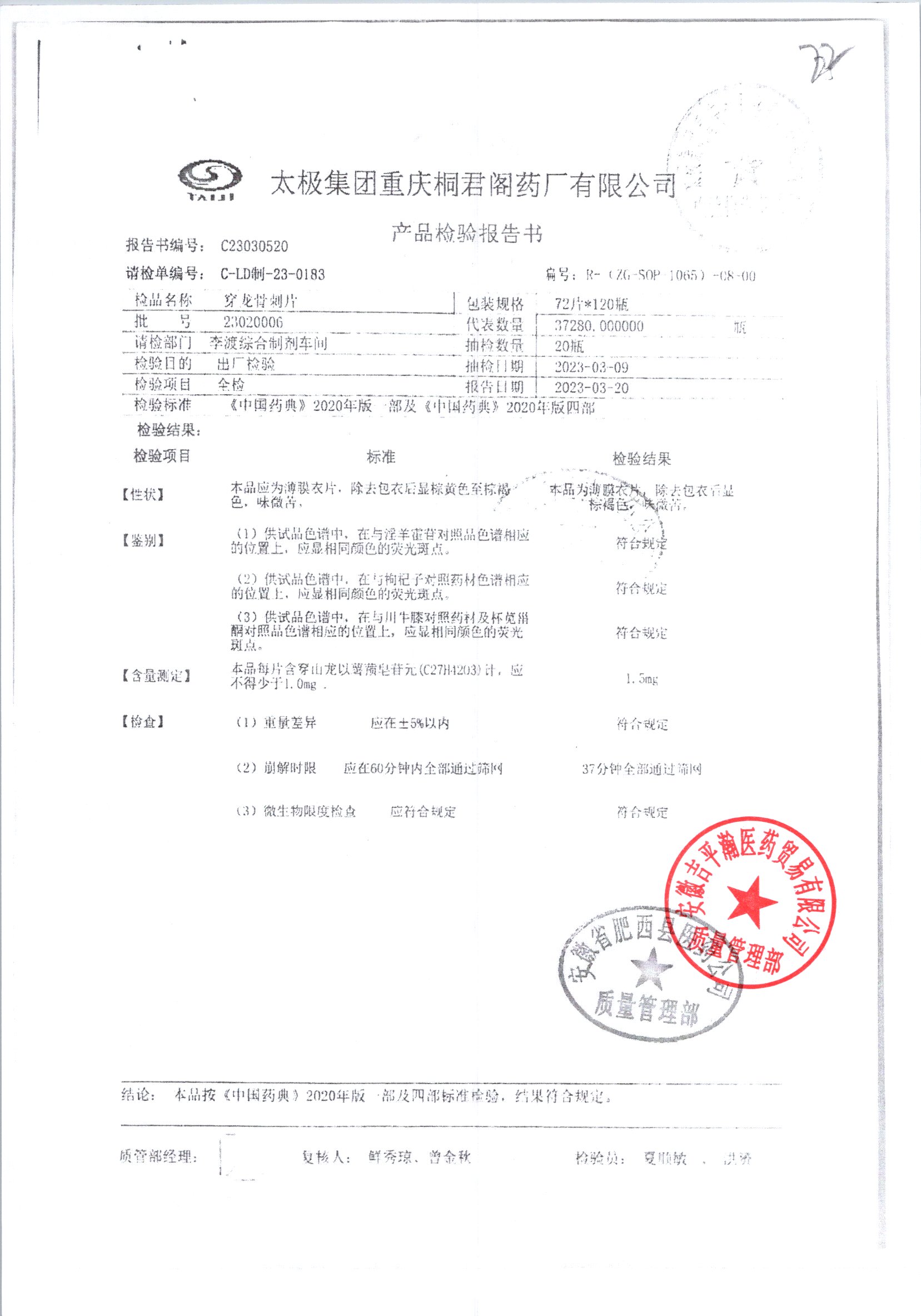 | 穿龙骨刺片 | 0.5g*72片 | 23050010 | 查看详情 |