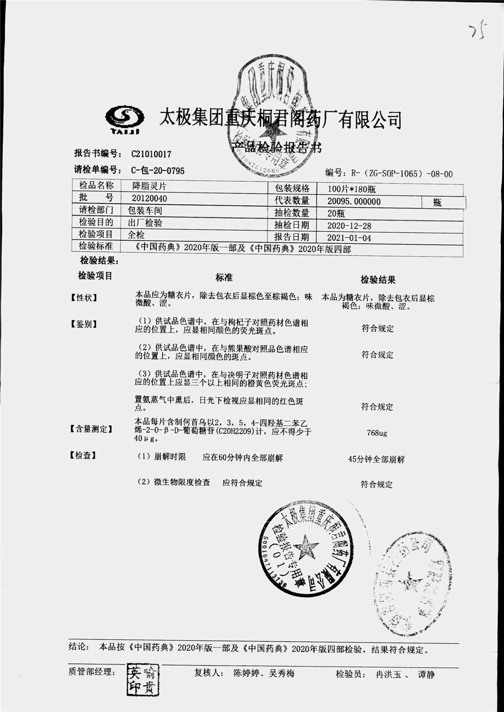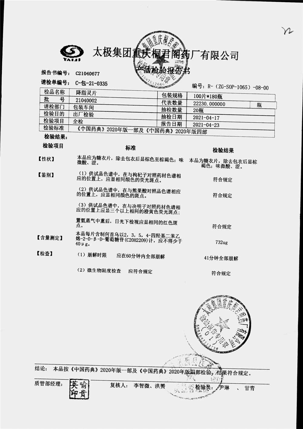 | 降脂灵片 | 0.25g*100片 | 21050005 | 查看详情 |