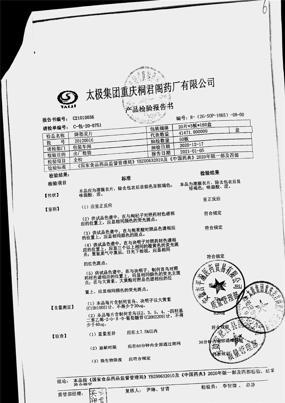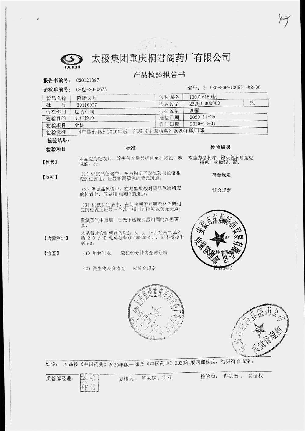| 降脂灵片 | 0.25g*100片 | 20110037 | 查看详情 |