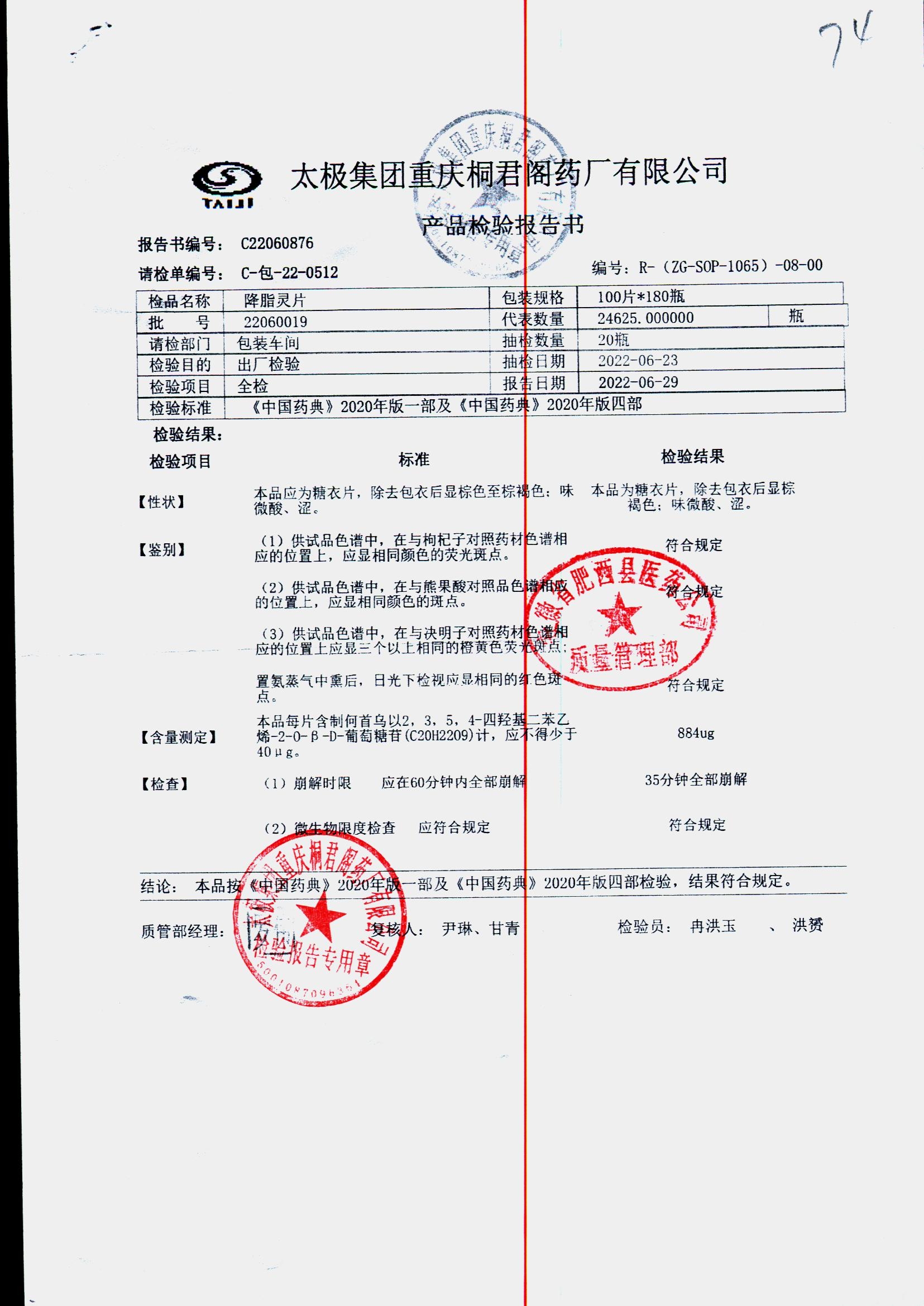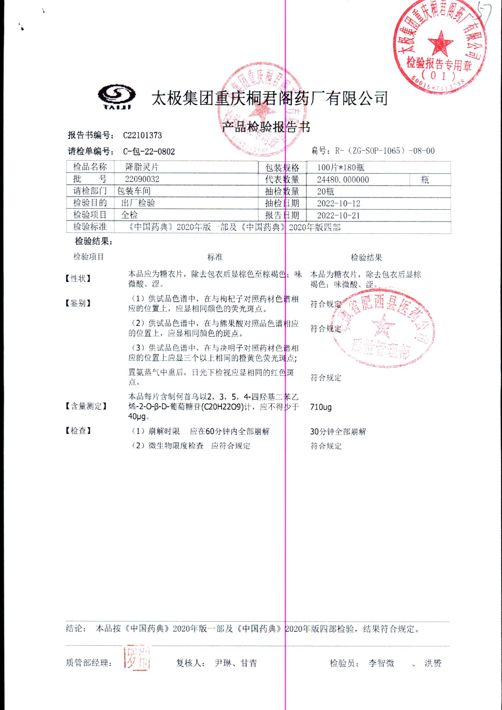 | 降脂灵片 | 0.25g*100片 | 22060019 | 查看详情 |