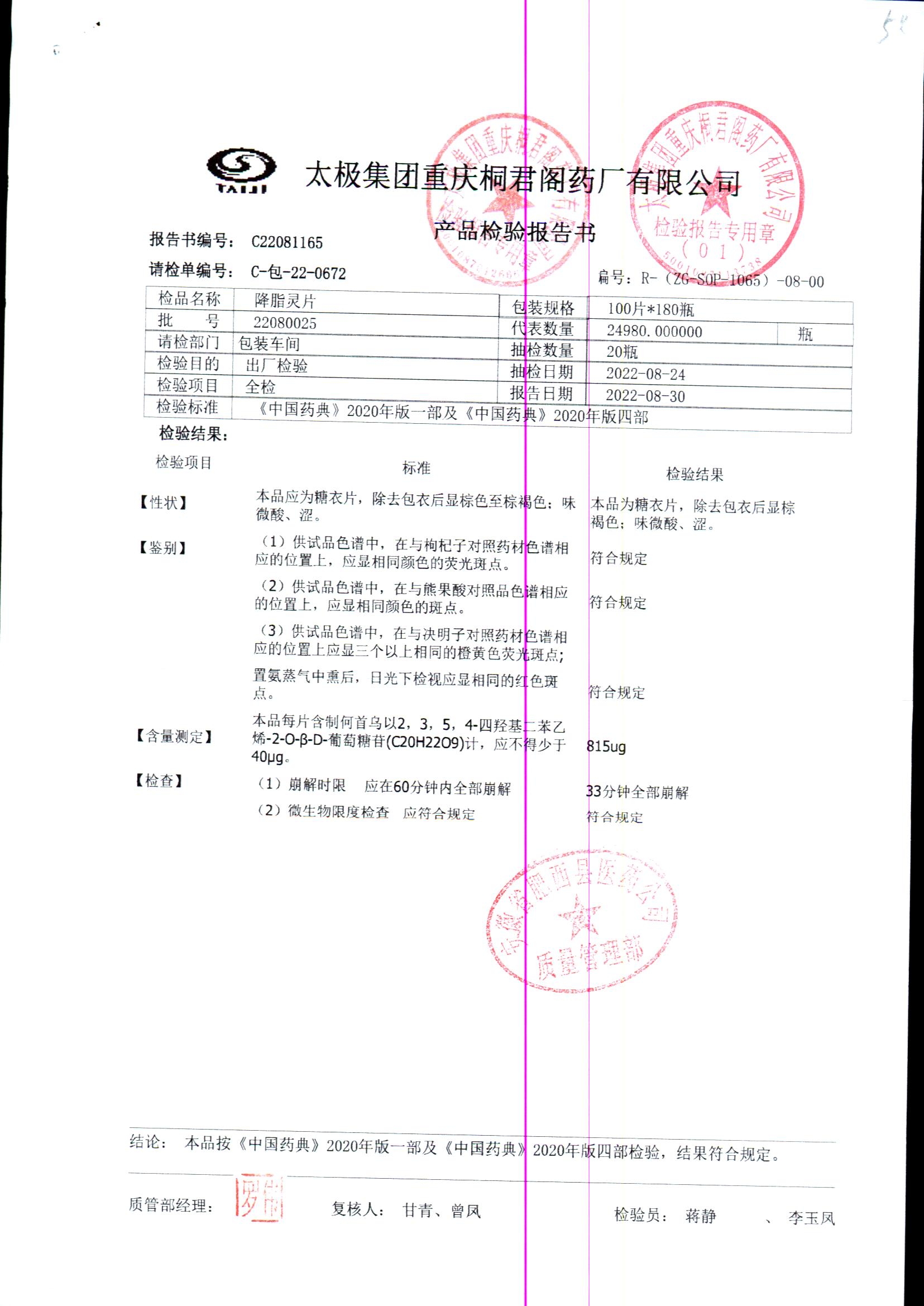 | 降脂灵片 | 0.25g*100片 | 22080025 | 查看详情 |