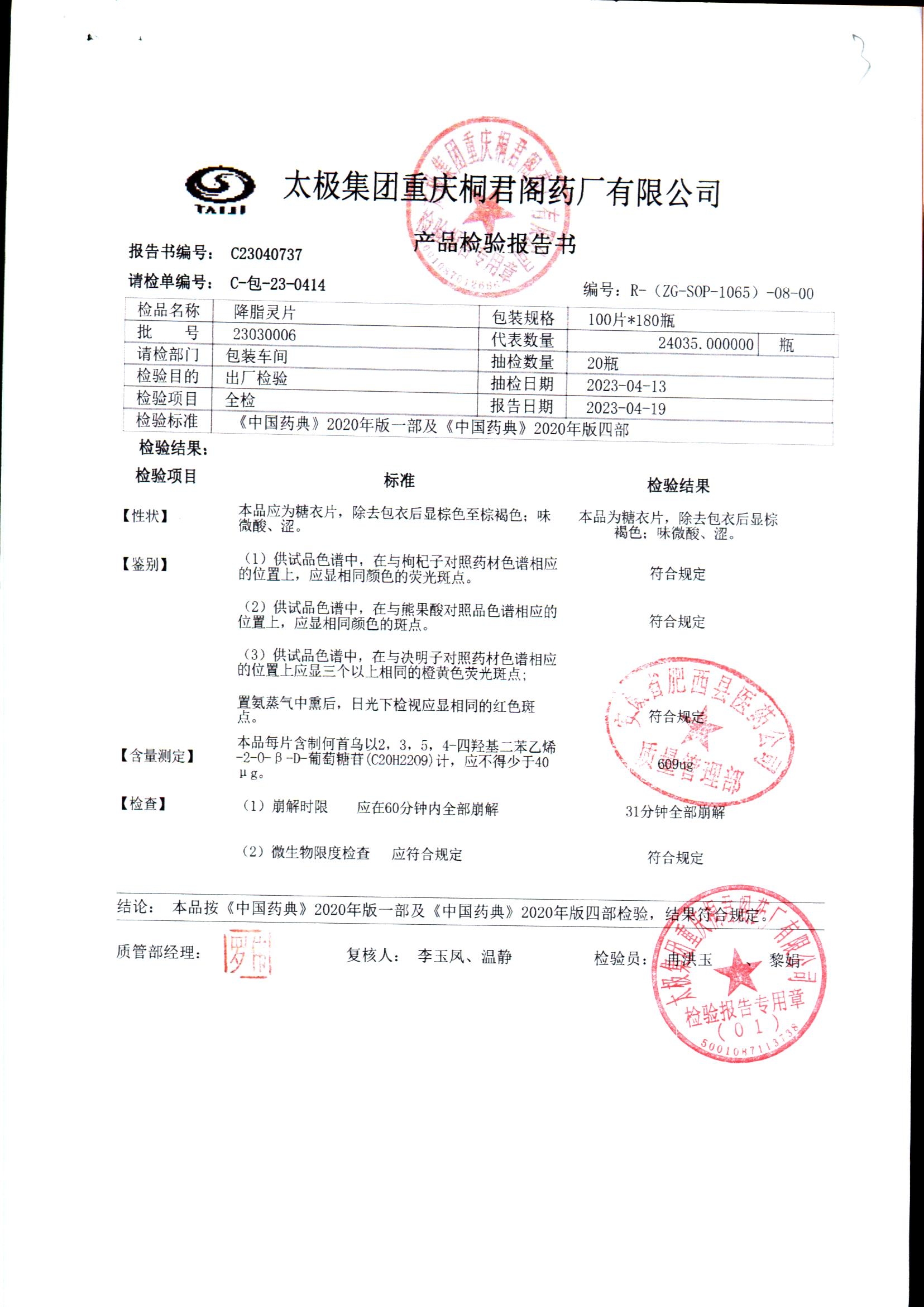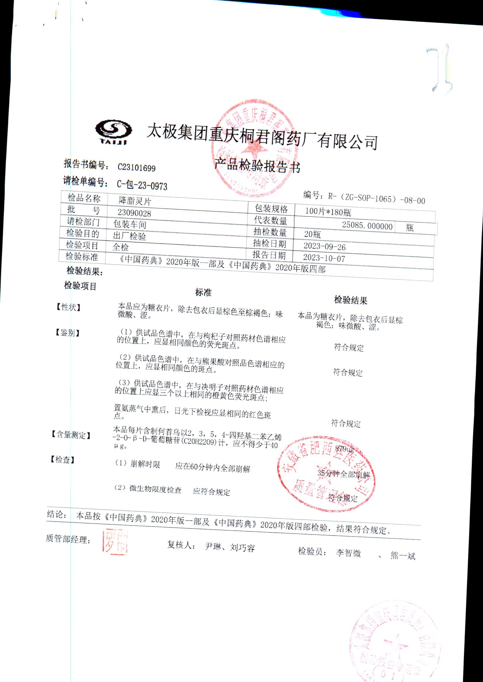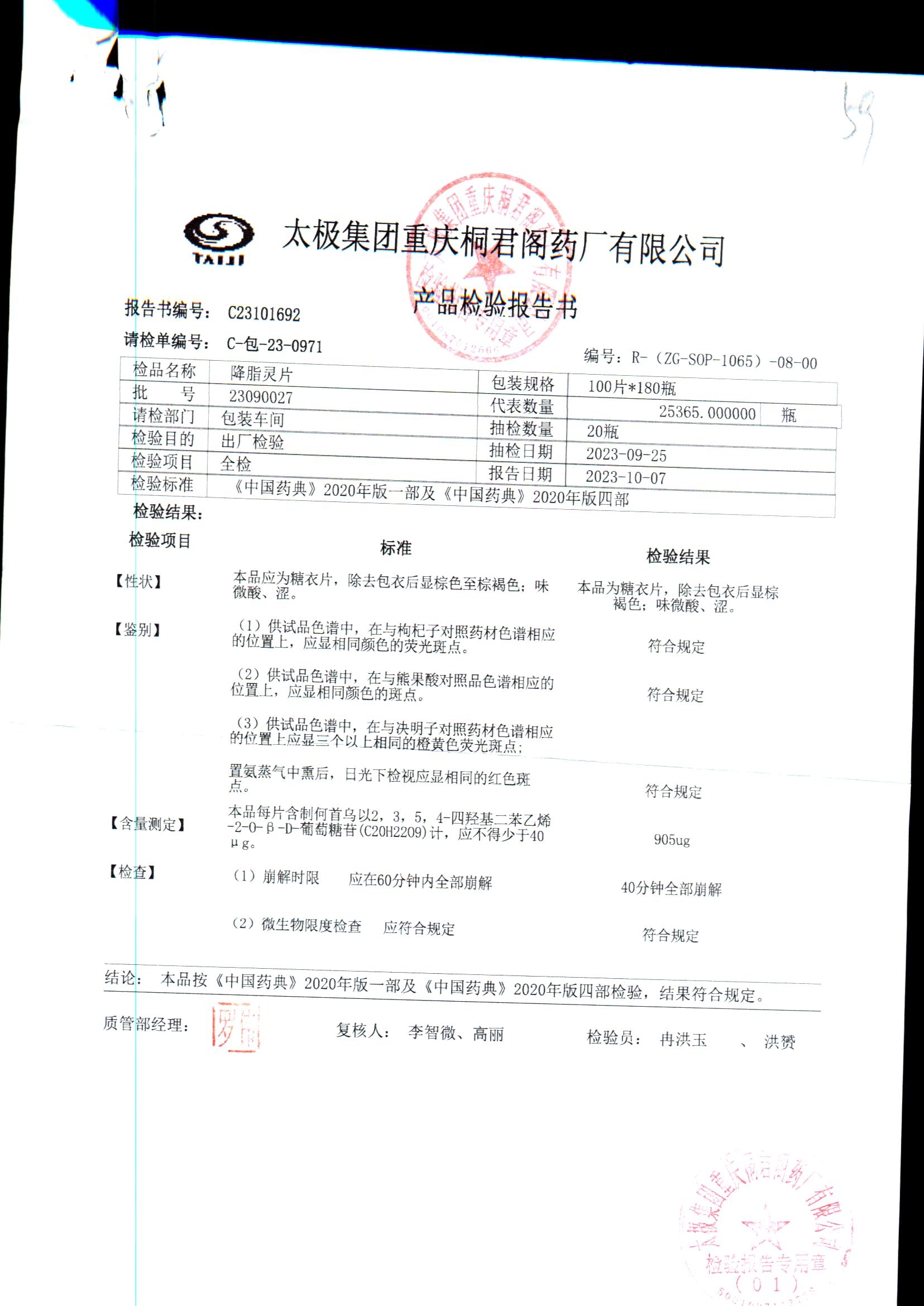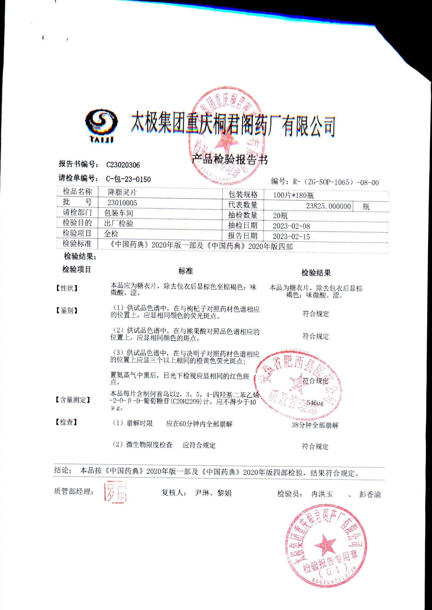 | 降脂灵片 | 0.25g*100片 | 23010005 | 查看详情 |