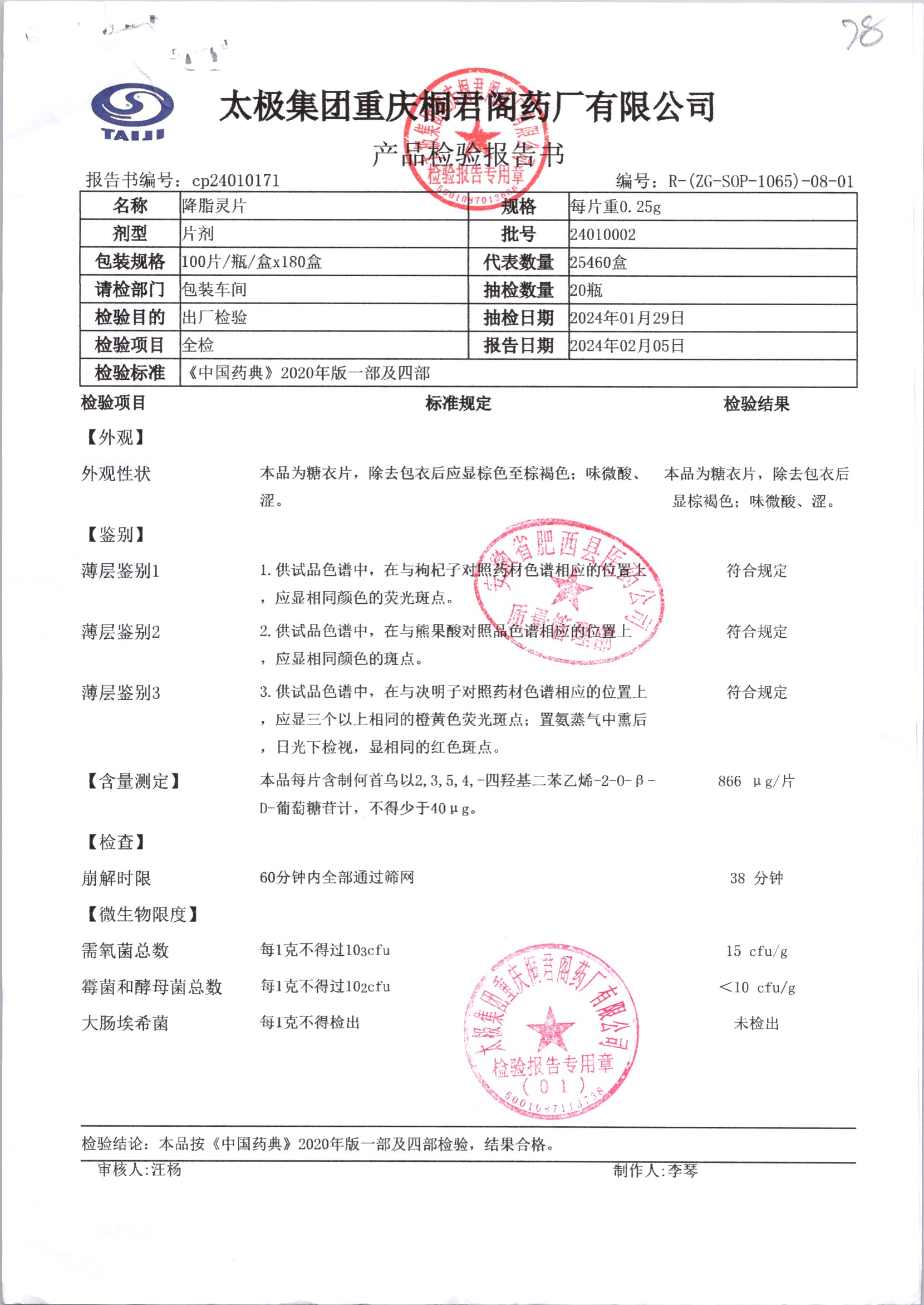 | 降脂灵片 | 0.25g*100片 | 24010002 | 查看详情 |
