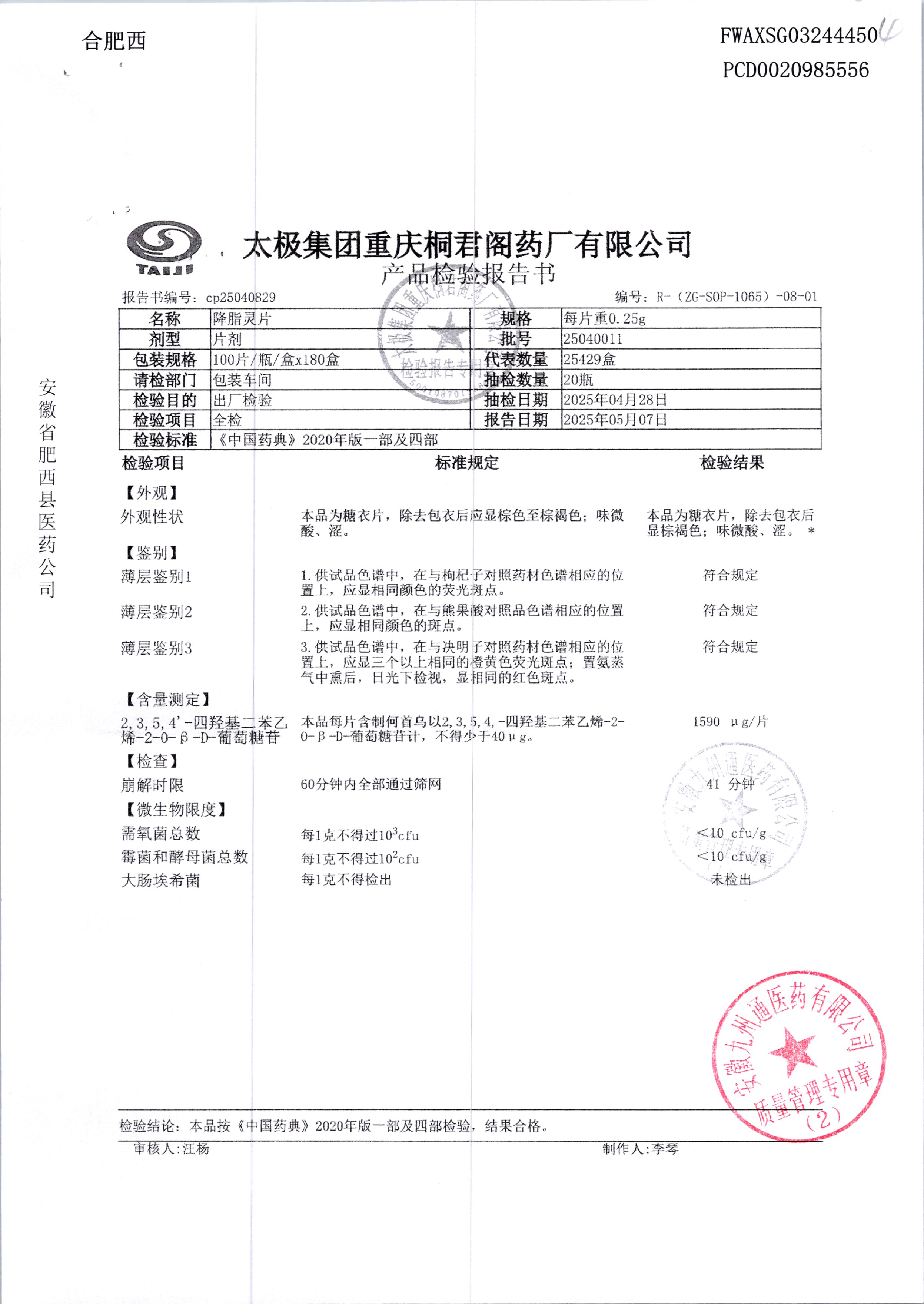 | 降脂灵片 | 0.25g*100片 | 25040011 | 查看详情 |