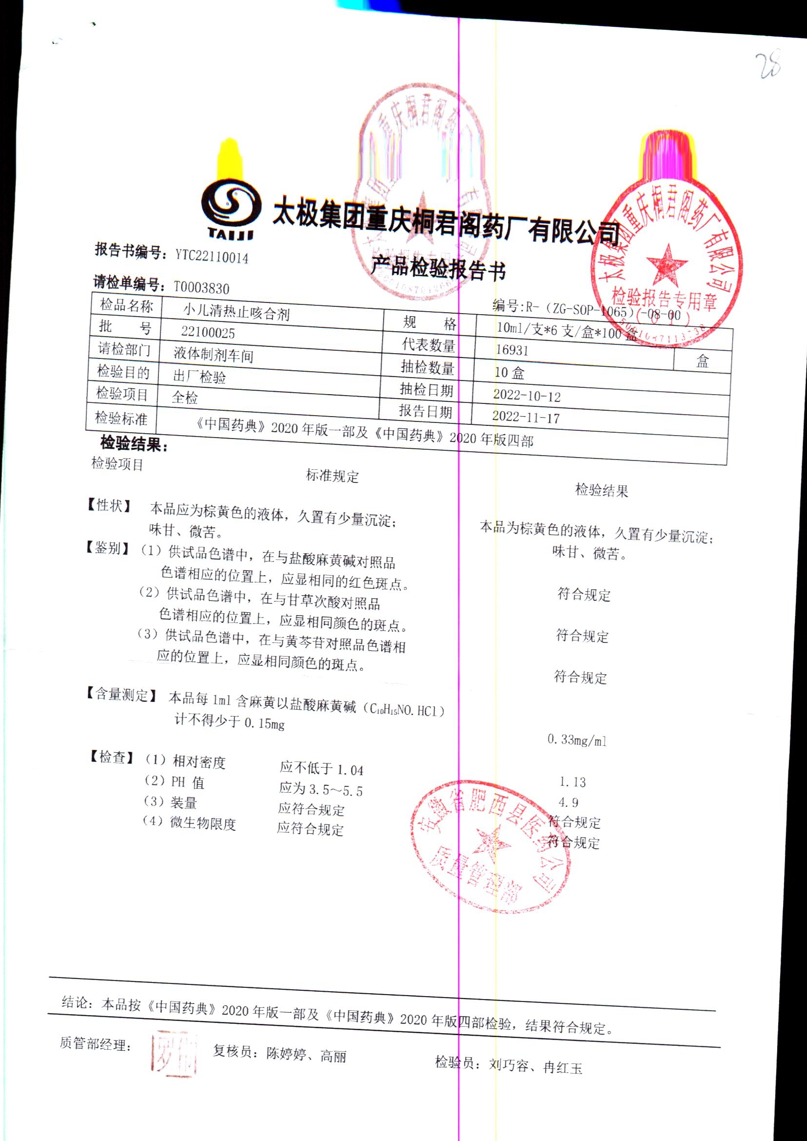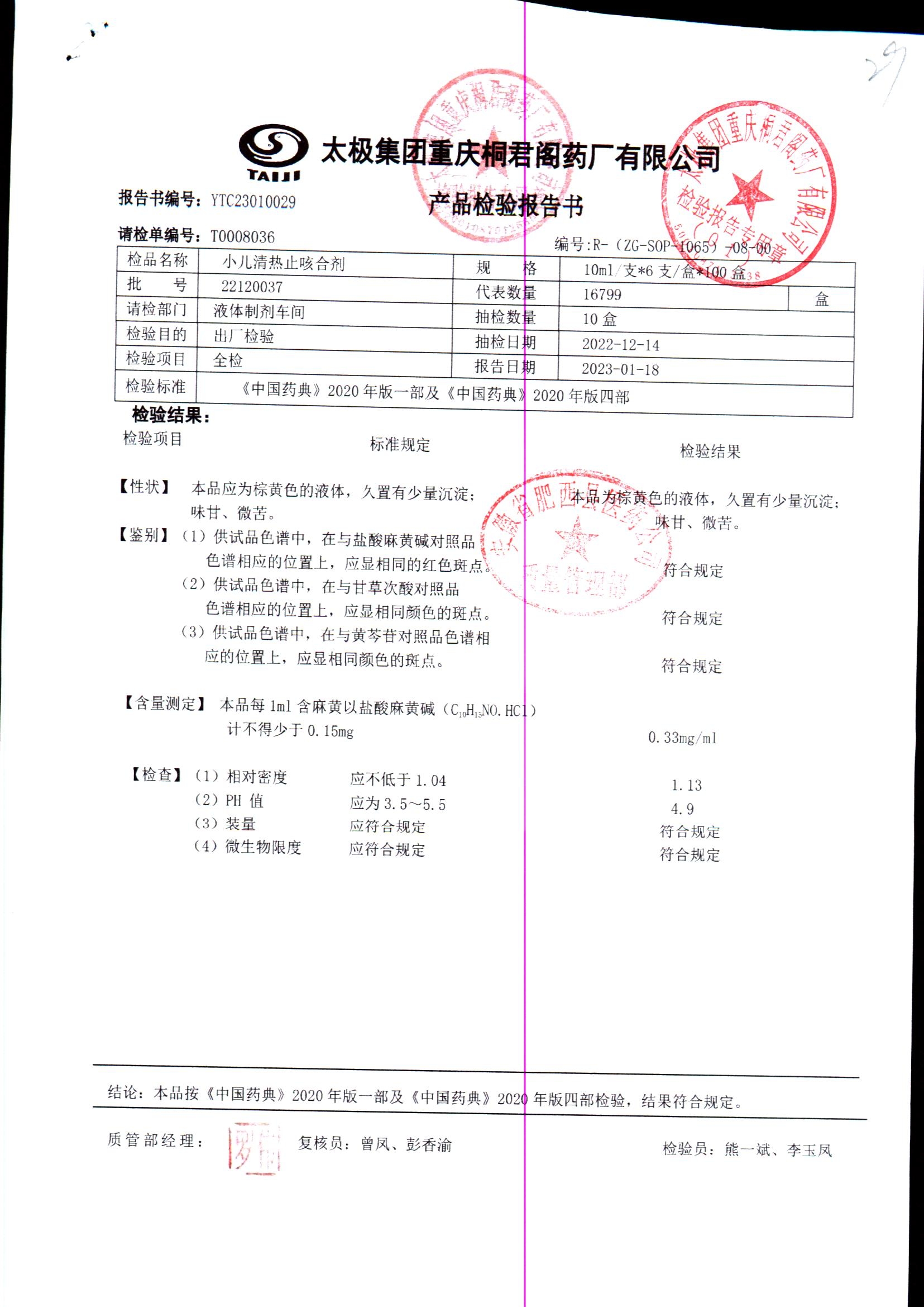 | 小儿清热止咳合剂 | 10ml*6支 | 22120037 | 查看详情 |