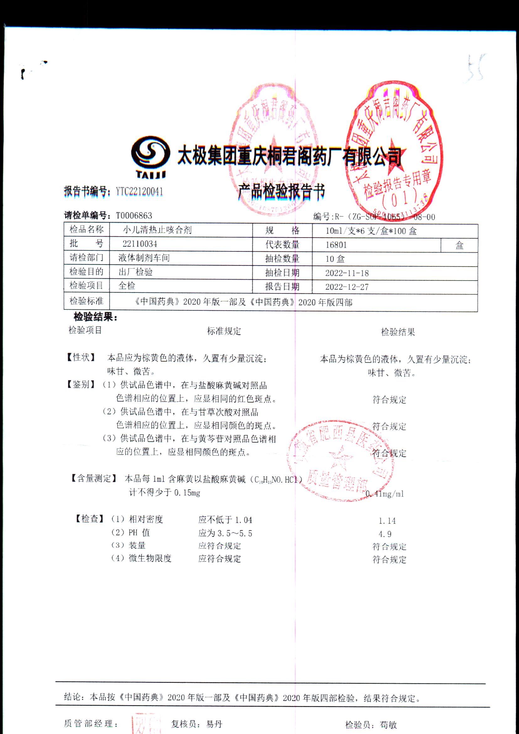 | 小儿清热止咳合剂 | 10ml*6支 | 22110033 | 查看详情 |