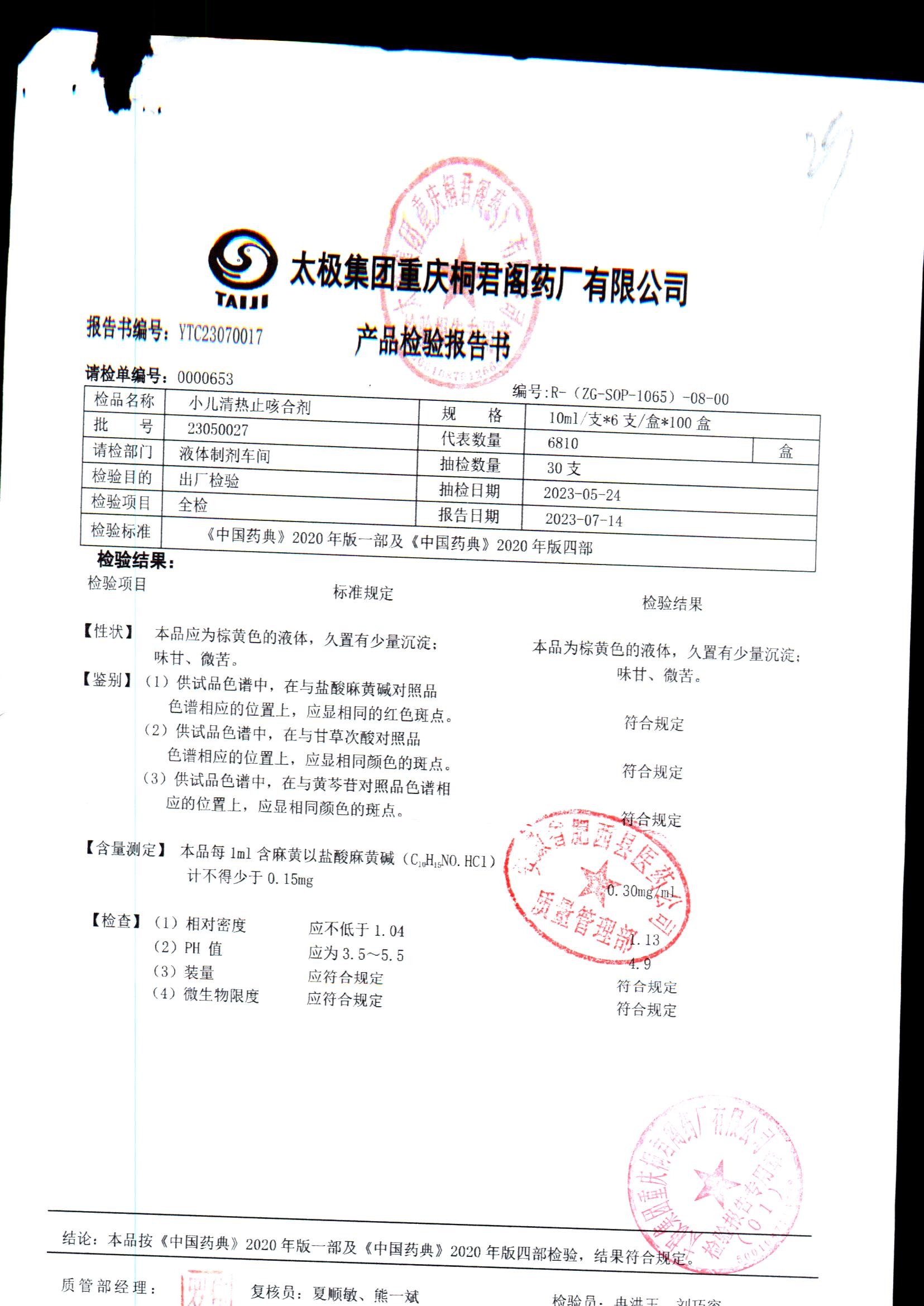 | 小儿清热止咳合剂 | 10ml*6支 | 23050027 | 查看详情 |