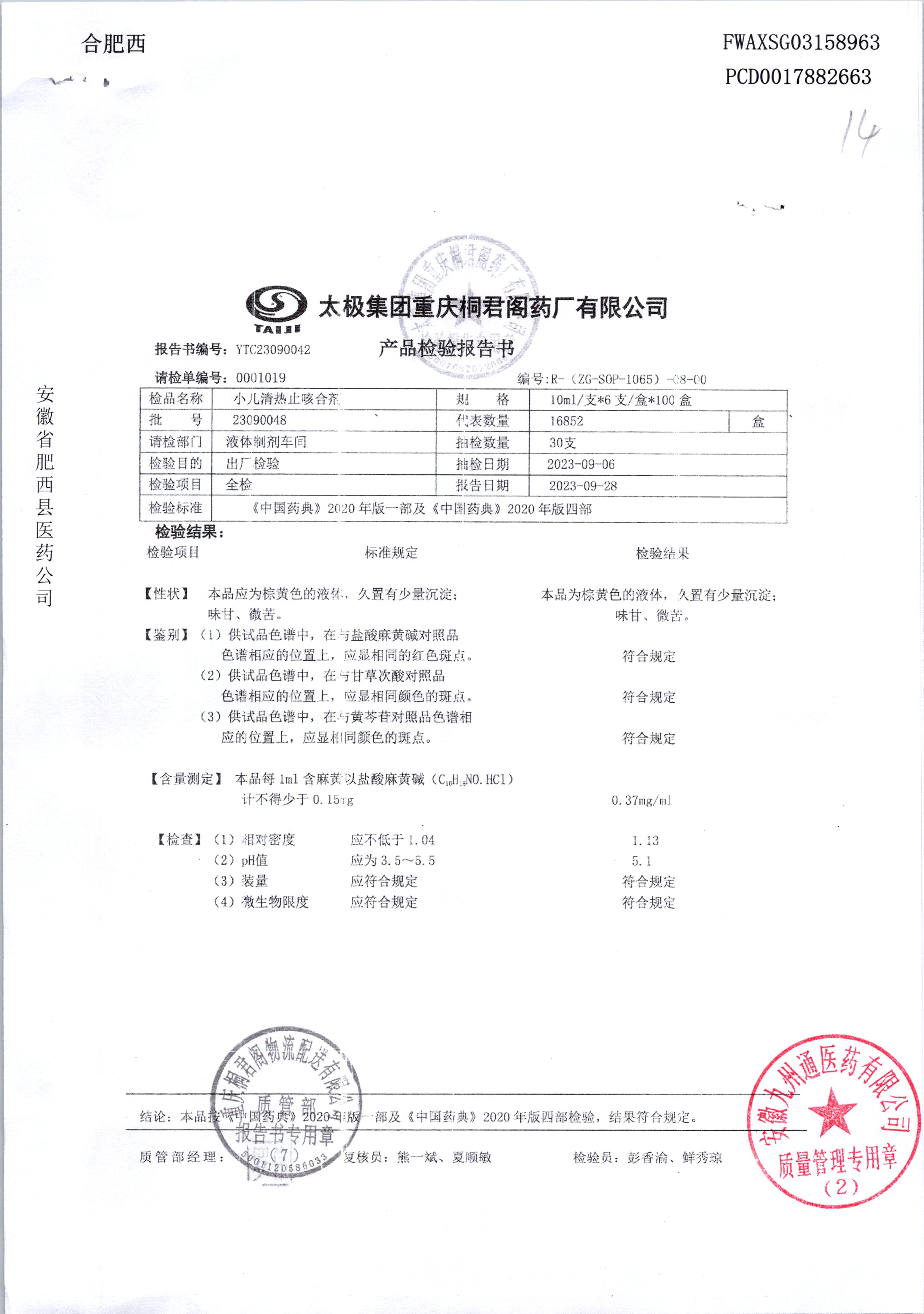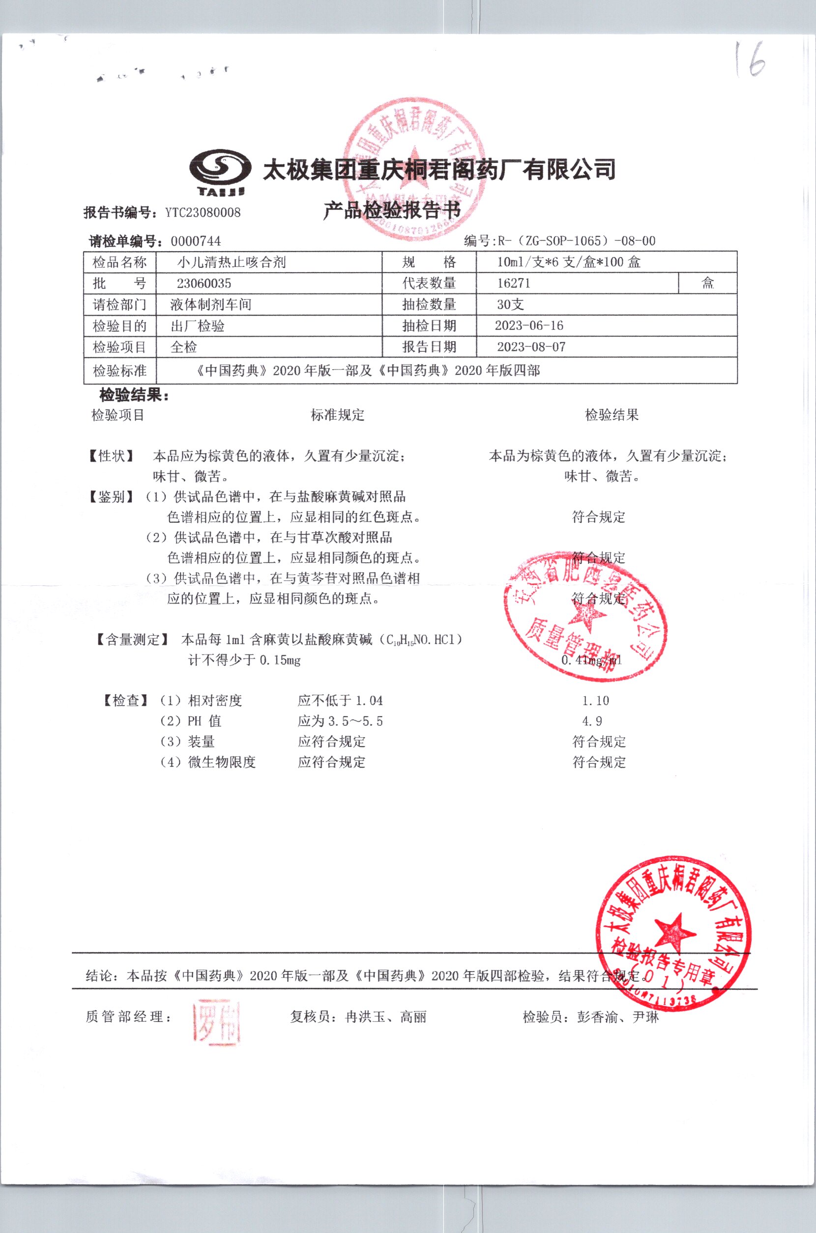| 小儿清热止咳合剂 | 10ml*6支 | 23090048 | 查看详情 |