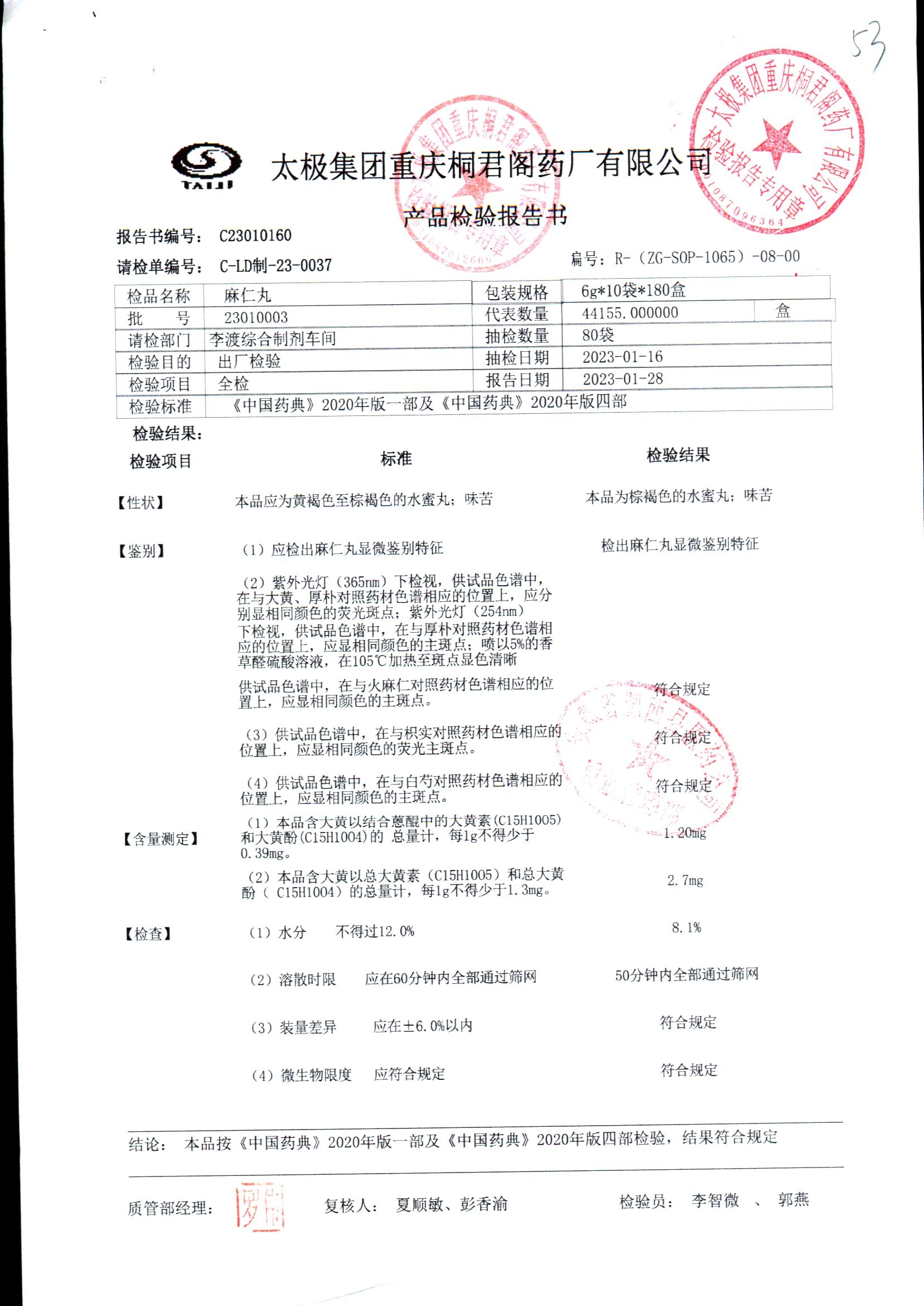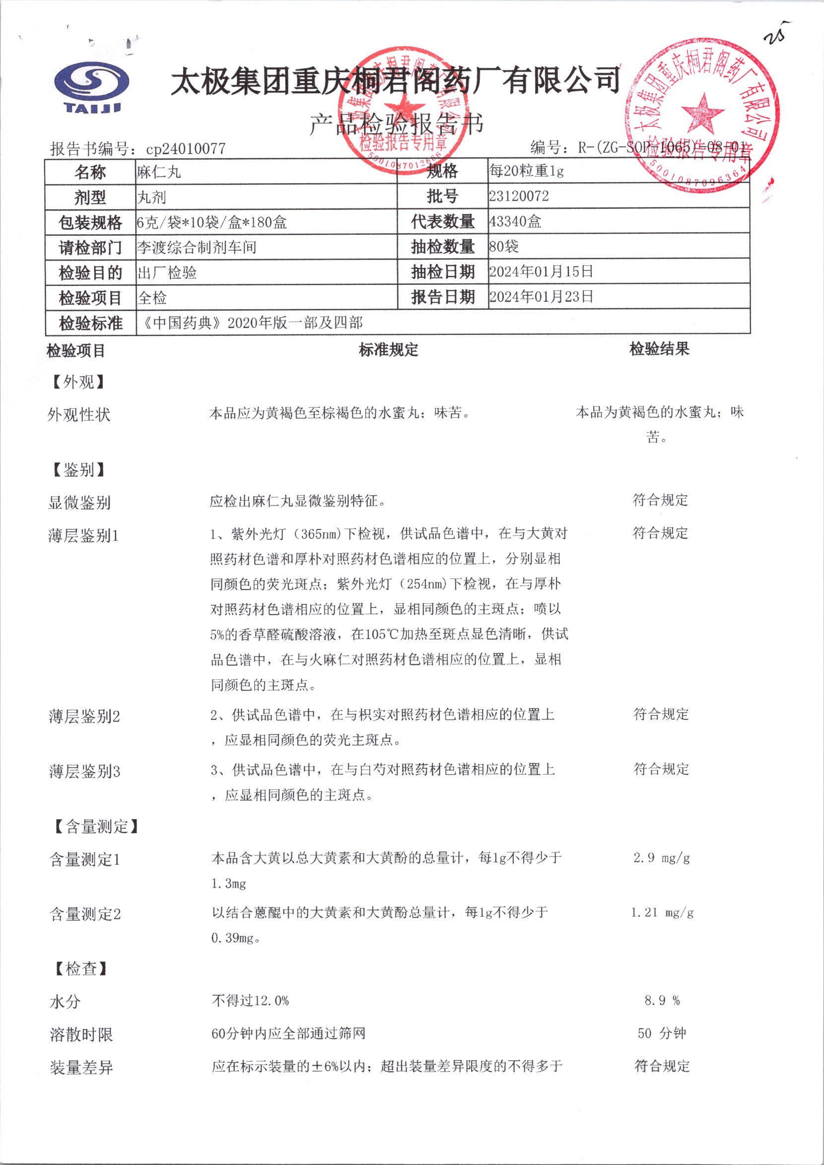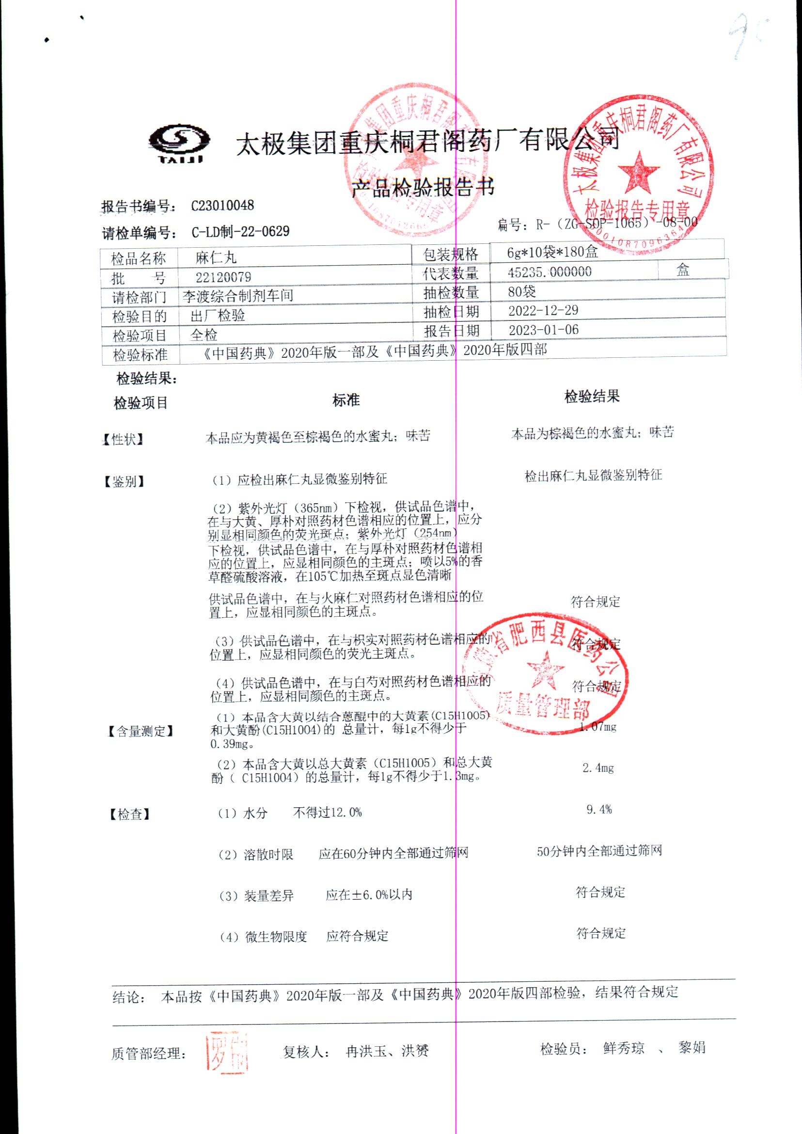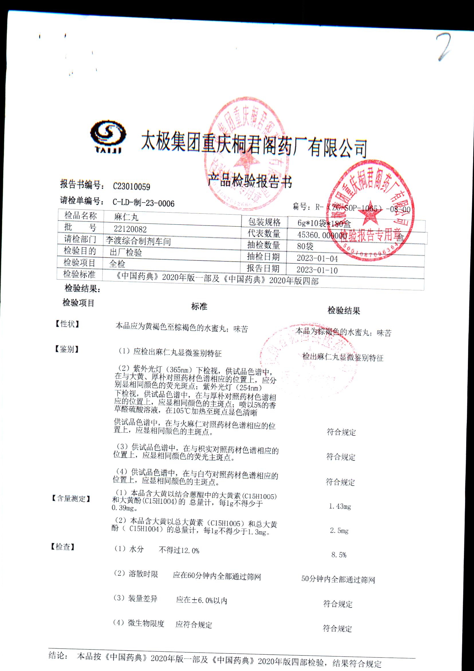 | 麻仁丸 | 6g*10袋(每20粒重1g) | 23120072/2 | 查看详情 |