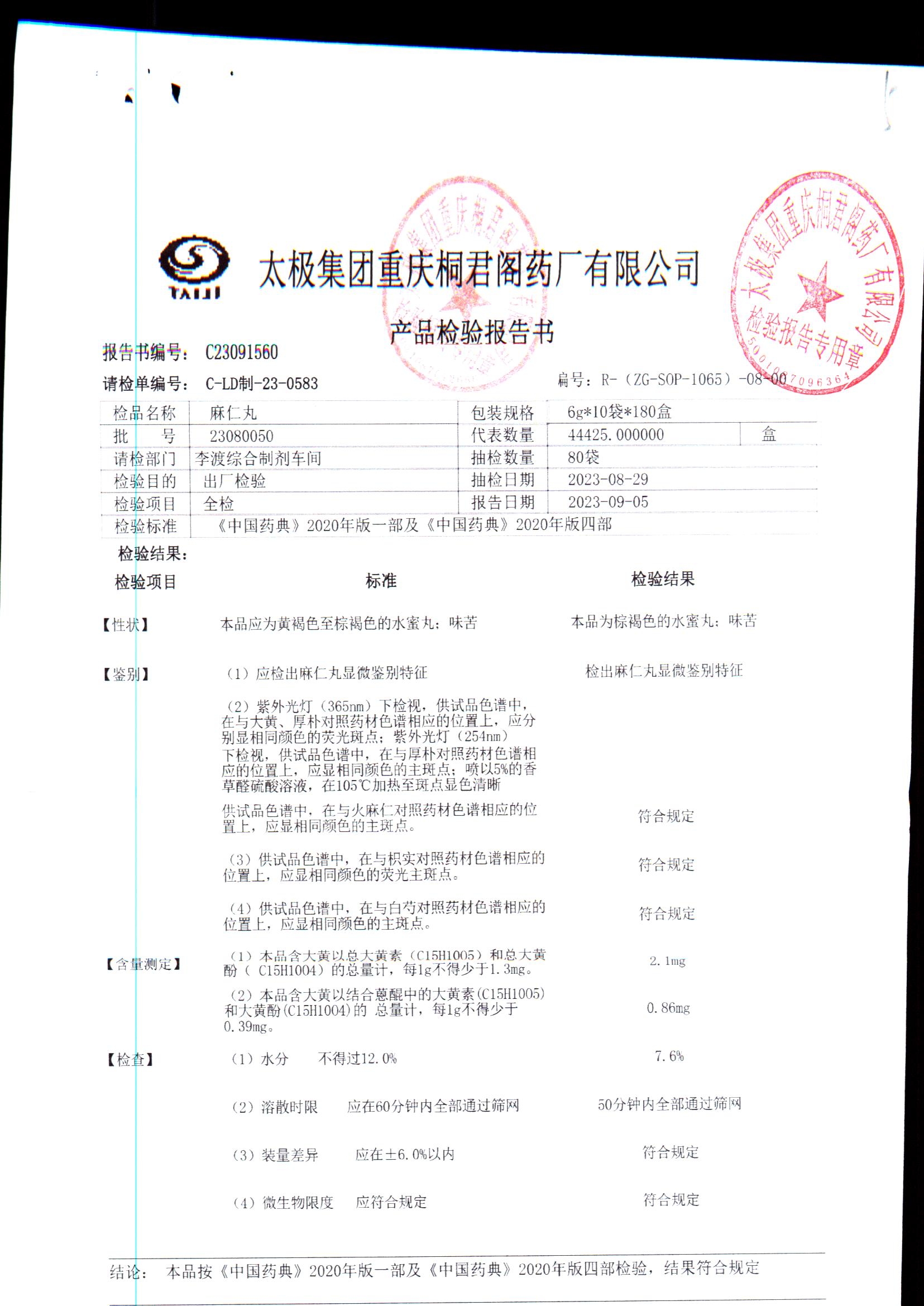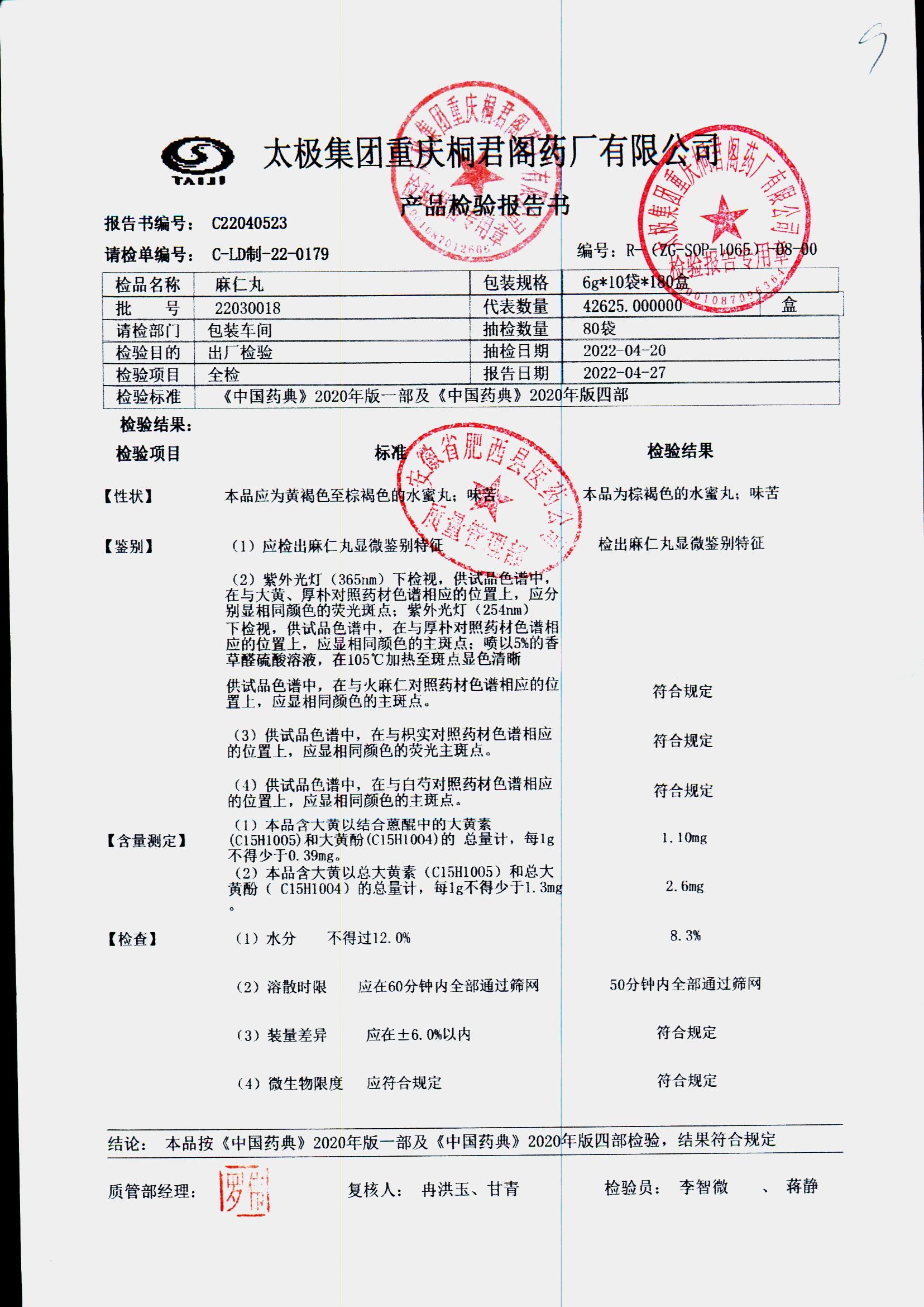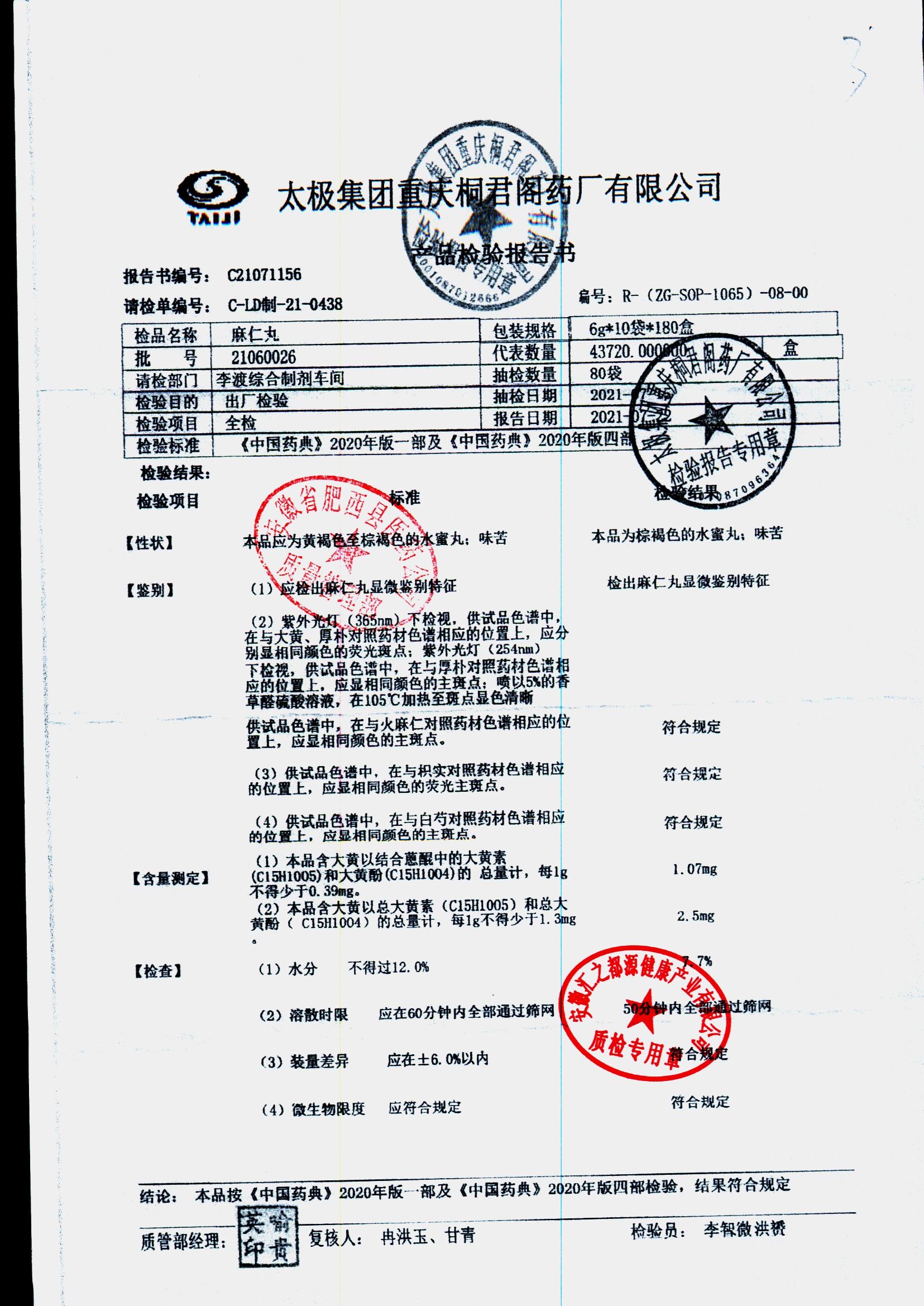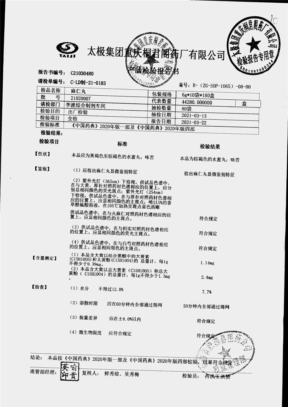 | 麻仁丸 | 6g*10袋(每20粒重1g) | 23120072/2 | 查看详情 |