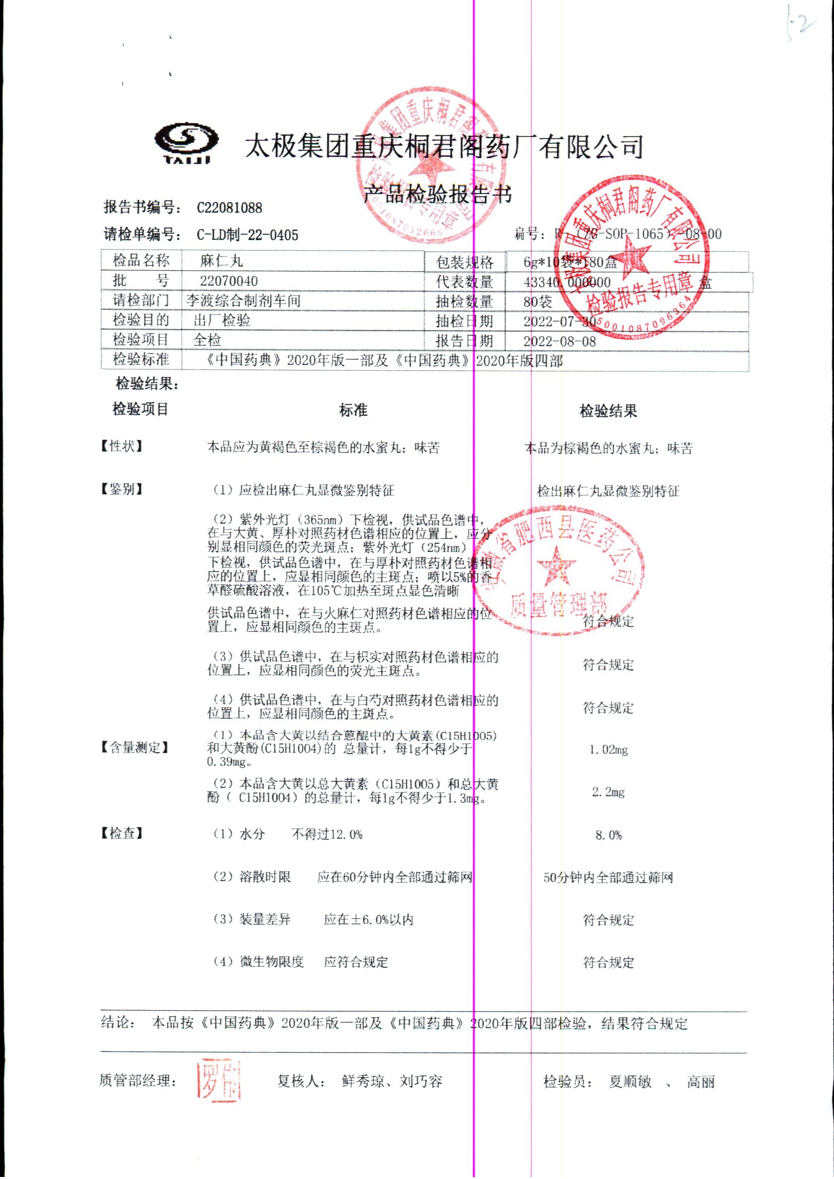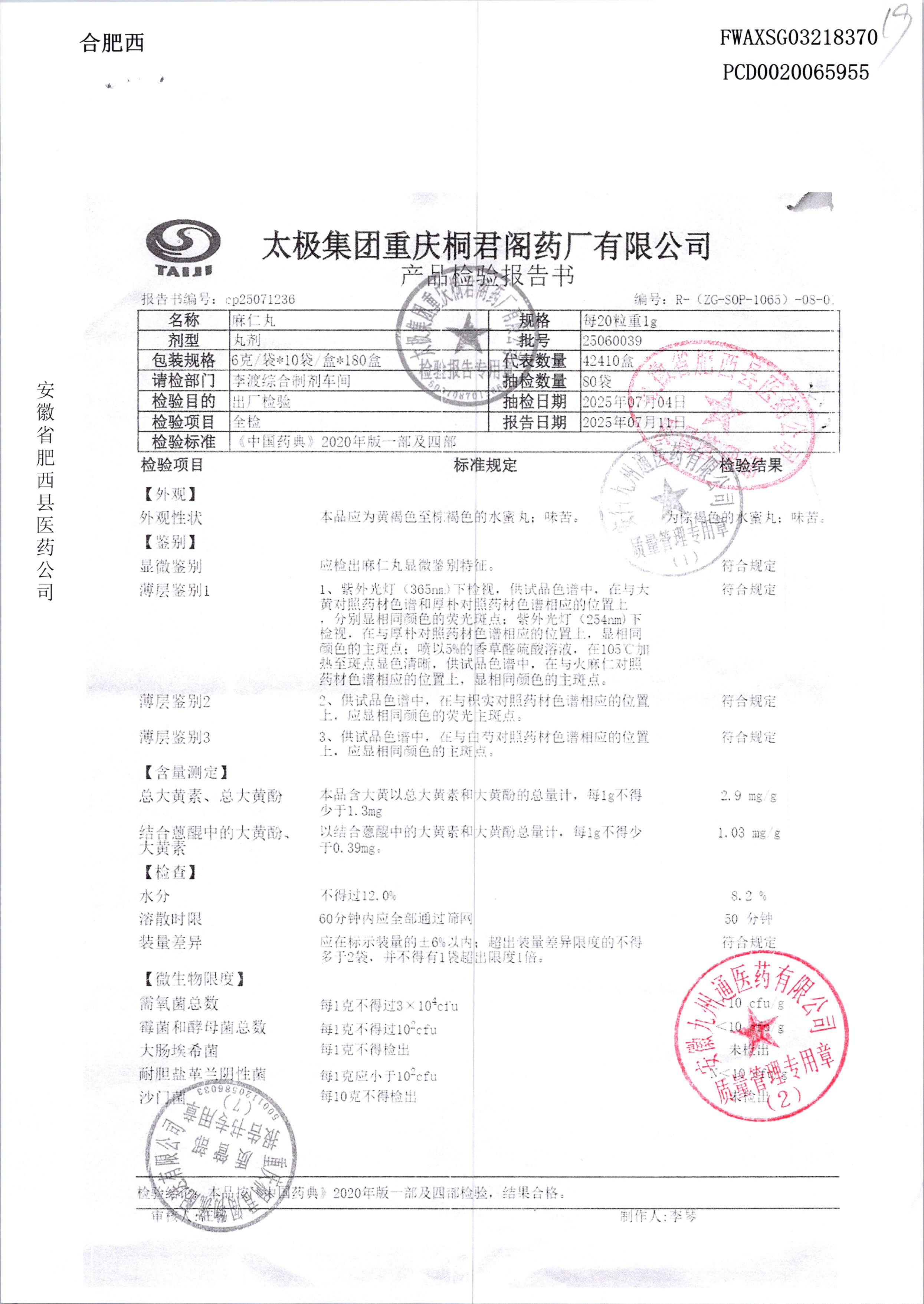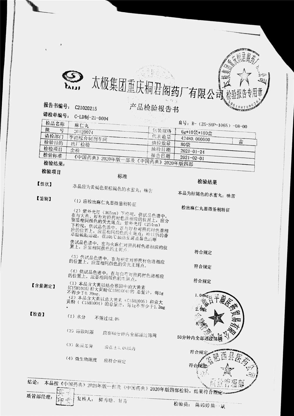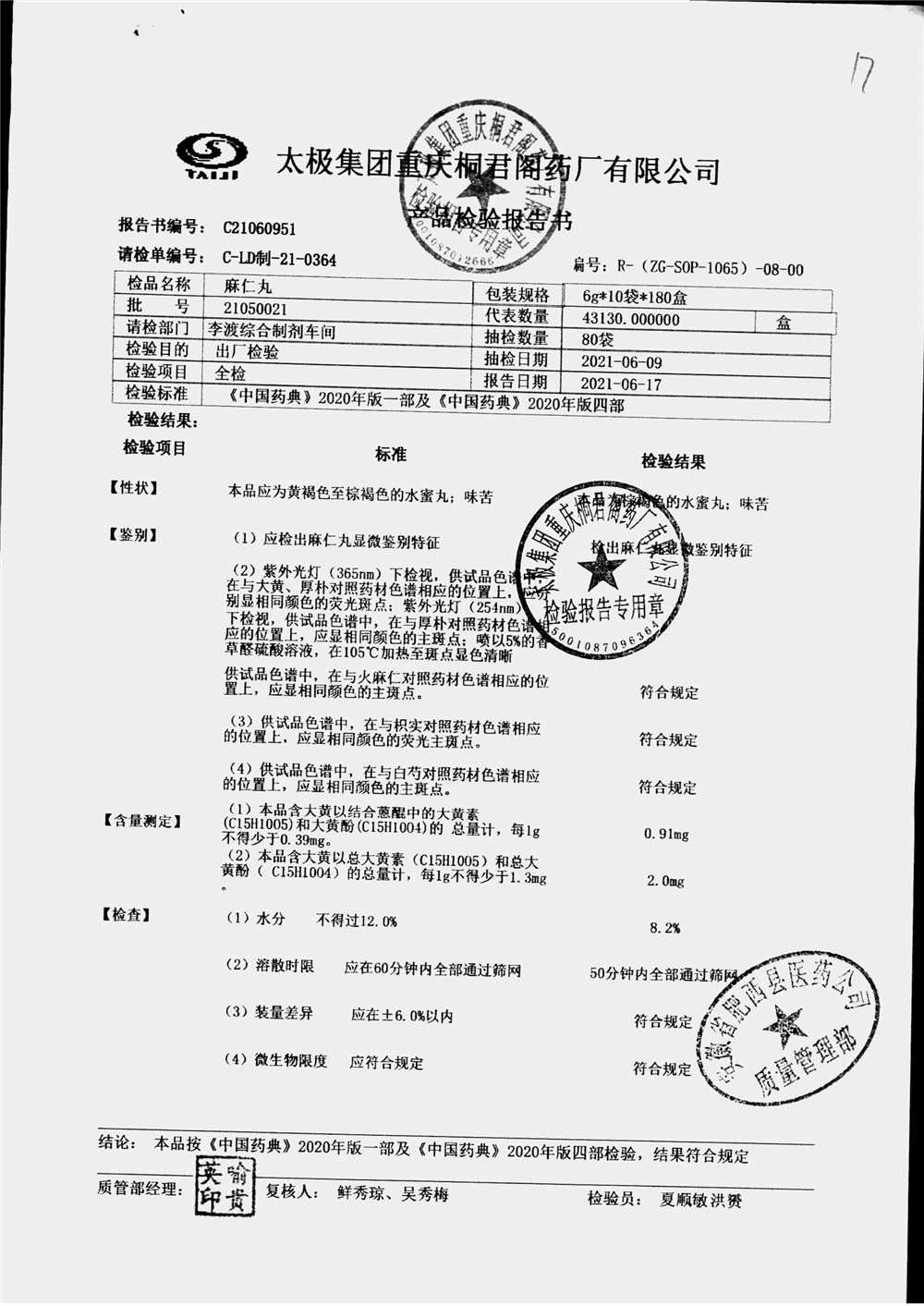 | 麻仁丸 | 6g*10袋(每20粒重1g) | 23120072/2 | 查看详情 |