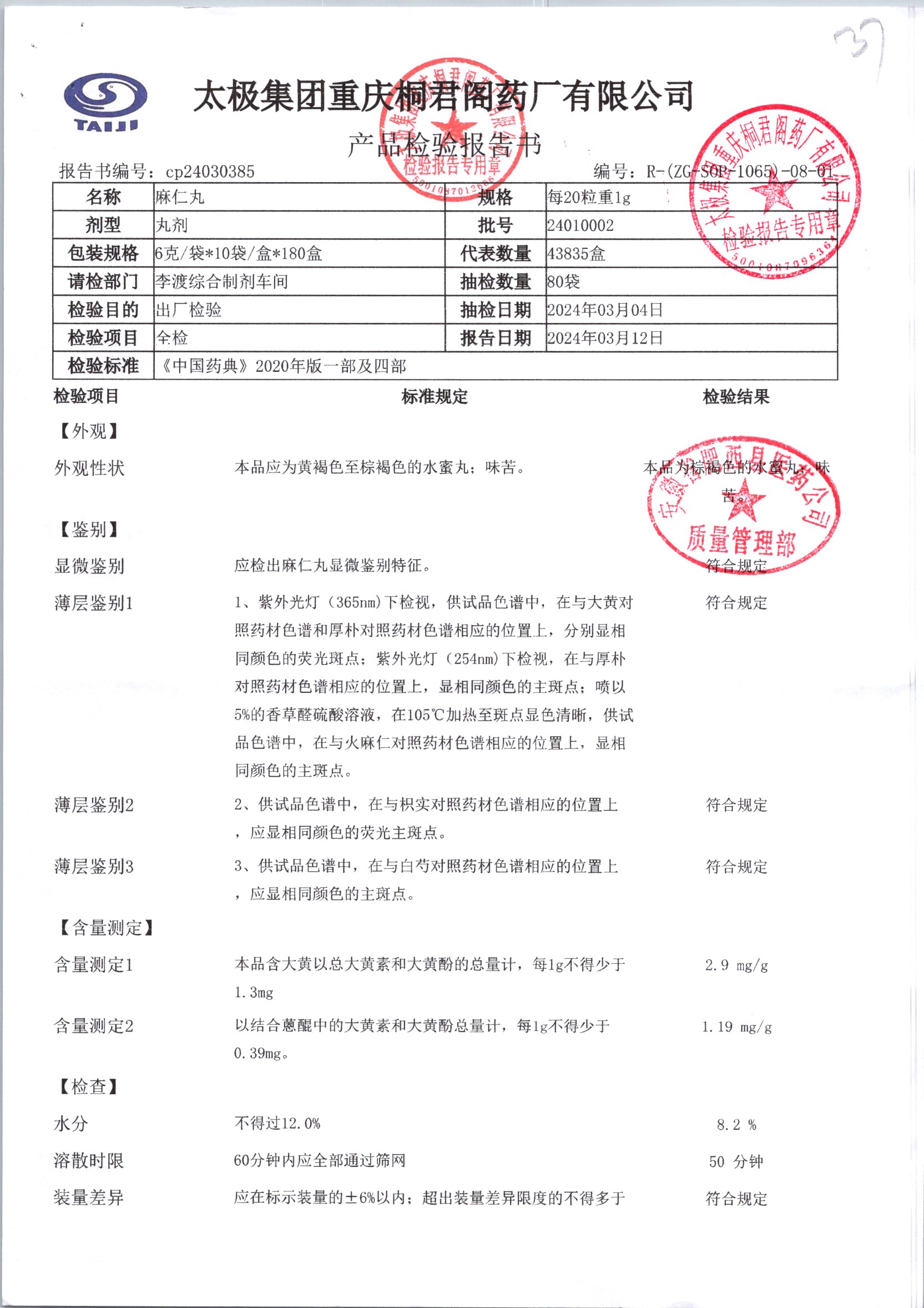 | 麻仁丸 | 6g*10袋(每20粒重1g) | 24070027/2 | 查看详情 |