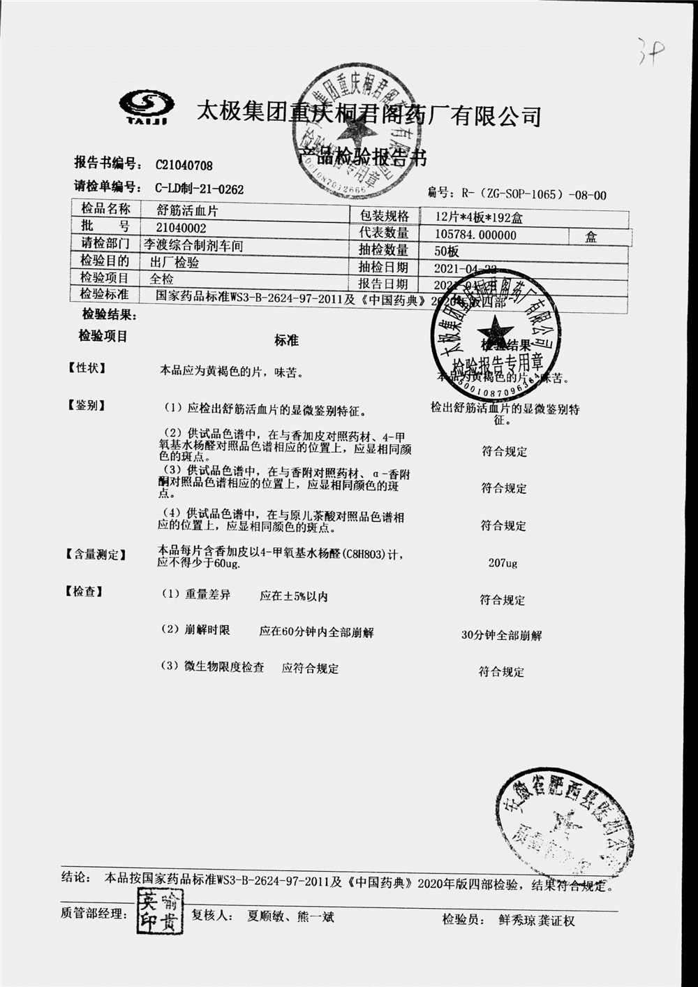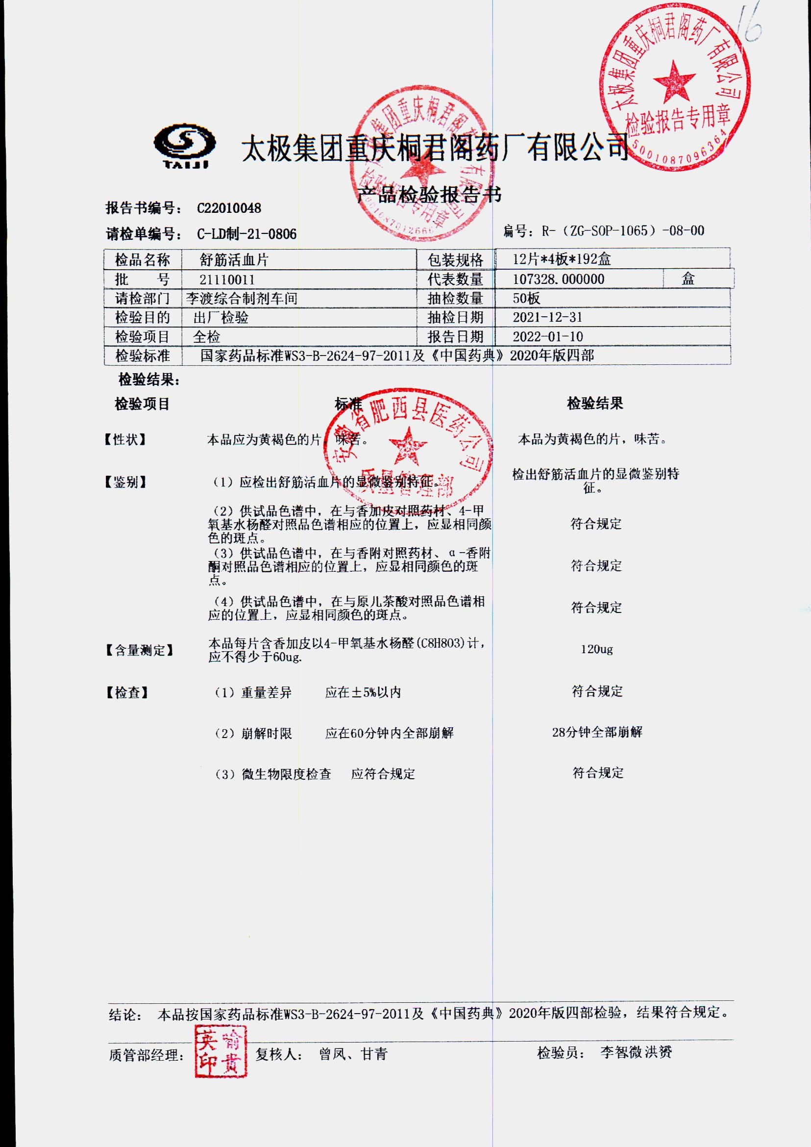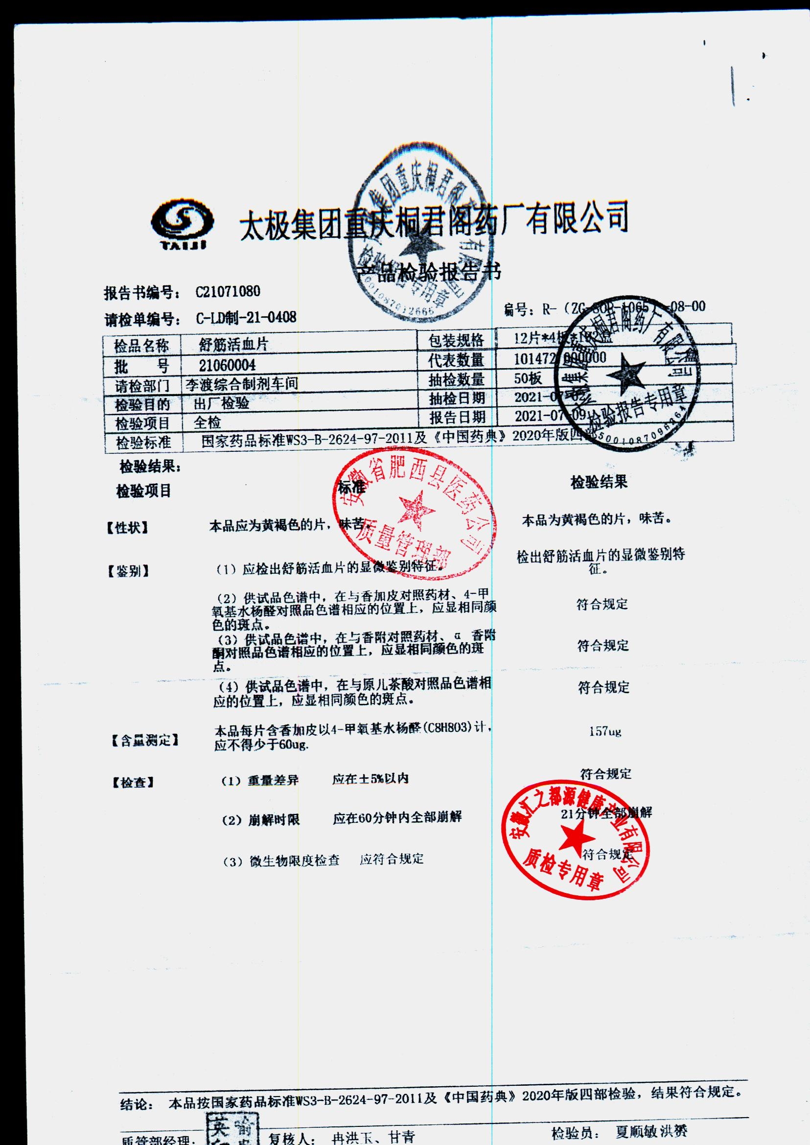 | 舒筋活血片 | 0.3g*12片/板*4板 | 21110010 | 查看详情 |