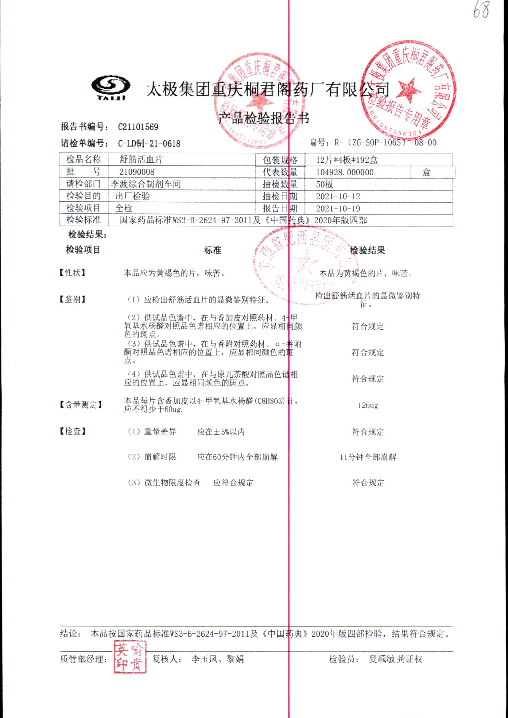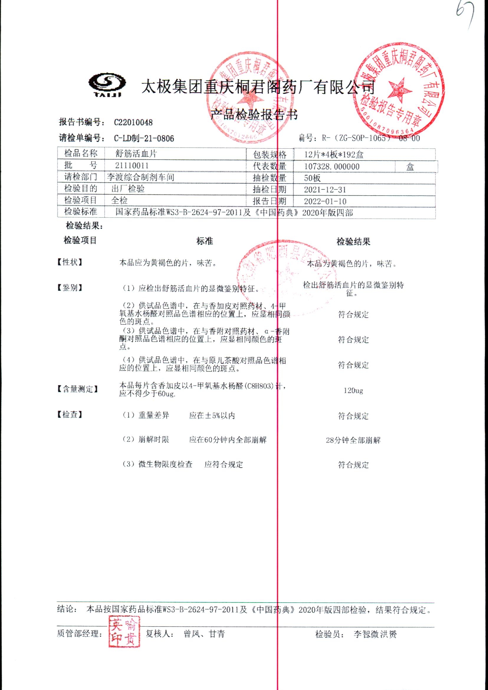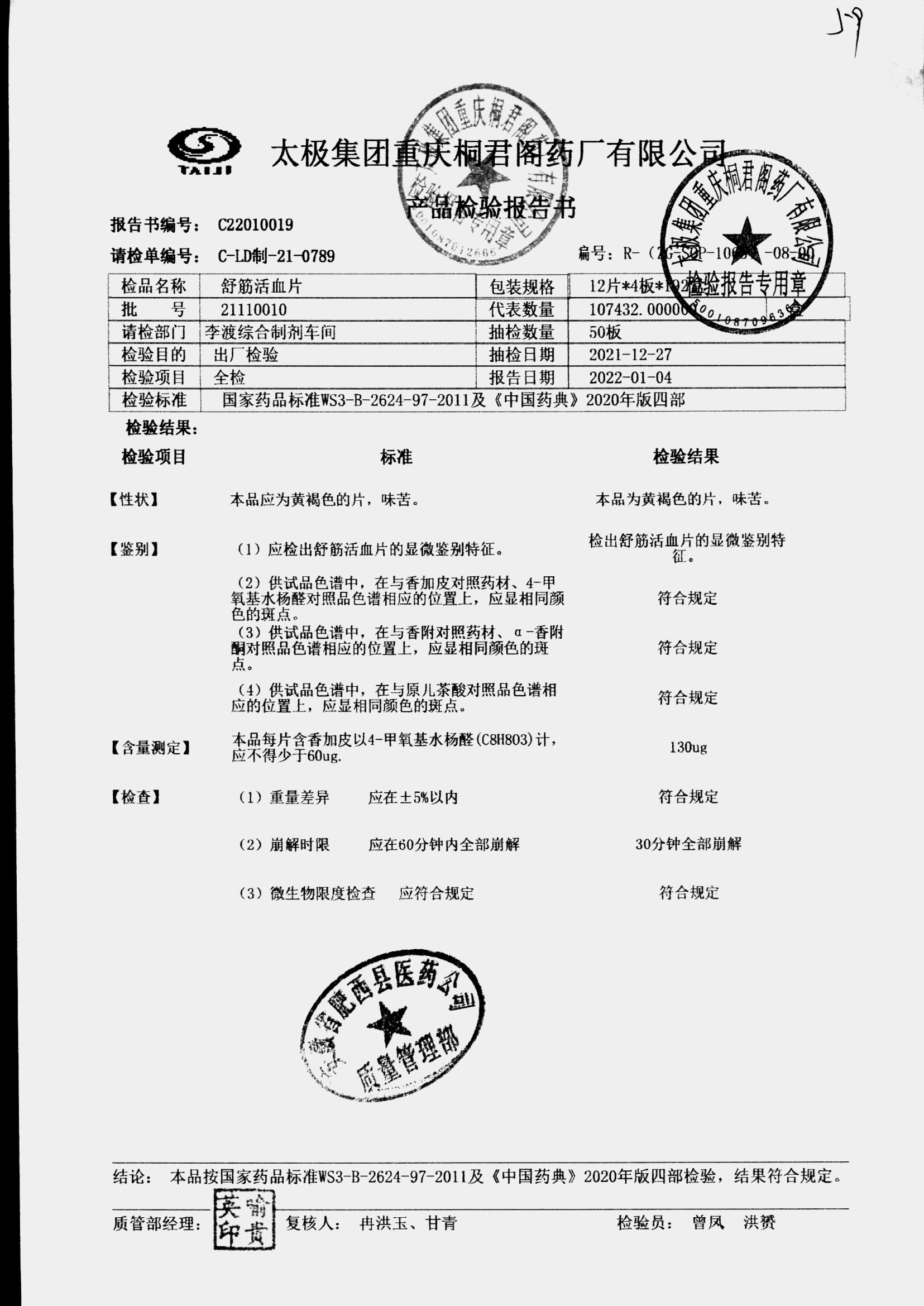 | 舒筋活血片 | 0.3g*12片/板*4板 | 21110010 | 查看详情 |