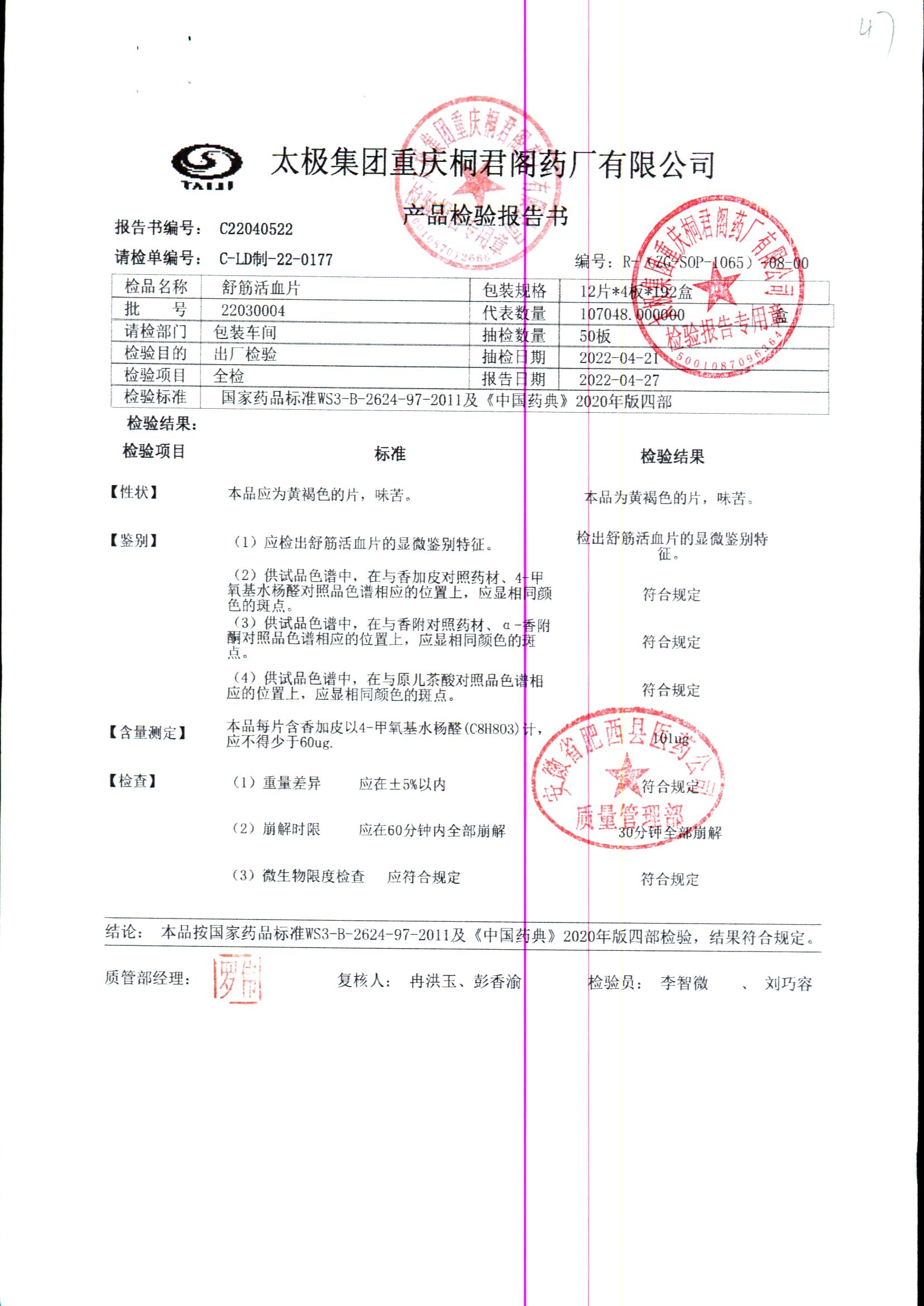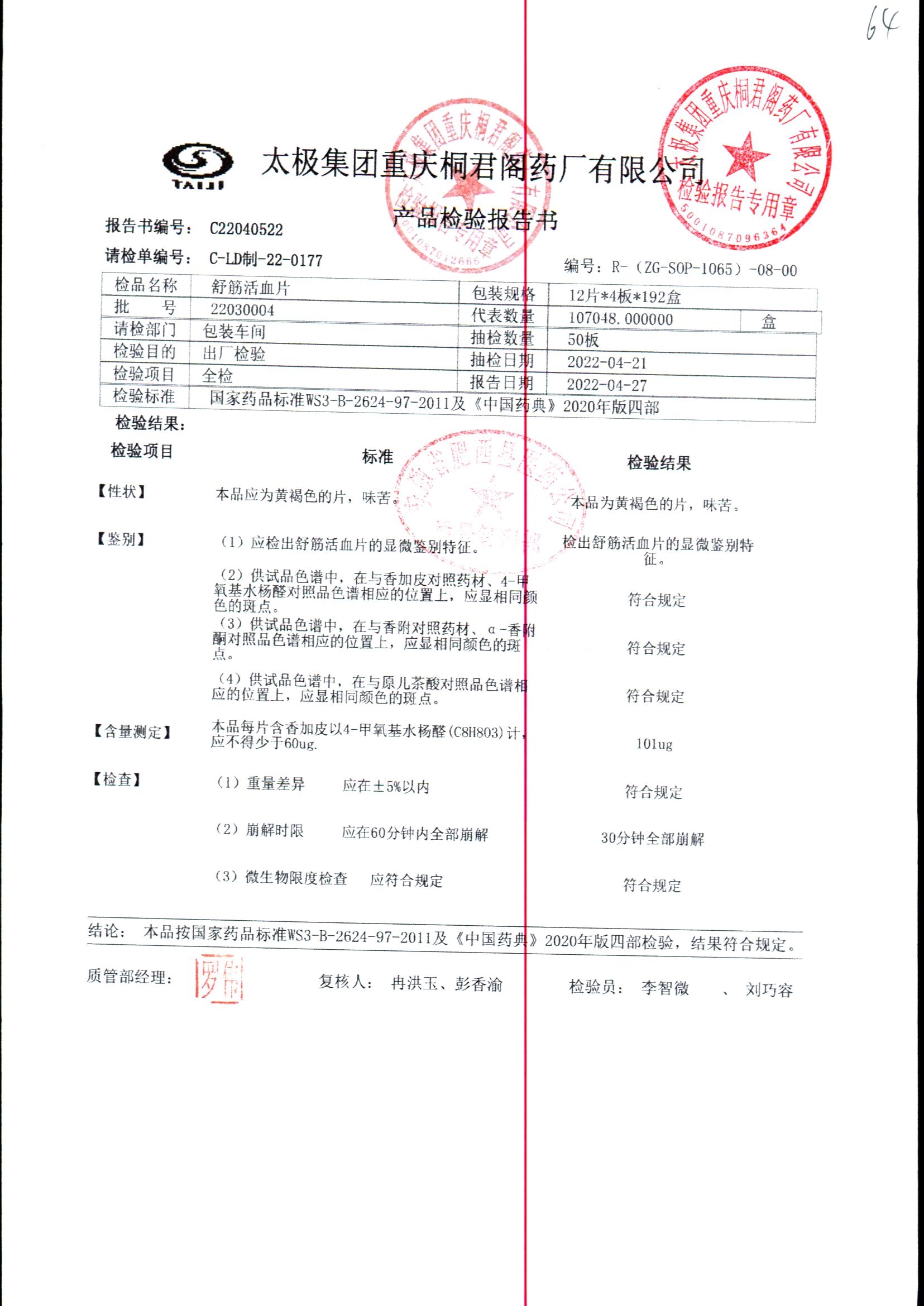 | 舒筋活血片 | 0.3g*12片/板*4板 | 22030004 | 查看详情 |