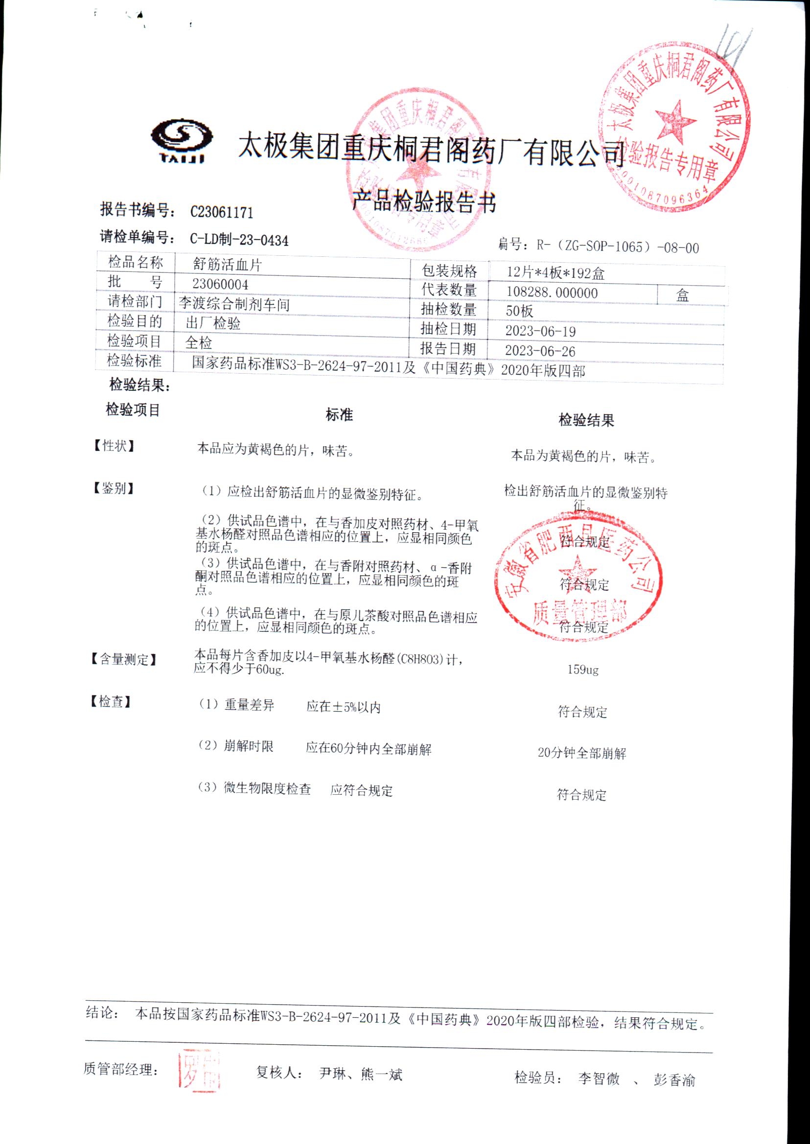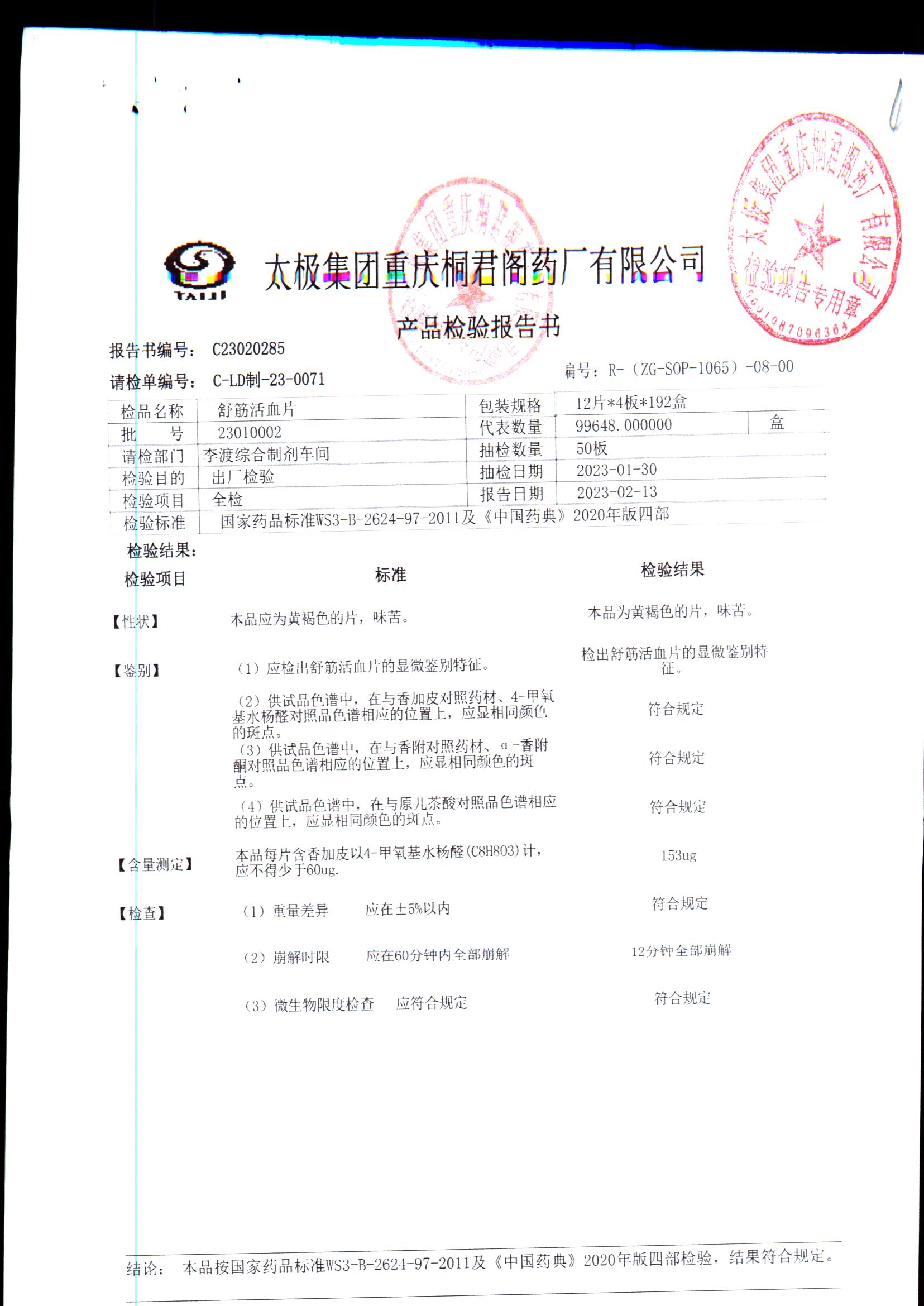 | 舒筋活血片 | 0.3g*12片/板*4板 | 23060004 | 查看详情 |
