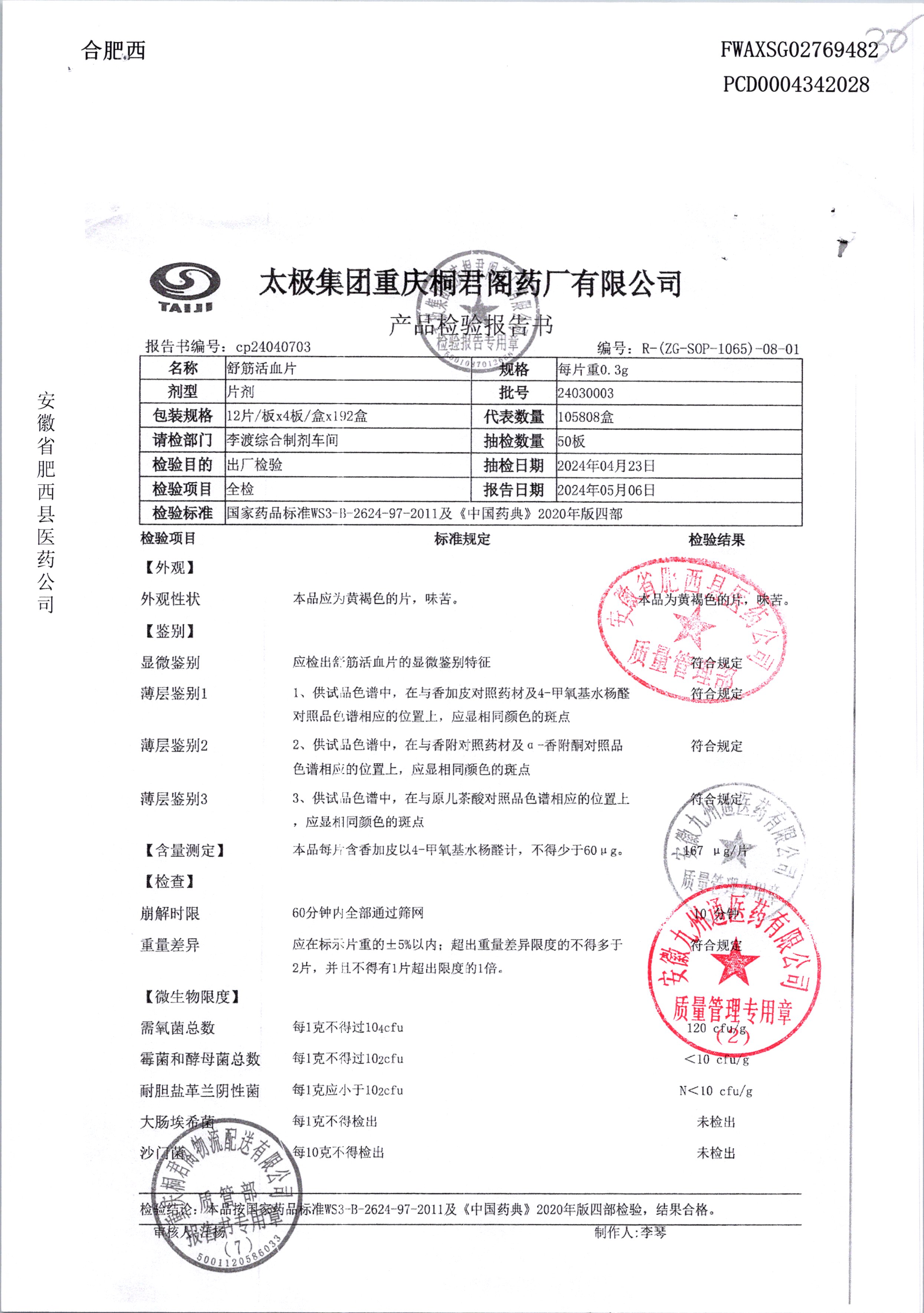 | 舒筋活血片 | 0.3g*12片/板*4板 | 24030003 | 查看详情 |