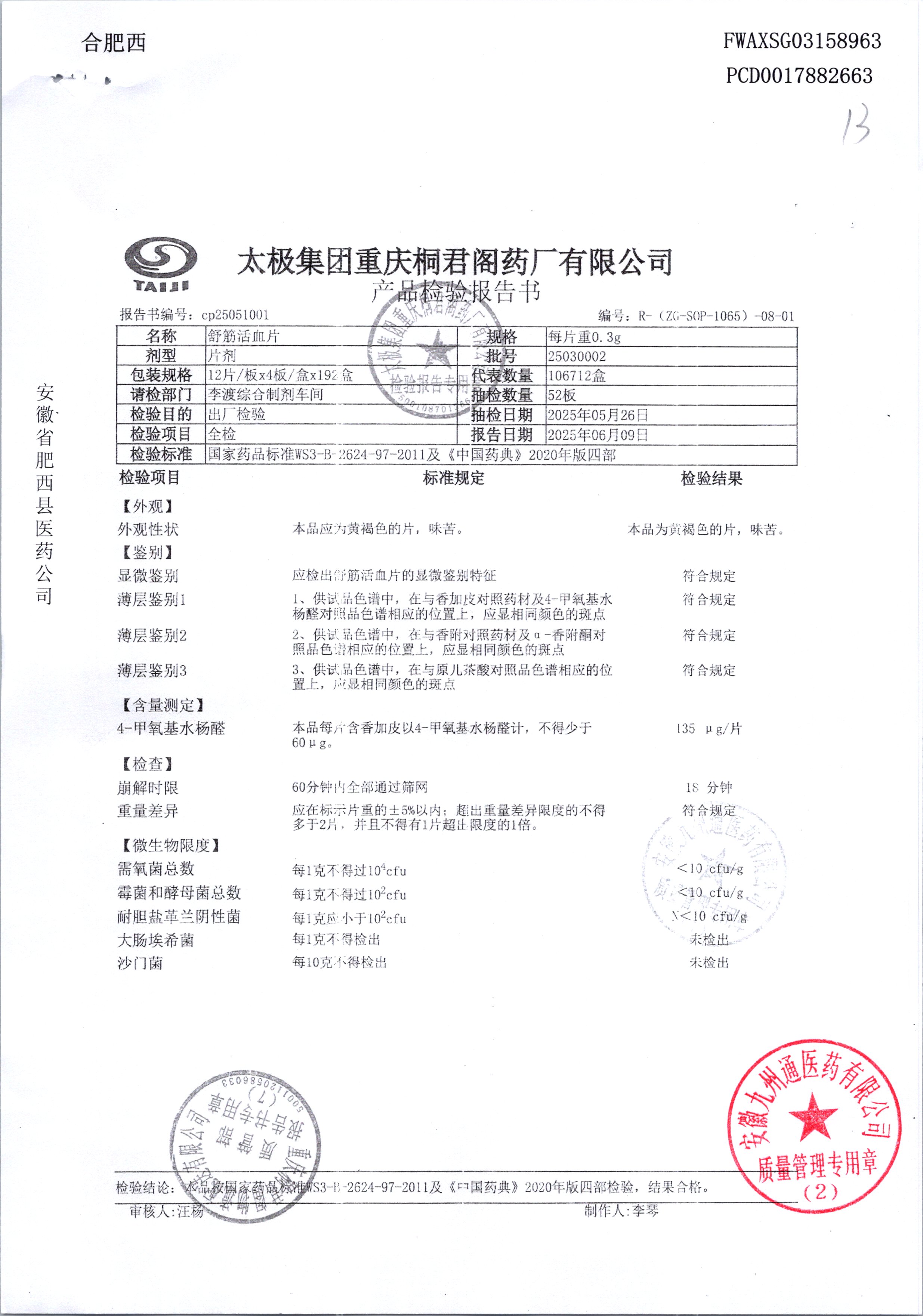 | 舒筋活血片 | 0.3g*12片/板*4板 | 23010002 | 查看详情 |