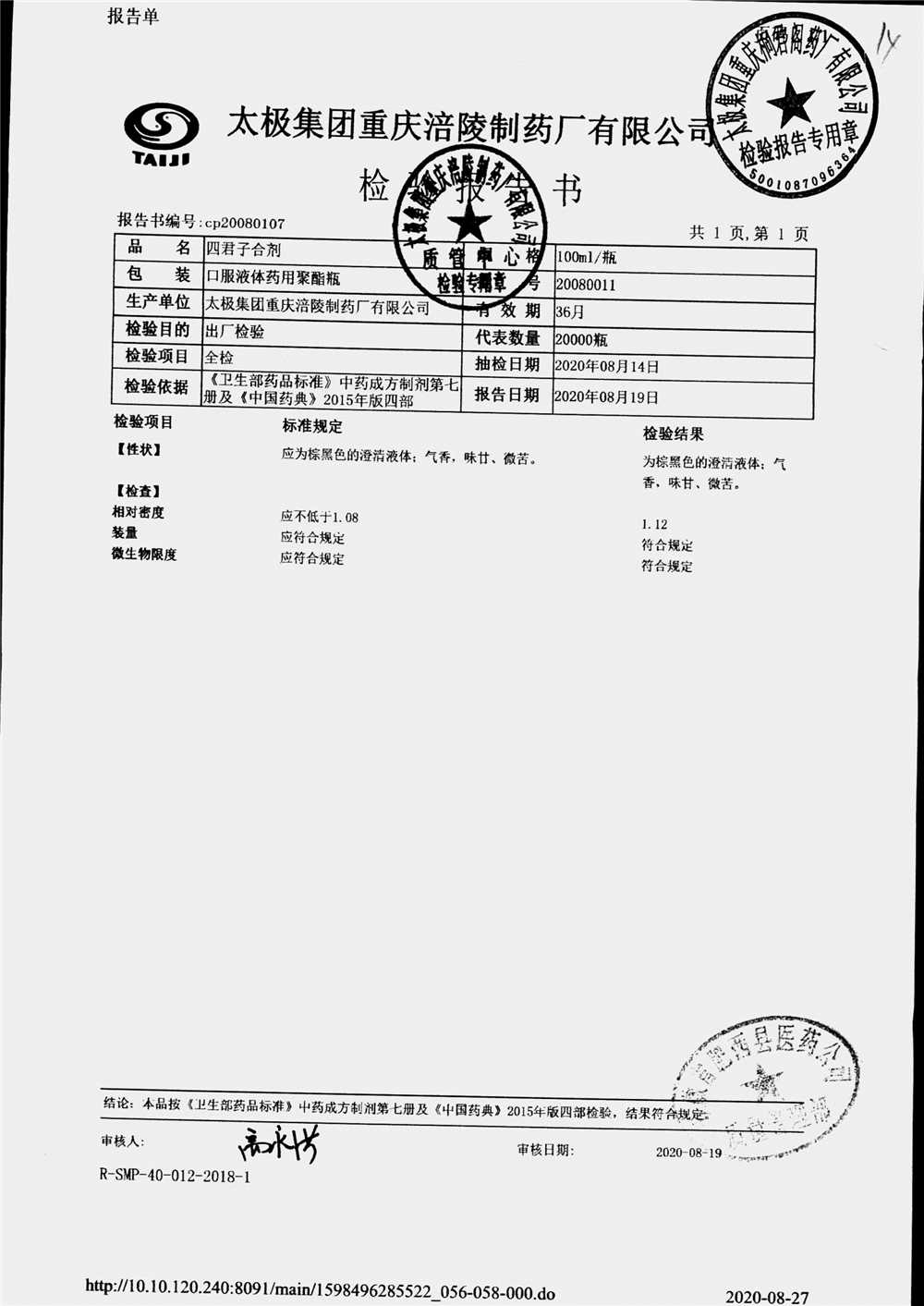 | 四君子合剂 | 每瓶装100ml | 20080009 | 查看详情 |