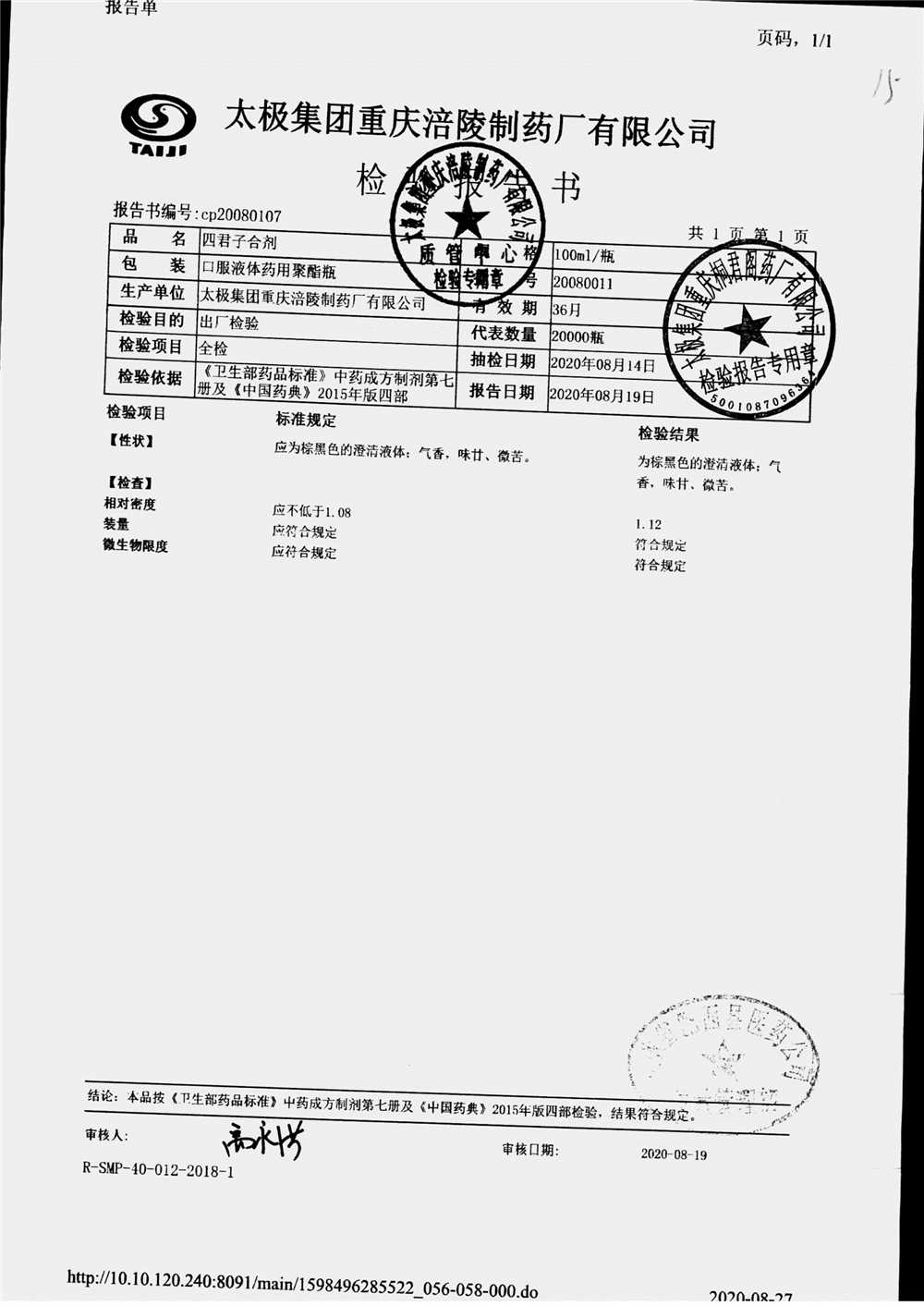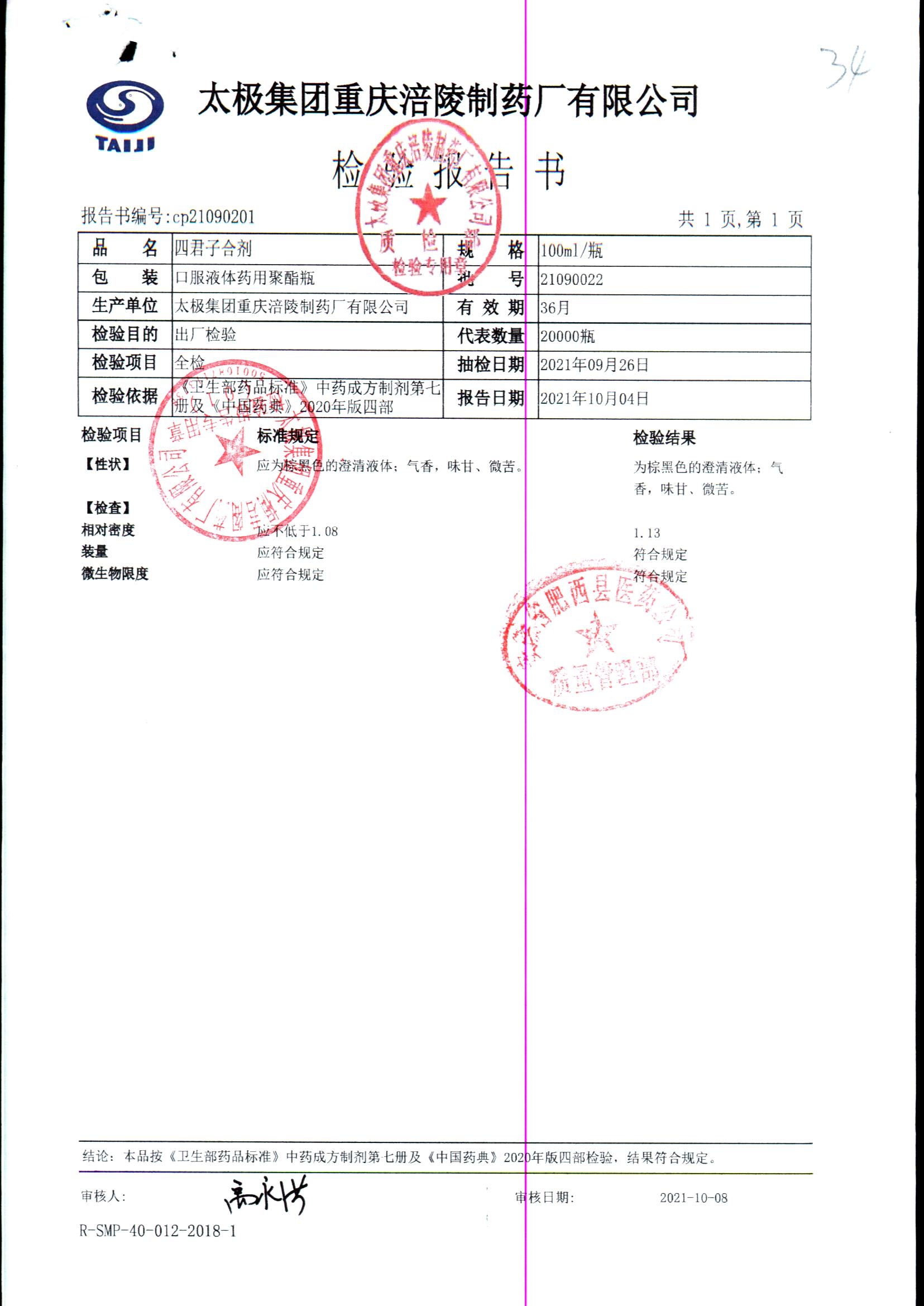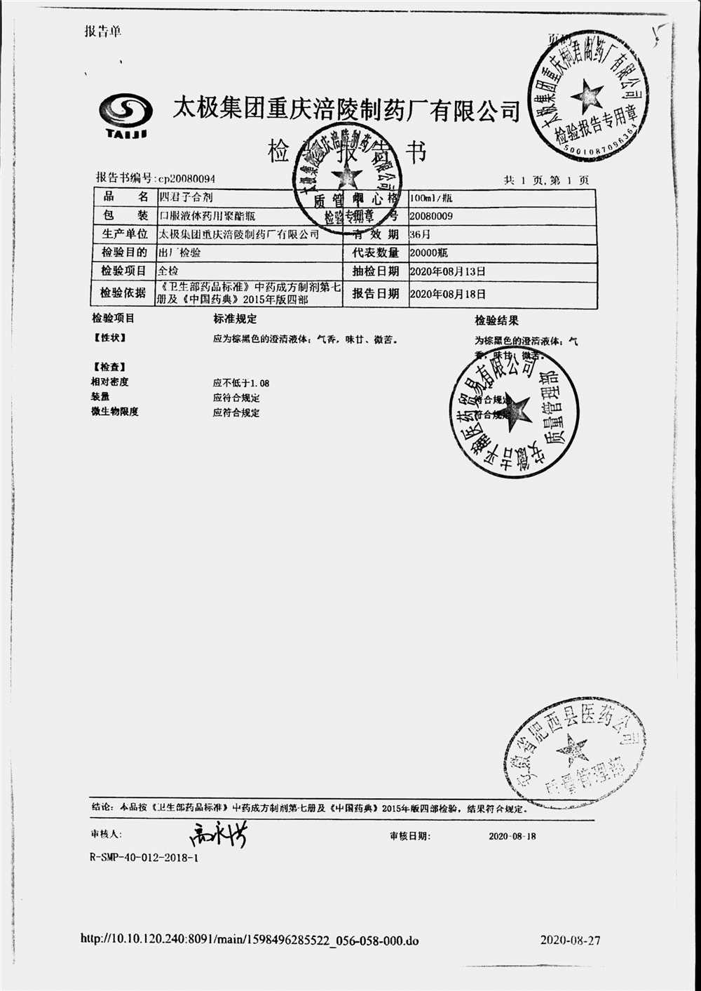 | 四君子合剂 | 每瓶装100ml | 20080011 | 查看详情 |