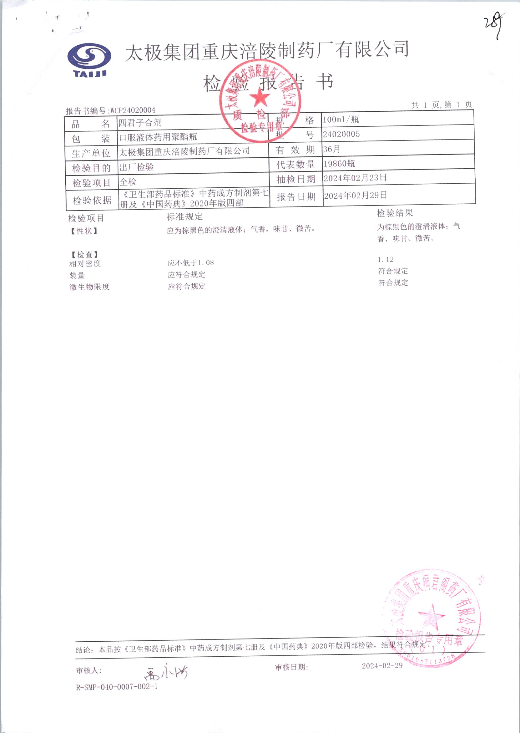 | 四君子合剂 | 每瓶装100ml | 24020005 | 查看详情 |