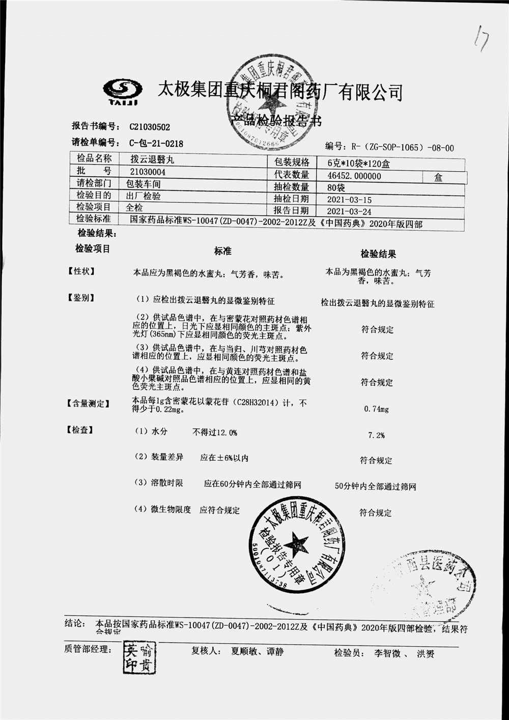 | 拨云退翳丸 | 6g*10袋(每10丸重1g) | 21110015 | 查看详情 |