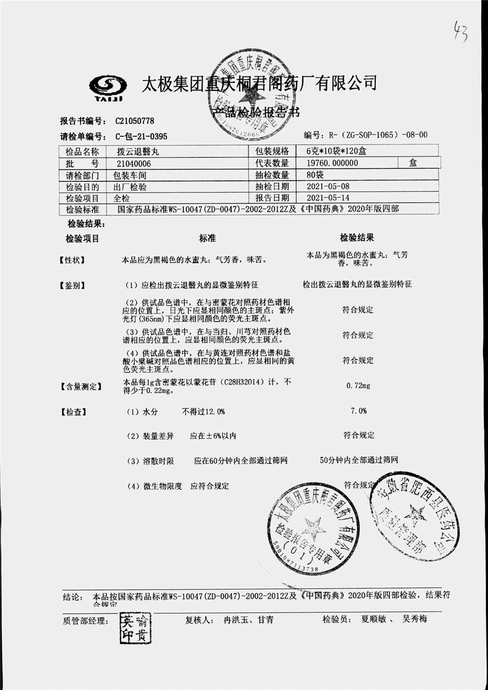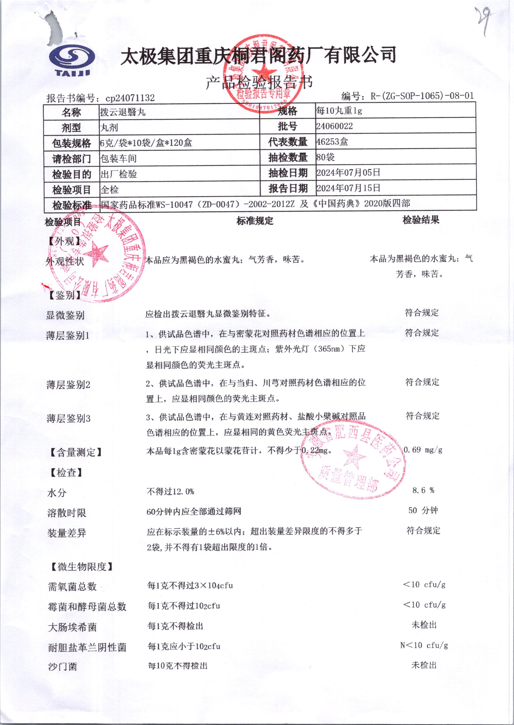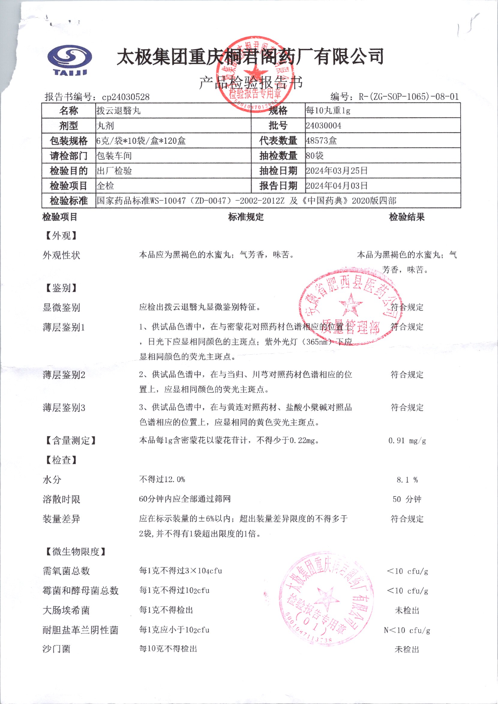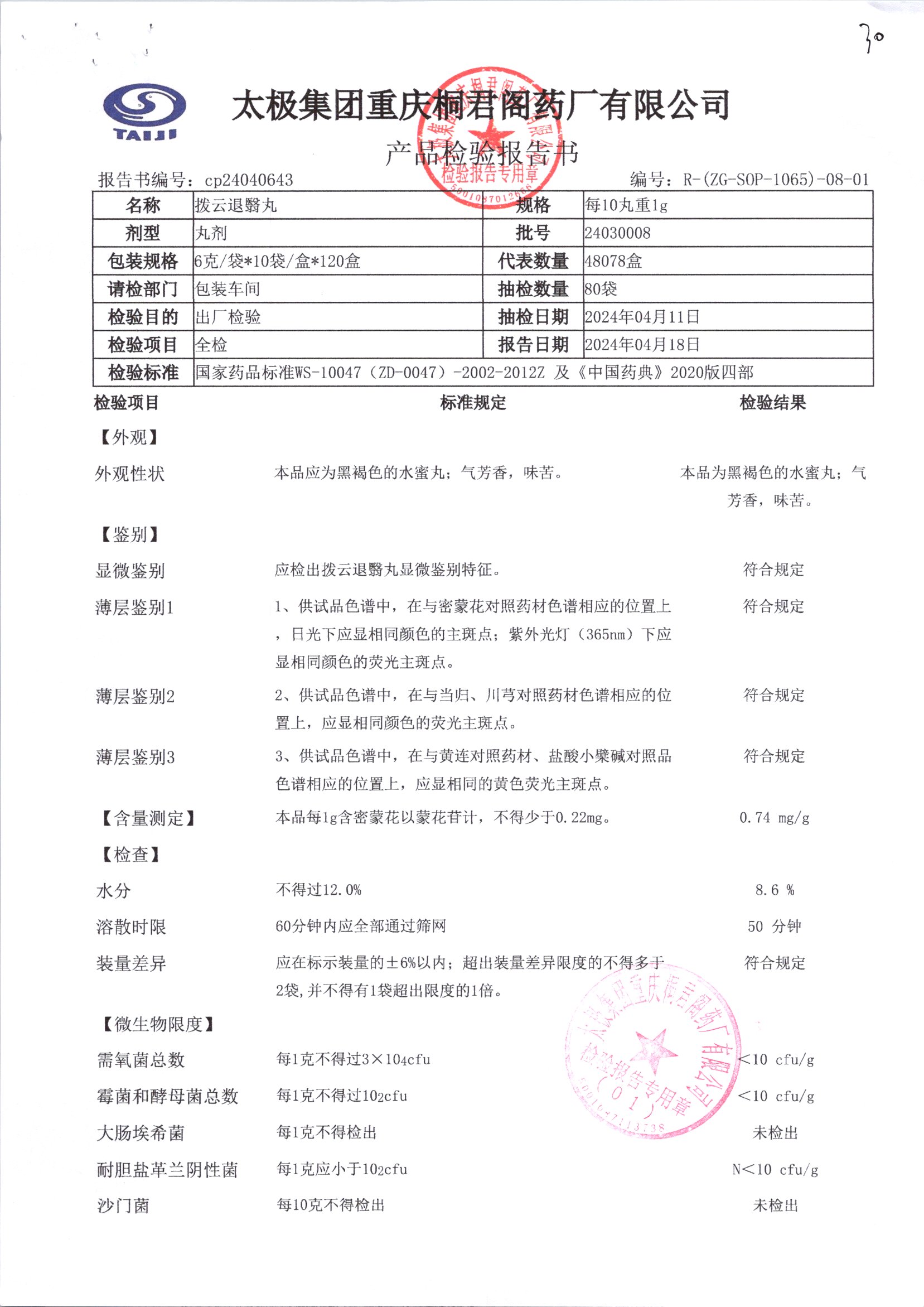 | 拨云退翳丸 | 6g*10袋(每10丸重1g) | 24030004/1 | 查看详情 |