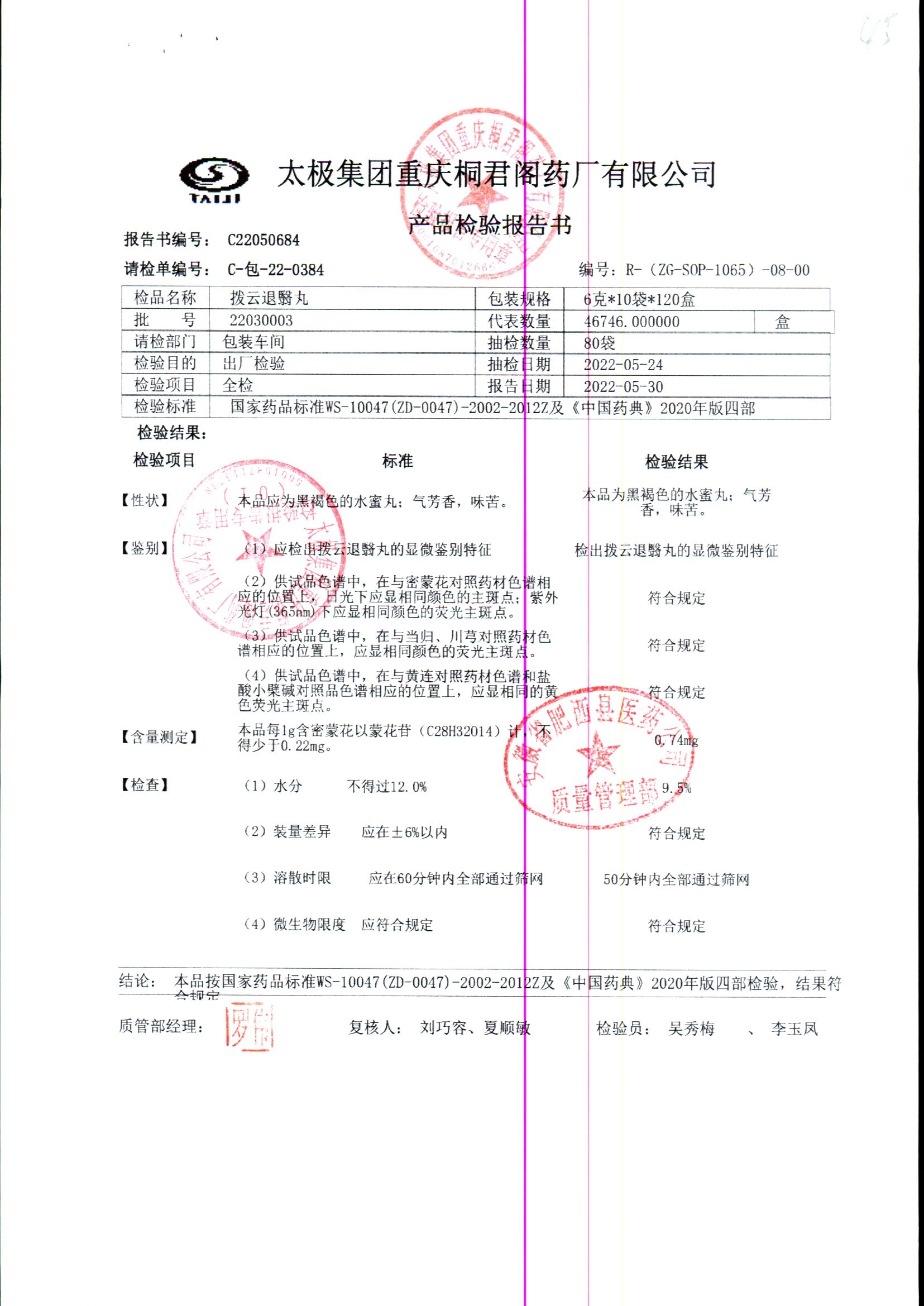 | 拨云退翳丸 | 6g*10袋(每10丸重1g) | 24060022/2 | 查看详情 |
