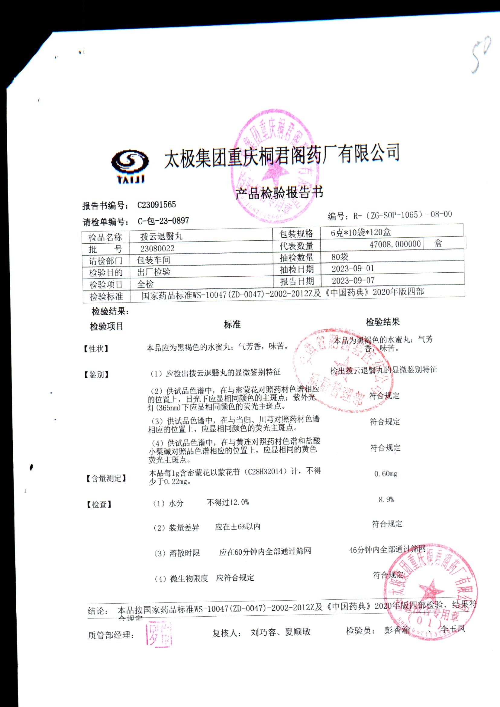 | 拨云退翳丸 | 6g*10袋(每10丸重1g) | 24030008/1 | 查看详情 |