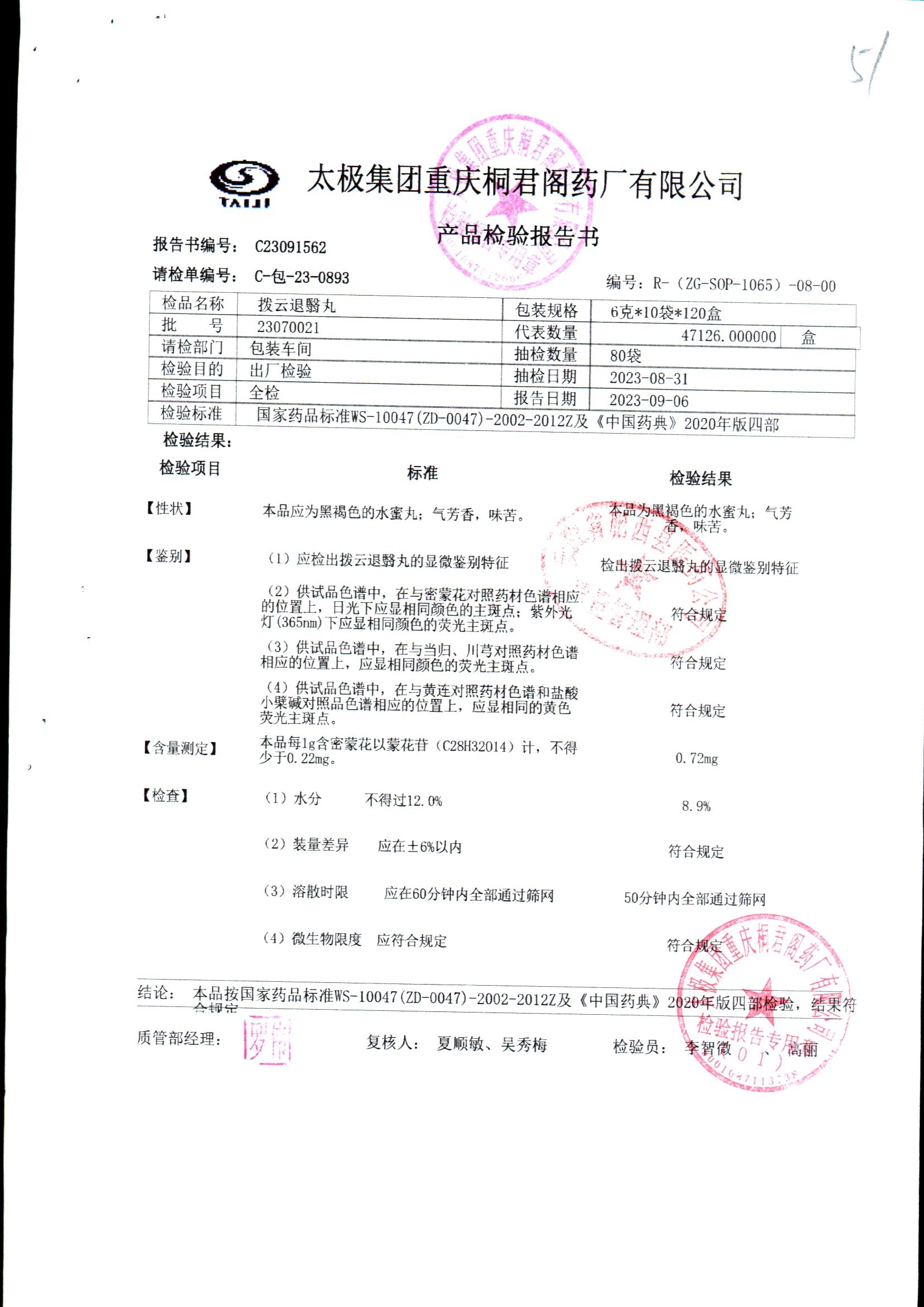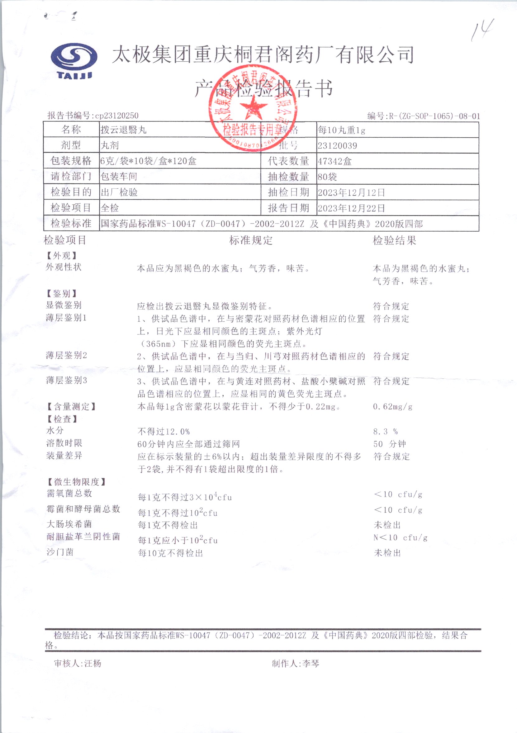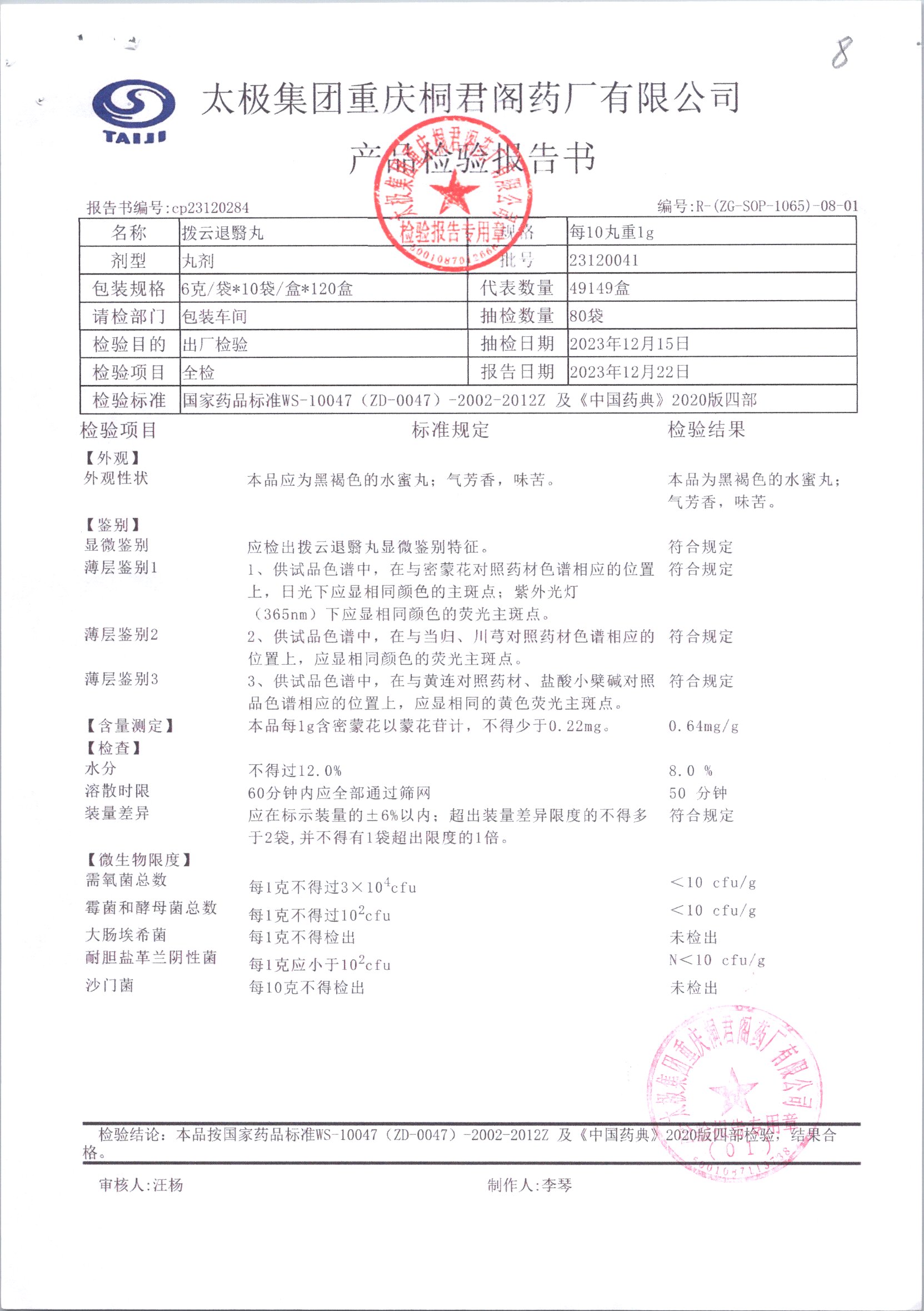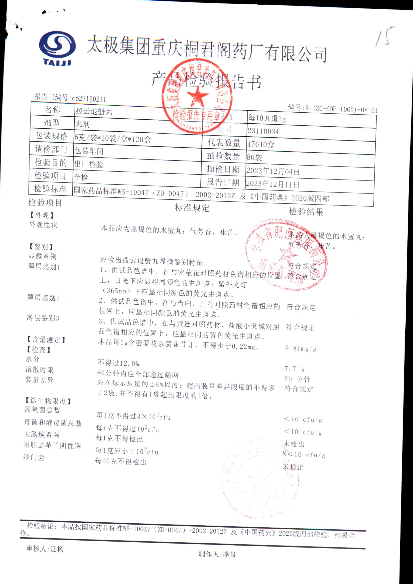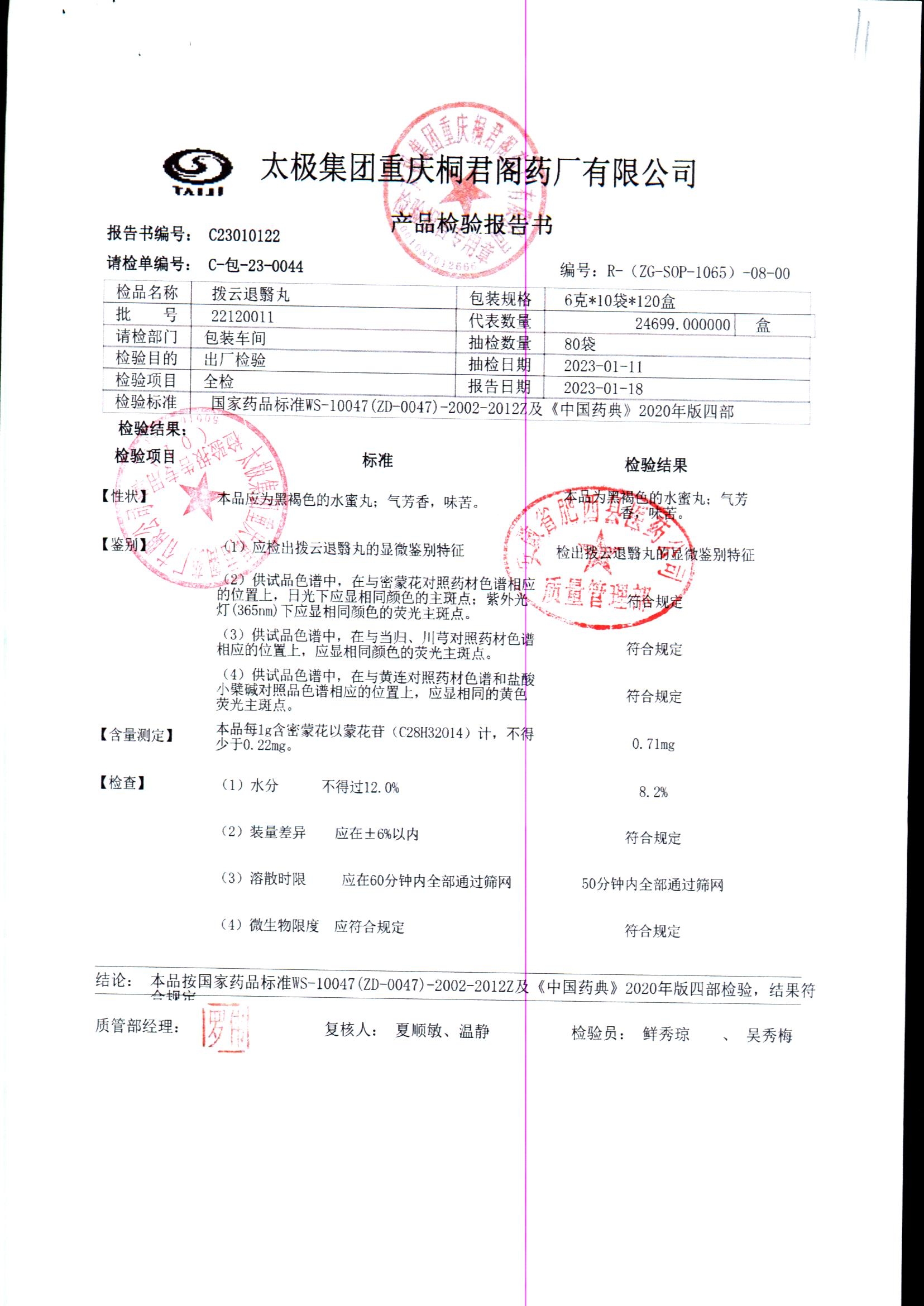 | 拨云退翳丸 | 6g*10袋(每10丸重1g) | 23120039 | 查看详情 |