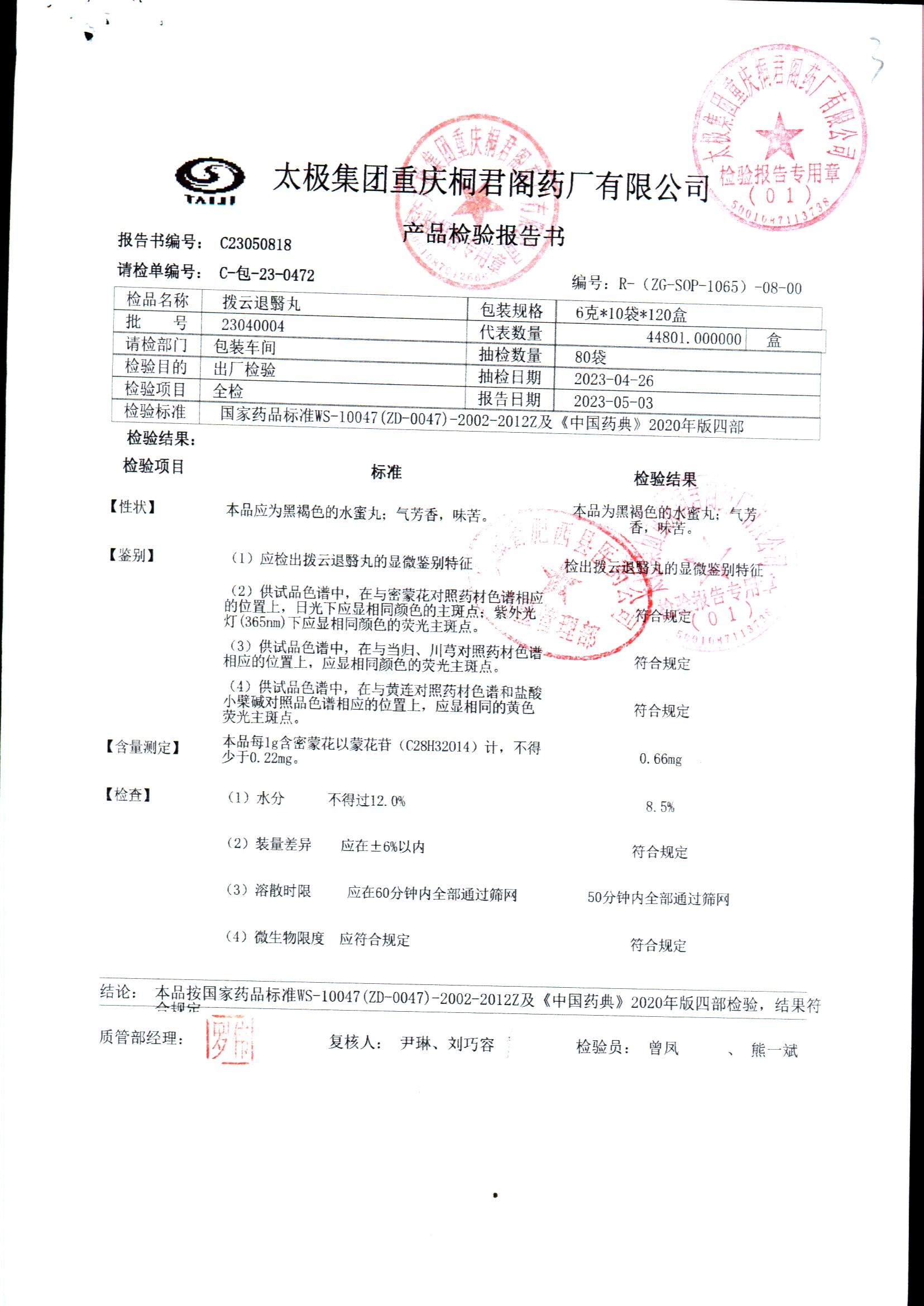 | 拨云退翳丸 | 6g*10袋(每10丸重1g) | 23040004 | 查看详情 |