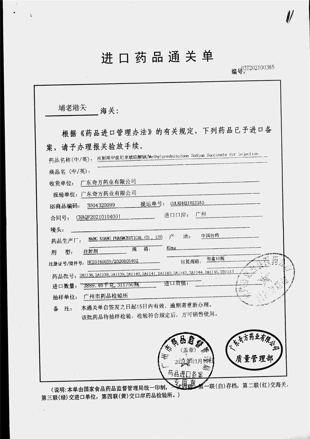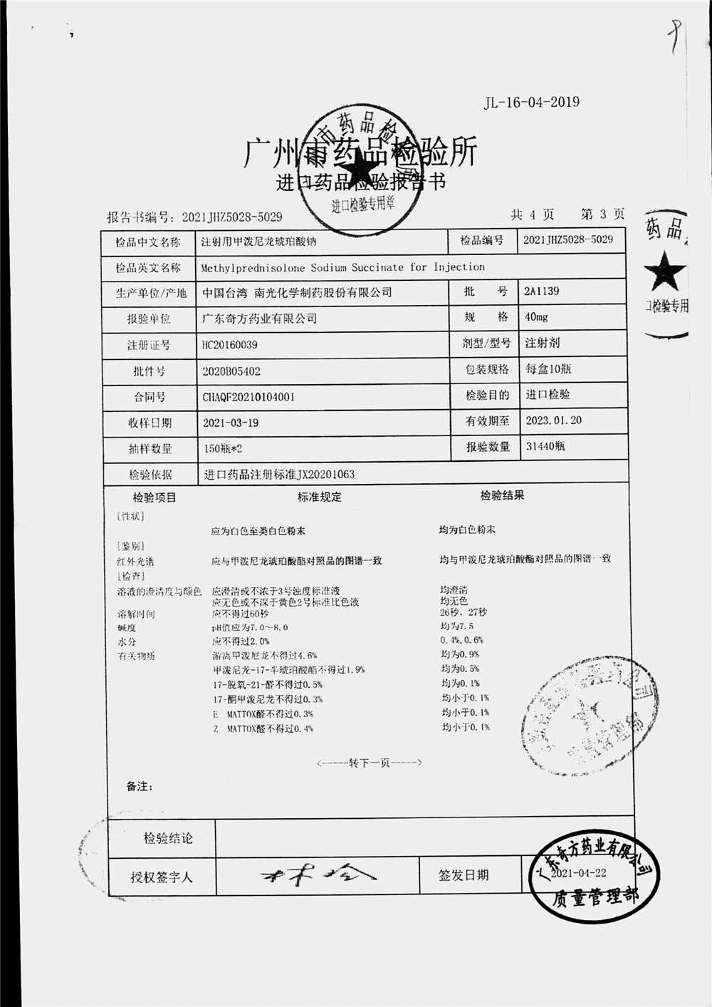 | 注射用甲泼尼龙琥珀酸钠 | 40mg(10瓶装) | 2A1139(3/5) | 查看详情 |