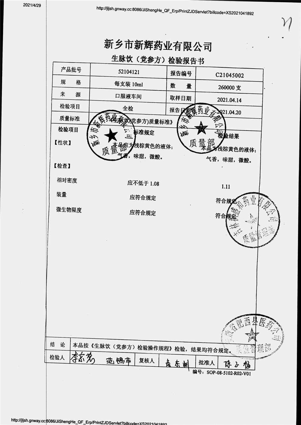 药检报告