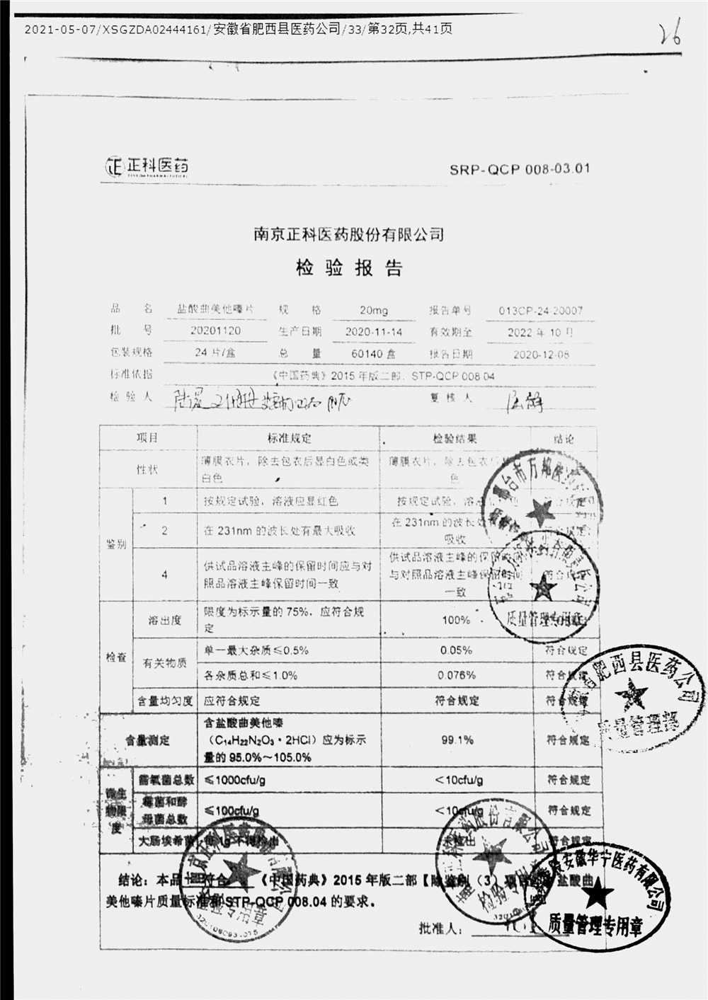 药检报告