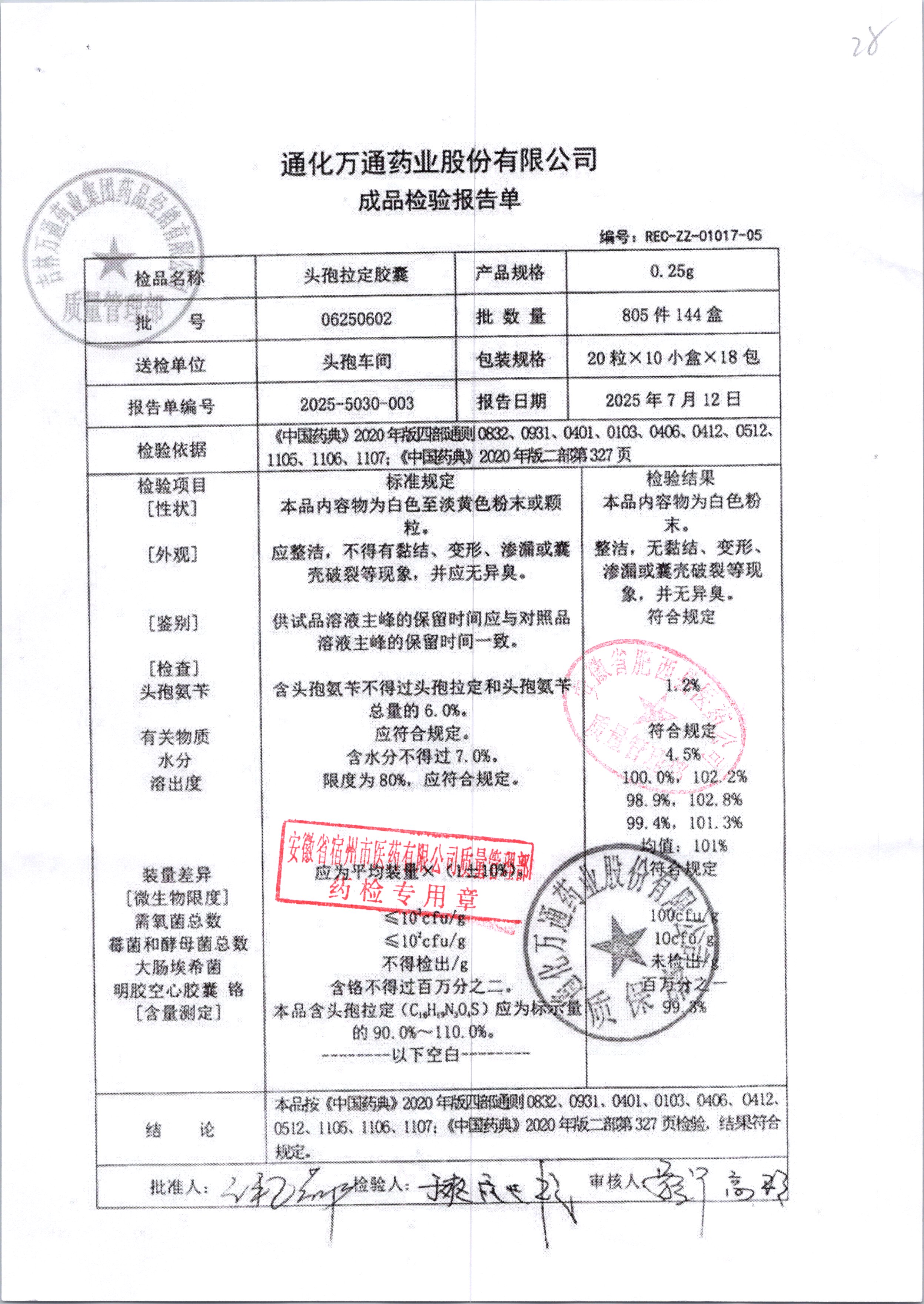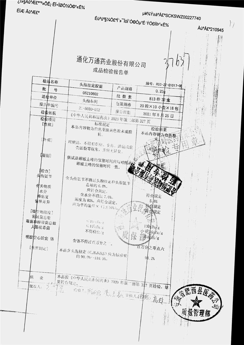 | 头孢拉定胶囊 | 0.25g*10粒*2板 | 06250602 | 查看详情 |