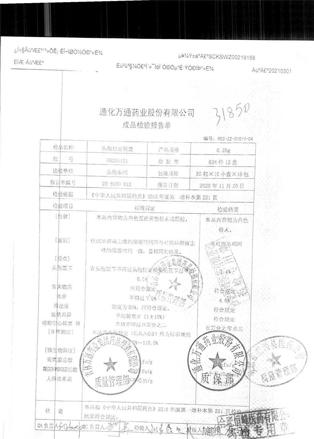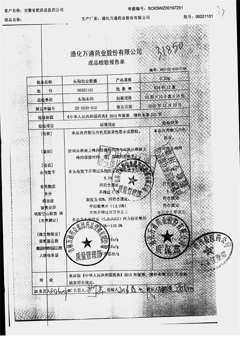 | 名称 | 规格 | 批号 | 药检报告 |
