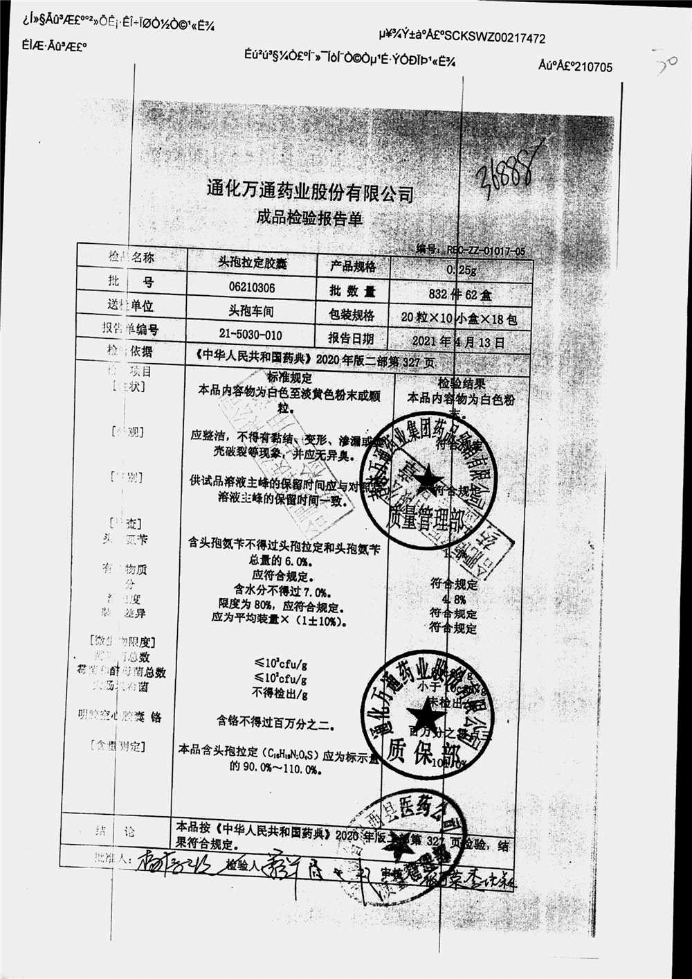 | 头孢拉定胶囊 | 0.25g*10粒*2板 | 06210602 | 查看详情 |