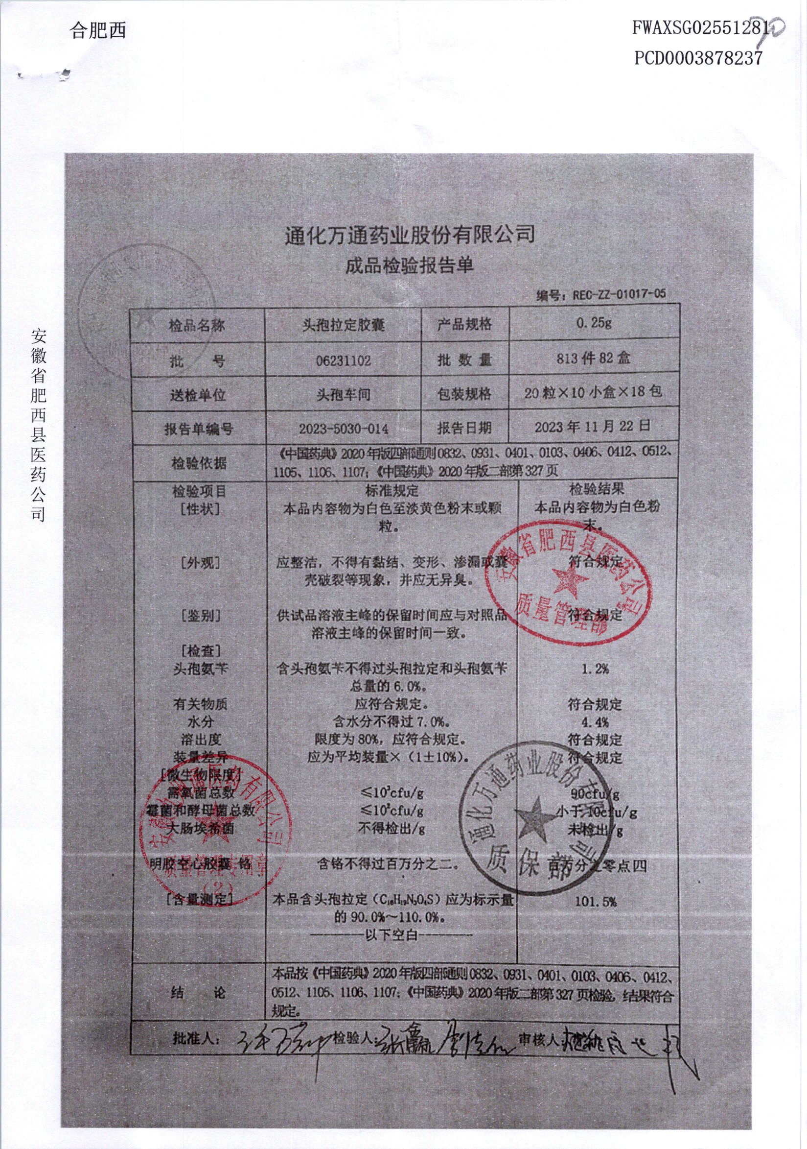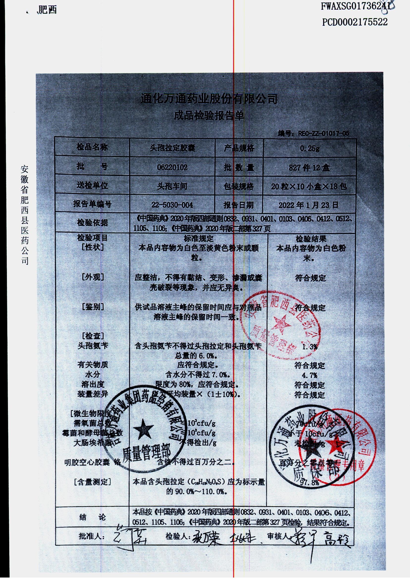 | 头孢拉定胶囊 | 0.25g*10粒*2板 | 06231102 | 查看详情 |