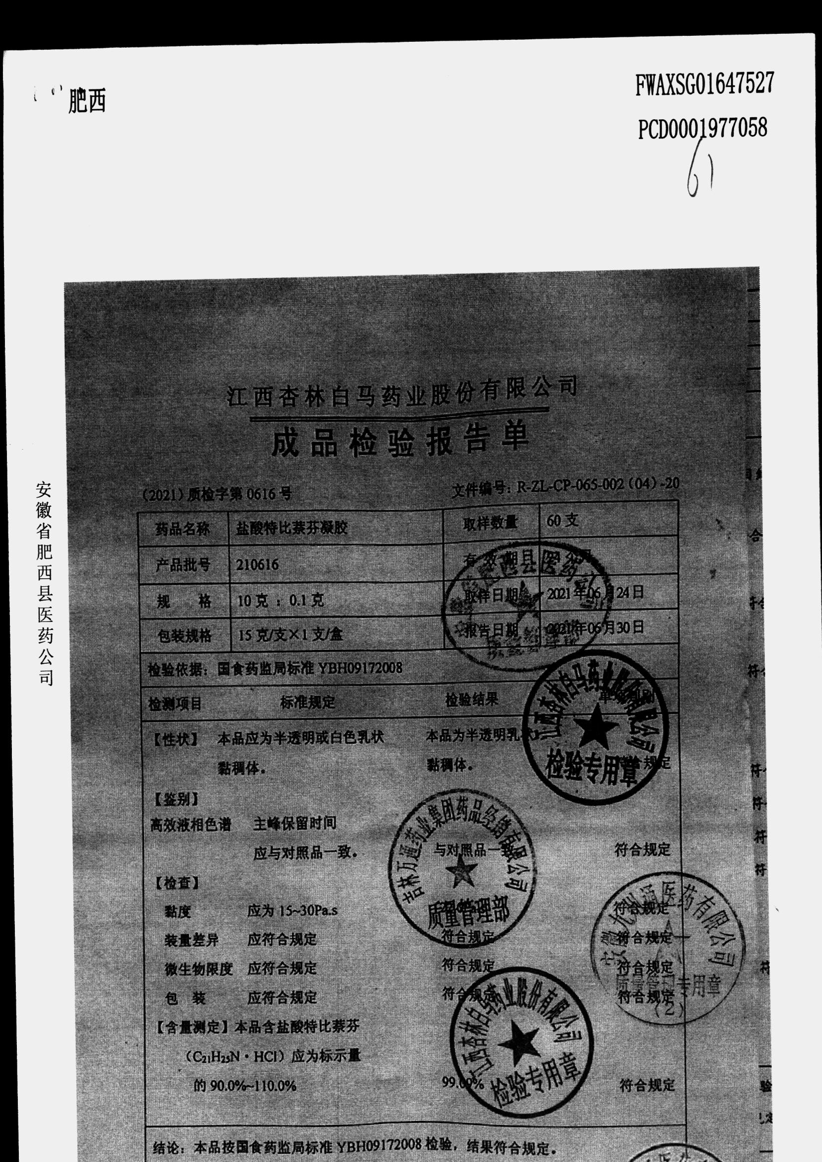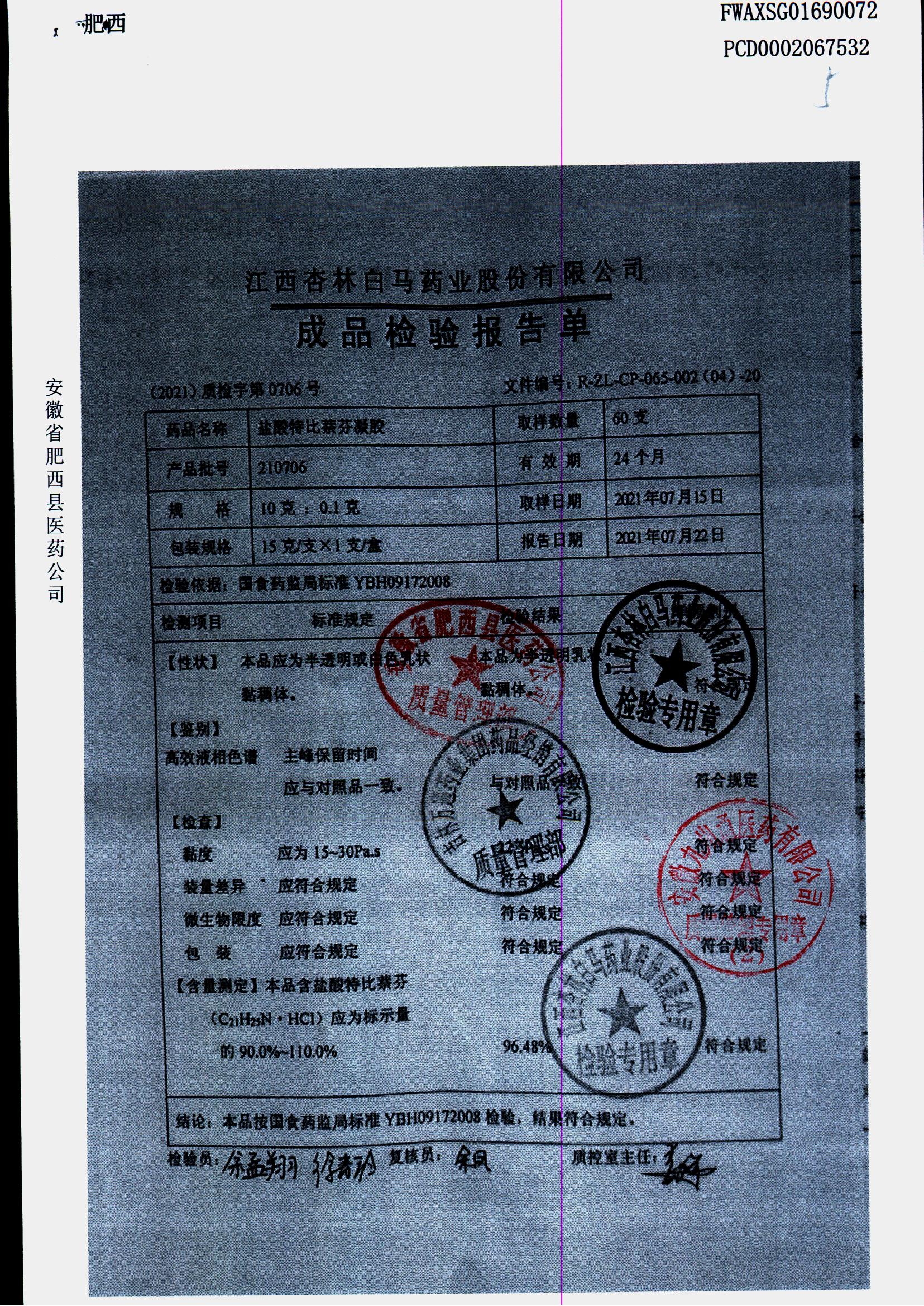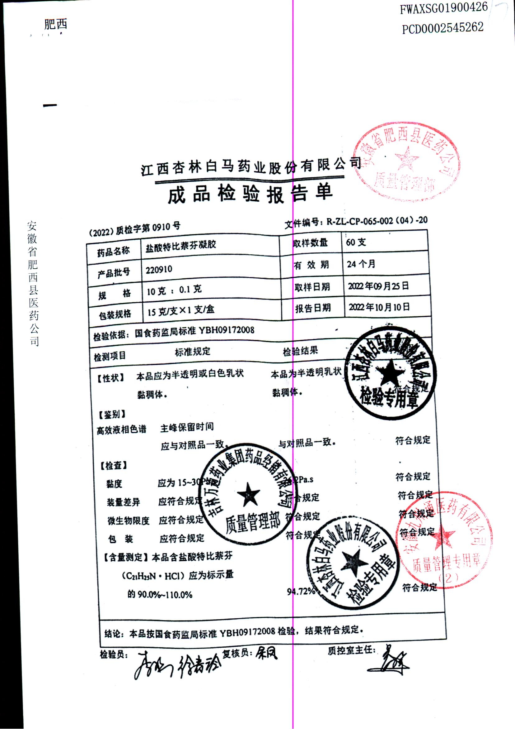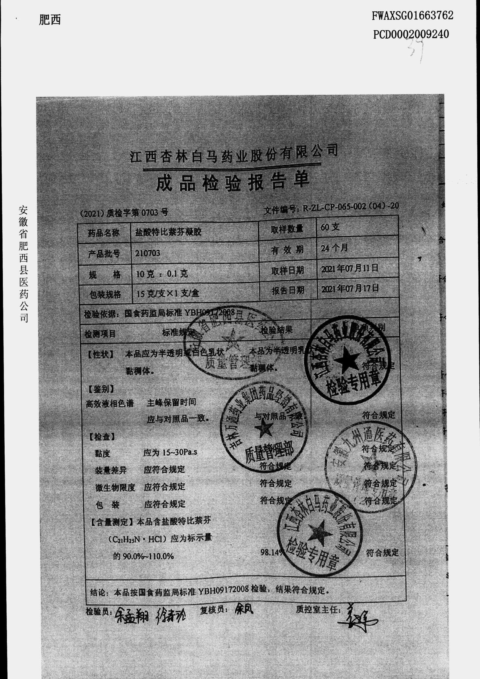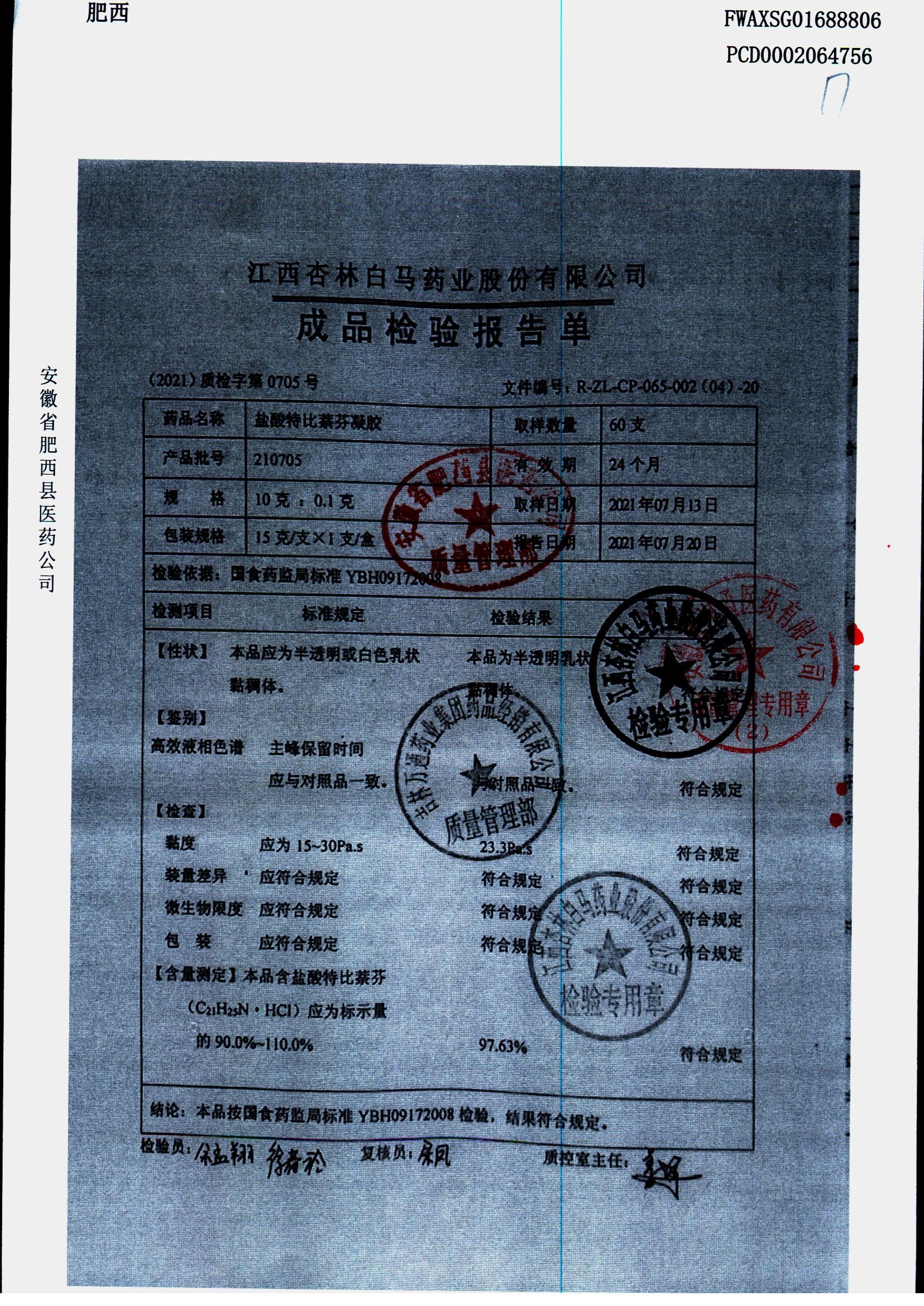 | 盐酸特比萘芬凝胶 | 15g( 10克:0.1克 ) | 210617 | 查看详情 |