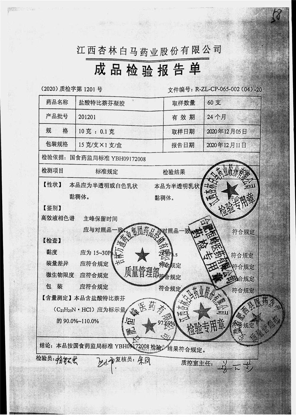 | 盐酸特比萘芬凝胶 | 15g( 10克:0.1克 ) | 201201 | 查看详情 |